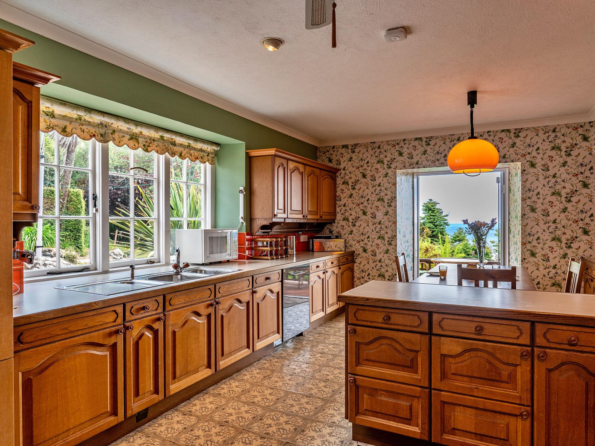 "Tregatreath", 6-Zimmer-Haus 280 m2. Objekt geeignet für 13 Erwachsene. Wohnzimmer mit offenem Kamin. 1 Zimmer mit 2 Betten und 1 franz. Bett. 1 Zimmer mit 1 Bett und 1 franz. Bett. 1 Zimmer mit 1 franz. Bett. 1 Zimmer mit 1 franz. Bett. 1 Zimmer mit 1 franz. Bett. Küche (Backofen, Geschirrspüler, Toaster, Wasserkocher, Mikrowelle, Tiefkühler). Dusche/WC, 2 sep. WC's. Terrasse. Gartengrill. Zur Verfügung: Waschmaschine, Bügeleisen. Internet (WLAN, gratis). Parkplatz (5 Autos). Bitte beachten: Nichtraucher-Unterkunft. Rauchmelder.