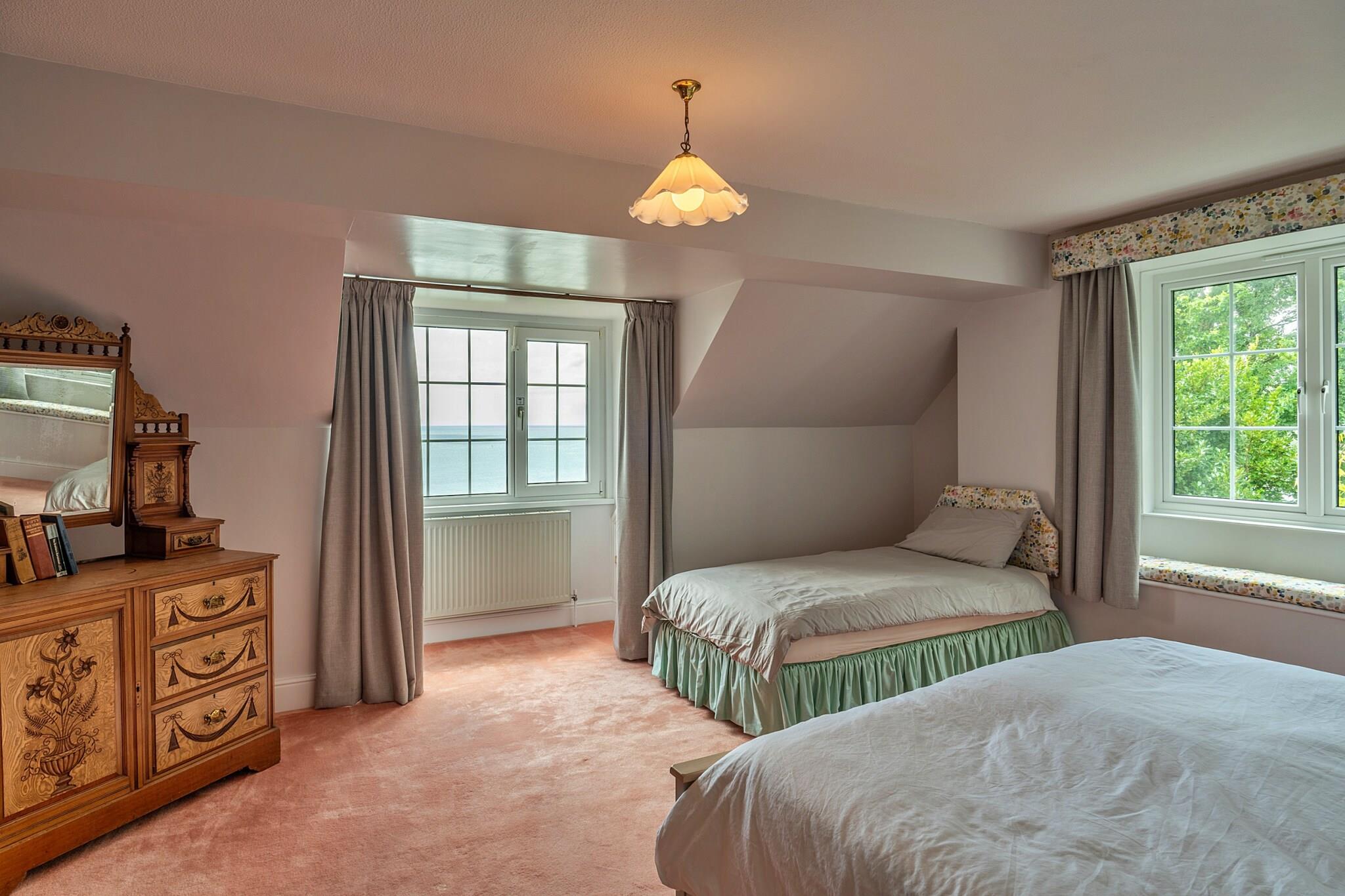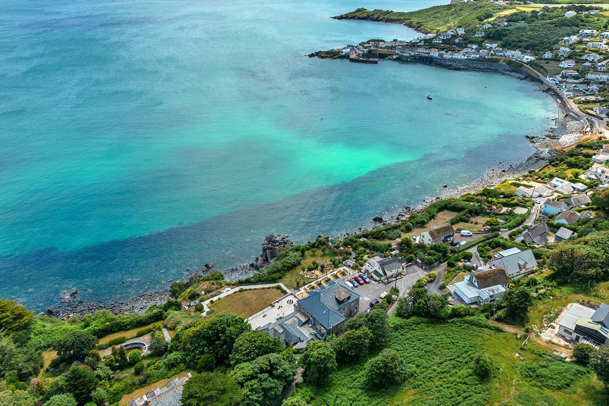 Willkommen in einem außergewöhnlichen Küstenparadies, einem idyllischen Rückzugsort, der die Schönheit des Meeres und der Natur vereint. Eingebettet in eine malerische Umgebung bietet dieses geräumige Haus einen atemberaubenden Panoramablick auf das Meer und einen bezaubernden Zufluchtsort für große Gruppen oder Familien, die Ruhe am Ufer suchen. Mit fünf großzügigen Schlafzimmern und über 1,5 Hektar halbwildem Klippengarten zum Erkunden ist dieses Anwesen ein Juwel, das darauf wartet, unvergessliche Erinnerungen zu schaffen. Die Raumaufteilung bietet Platz für bis zu 13 Gäste und ist sorgfältig auf Komfort und Bequemlichkeit ausgelegt. Drei der Schlafzimmer verfügen über luxuriöse Super-Kingsize-Betten, zwei davon auch mit zusätzlichen Einzelbetten. Darüber hinaus bieten zwei charmante Schlafzimmer Kingsize-Betten, sodass jeder einen erholsamen Rückzugsort hat. Mit zwei gut ausgestatteten Badezimmern – eines davon mit Badewanne und separater Dusche – sowie praktischen WC-Anlagen im Erdgeschoss und im ersten Stock verbindet dieses Haus mühelos Funktionalität mit Komfort. Treten Sie ein und finden Sie einen geräumigen Wohnbereich voller Wärme und Charakter vor, der sich perfekt für Familientreffen und gemütliche Abende mit einer sorgfältig ausgewählten Auswahl an Büchern und Spielen eignet. Die gut ausgestattete Küche bietet alles, was Sie zum Zubereiten köstlicher Mahlzeiten benötigen, sei es ein geschäftiges Familienfest oder ein ungezwungenes Mittagessen auf der weitläufigen Veranda mit Blick auf den atemberaubenden Meerblick. Nur eine kurze Strecke entfernt liegt das malerische Dorf Coverack, ein malerisches Fischerdorf, das den Charme Cornwalls perfekt einfängt. Genießen Sie den Sandstrand, erkunden Sie den schönen Hafen und schlendern Sie durch hübsche Geschäfte und Cafés. Für Abenteuerlustige bieten die nahe gelegenen Küstenwege belebende Spaziergänge sowie Möglichkeiten für Wassersportarten wie Windsurfen, Paddleboarding und Kajakfahren. Wenn Sie sich auf dieses Küstenabenteuer begeben, beachten Sie bitte einige wichtige Details: Der Außenpoolbereich wird nicht genutzt und im Garten gibt es einige steile Treppen und Wege, die für Personen mit eingeschränkter Mobilität eine Herausforderung darstellen können. Im Garten gibt es kleine Teiche, daher ist die Aufsicht von Kindern unerlässlich. Es stehen ausreichend Parkplätze für bis zu vier Autos zur Verfügung, sodass Ihre Gruppe problemlos zu erreichen ist. Dieses familienfreundliche Anwesen ist darauf ausgelegt, einen unvergesslichen Aufenthalt zu bieten. Bitte beachten Sie jedoch, dass es nicht für Studentengruppen, Junggesellenabschiede, Großveranstaltungen oder Partys geeignet ist. Genießen Sie die Schönheit und Ruhe dieses Küstenjuwels, wo wertvolle Erinnerungen darauf warten, gemacht zu werden.