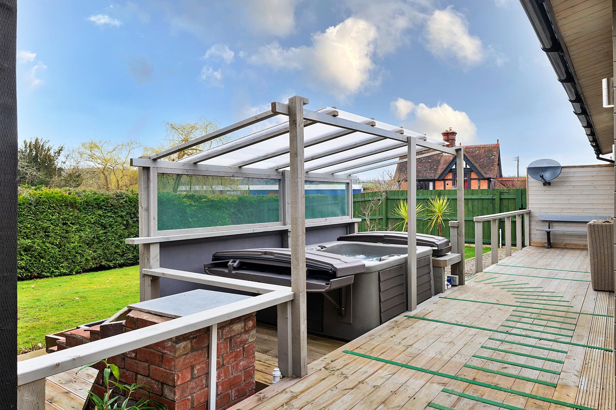 Willkommen in der Garden Lodge, Ihrem ultimativen Pärchenurlaub im Herzen von Shropshire! Diese charmante Lodge liegt auf dem ruhigen Grundstück des Hauses der Eigentümer und verbindet modernen Komfort mit einem Hauch rustikaler Wärme. Beim Betreten werden Sie von einem einladenden, offenen Küchen- und Wohnbereich begrüßt, der mit gemütlichen holzgetäfelten Wänden und einem großen Kamin geschmückt ist und sich perfekt für romantische Abende eignet. Die voll ausgestattete Küche sorgt dafür, dass Sie köstliche Mahlzeiten zubereiten und gleichzeitig eine schöne gemeinsame Zeit genießen können. Ein praktischer Hauswirtschaftsraum trägt zur Zweckmäßigkeit der Lodge bei. Treten Sie hinaus auf die großzügige Holzterrasse, wo Ihr privater Whirlpool umgeben von üppigem Grün auf Sie wartet. Stellen Sie sich vor, Sie tauchen unter den Sternen ein und das beruhigende Geräusch eines nahegelegenen Wasserfalls unterstreicht die ruhige Atmosphäre. Die Terrasse ist auch ein idealer Ort für Mahlzeiten im Freien, egal ob Sie auf dem Grill grillen oder Ihren Morgenkaffee genießen, während die Sonne aufgeht. Jedes Detail der Garden Lodge wurde sorgfältig gestaltet, um Ihr Erlebnis zu verbessern und es zu einem Zufluchtsort für Entspannung und Romantik zu machen. Diese Lodge liegt nur 1,4 Meilen von Craven Arms und 7 Meilen von Church Stretton entfernt und eignet sich perfekt für die Erkundung der atemberaubenden Landschaft von Shropshire. Entdecken Sie malerische Geschäfte, charmante Cafés und historische Sehenswürdigkeiten wie Stokesay Castle und das Shropshire Hills Discovery Centre. Mit privaten Parkplätzen abseits der Straße und einem EV-Ladegerät für Elektrofahrzeuge ist die Garden Lodge bereit, Ihr schicker Rückzugsort zu sein, an dem Sie neue Kontakte knüpfen, neue Kraft tanken und gemeinsam bleibende Erinnerungen schaffen können.