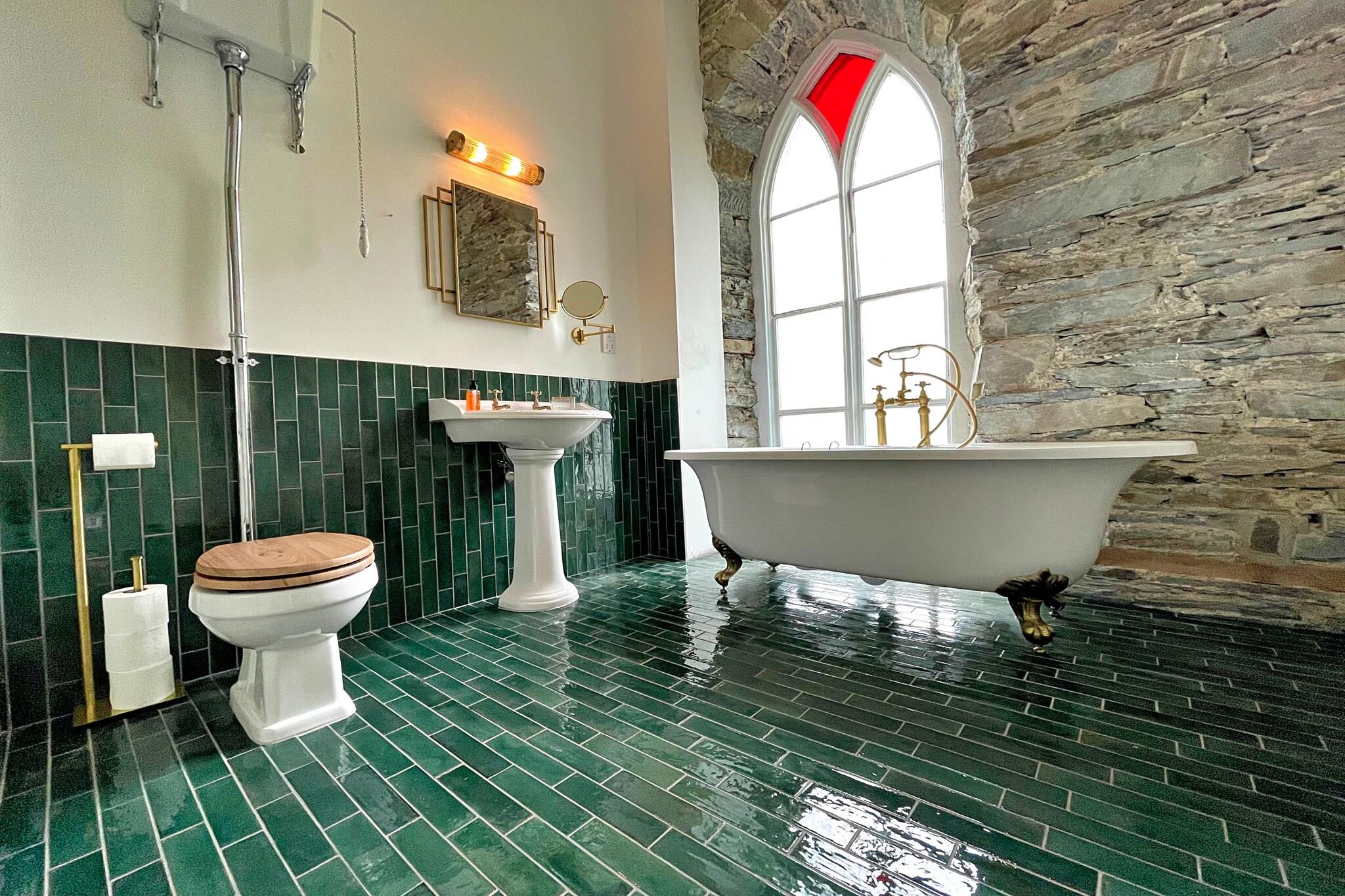 Dieses einzigartige Ferienhaus ist eine umgebaute Kapelle mit fünf Schlafzimmern, die bequem Platz für bis zu 12 Gäste bietet und somit eine ideale Wahl für große Familientreffen oder Gruppenaufenthalte ist. Mit vier Doppelzimmern und einem Schlafraum im Erdgeschoss für vier Personen bietet es sowohl Charme als auch Geräumigkeit. Entspannen Sie im Whirlpool im Freien, genießen Sie Spiele wie Tischfußball und Billard im speziellen Spielzimmer oder machen Sie es sich am Holzofen im weitläufigen Wohnbereich gemütlich. Haustiere sind willkommen und ein Kinderbett, ein Hochstuhl und ein Ladegerät für Elektrofahrzeuge sind ebenfalls vorhanden. Darüber hinaus genießen Sie kostenfreien Zugang zu allen Annehmlichkeiten, einschließlich WLAN und Parkplätzen. Das Haus liegt im malerischen Dorf Dinas Mawddwy an der Südspitze des Snowdonia-Nationalparks und ist von reicher Naturschönheit und faszinierender Geschichte umgeben. Nur eine kurze Autofahrt von Cader Idris und der Stadt Dolgellau entfernt haben Besucher einfachen Zugang zu Wanderwegen, lokalen Märkten und historischen Sehenswürdigkeiten. Die Dorfkneipe ist nur eine Minute zu Fuß entfernt und bietet frisch zubereitete Gerichte aus der Region, sodass das Essen im Freien bequem und angenehm ist. Im Inneren hat das Anwesen viel von seinem ursprünglichen Charme bewahrt, mit hohen Spitzbogenfenstern und freiliegendem Mauerwerk, ergänzt durch moderne Modernisierungen. Die voll ausgestattete Küche verfügt über einen Kühlschrank, einen Backofen, eine Mikrowelle, einen Geschirrspüler, eine Kaffeemaschine und Utensilien und eignet sich perfekt für die Selbstversorgung. Das große Badezimmer im Erdgeschoss verfügt über eine ebenerdige Dusche und eine freistehende freistehende Badewanne. Bettwäsche, Handtücher, Endreinigung und die Nutzung des Whirlpools sind im Preis inbegriffen und sorgen für einen komfortablen und unvergesslichen Aufenthalt.
