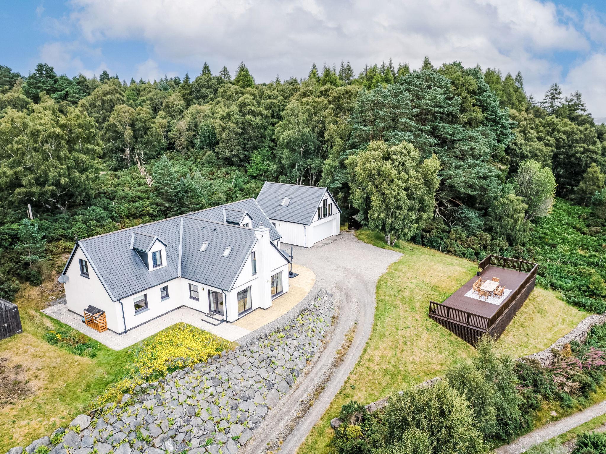 Schöne, freistehende, luxuriöse Villa "Drover's Lodge", auf 2 Stockwerken, umgeben von Bäumen und Wiesen. Am Ortsrand, 3.5 km vom Zentrum von Drumnadrochit, alleinstehende, ruhige, erhöhte Lage auf einem Hügel, 3.5 km vom See. Zur Alleinbenutzung: grosser Garten (nicht eingezäunt) Rasen. Sitzplatz, Terrasse, Gartenmöbel. Einkaufsservice vor Anreise möglich. 250 m lange schmale Zufahrt. Im Winter 4x4 empfohlen. Parkplatz beim Haus. Einkaufsgeschäft 4 km, Lebensmittelgeschäft 4 km, Supermarkt 25 km, Einkaufszentrum 25 km, Restaurant 3 km, Bar 3 km, Bäckerei 1 km, Café 4 km, Bushaltestelle "Loch Ness Inn" 3 km. Golfplatz (18 Loch) 20 km. Nahe gelegene Sehenswürdigkeiten: Urquhart Castle 5 km, Loch Ness 3 km, Loch Ness Exhibition Centre 4 km, Fort Augustus 30 km, Jacobite Boat Trips 4 km. Wandergebiete: Great Glen Way 100 m. Bitte beachten: Fahrzeug empfohlen.