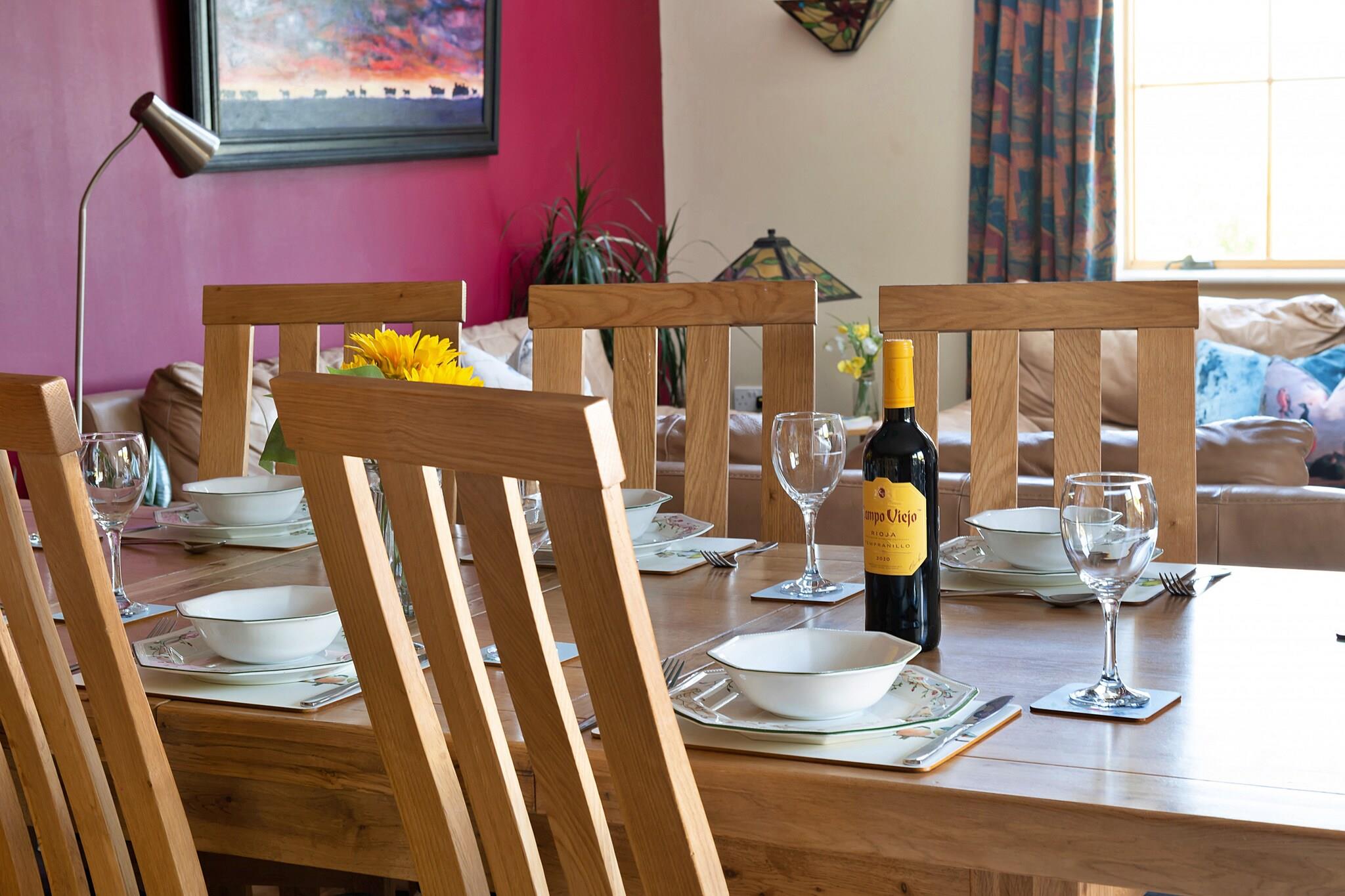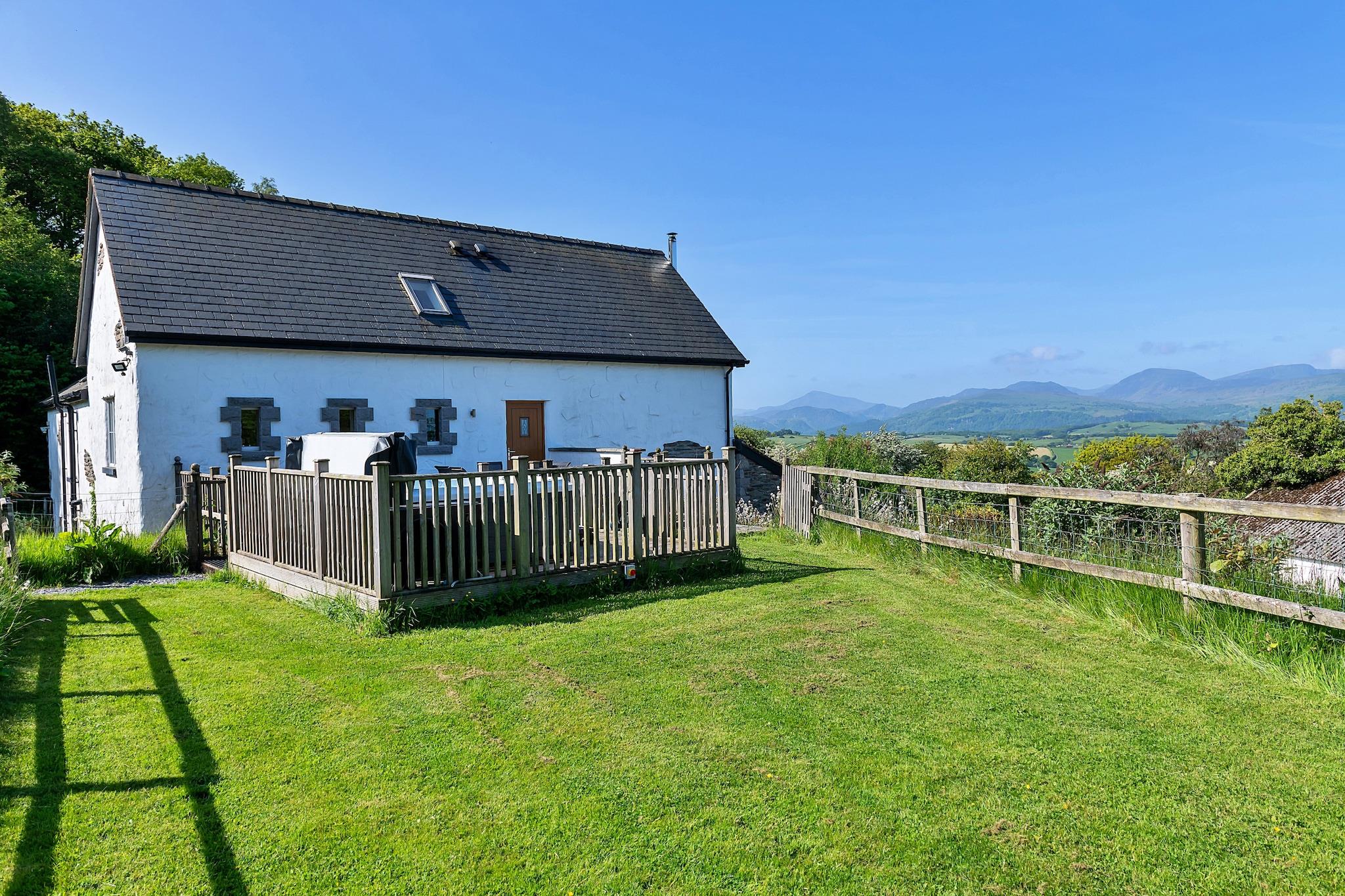 Entdecken Sie eine friedliche Oase im Herzen des atemberaubenden Conwy Valley, wo ein wahrhaft unvergesslicher Kurzurlaub auf Ihre große Gruppe wartet. Der geräumige Rückzugsort ist auf Entspannung und Verbindung ausgelegt und verfügt über einen luxuriösen Whirlpool, der Sie nach einem Tag voller Abenteuer in der atemberaubenden Landschaft Nordwales und im berühmten Snowdonia-Nationalpark zum Entspannen einlädt. Stellen Sie sich vor, Sie tauchen in die Wärme des sprudelnden Wassers ein, blicken dabei auf die spektakuläre Südwestaussicht auf die Carneddau-Berge und tauchen ein in die ruhige Schönheit, die Sie umgibt. Hoch über dem Dorf Eglwysbach gelegen, lädt dieses charmante Ferienhaus dazu ein, die nahegelegenen Wanderwege zu erkunden oder Ihre Fahrräder mitzunehmen, um die Wunder des Nationalparks zu entdecken. Die wunderschön umgebaute Scheune öffnet sich zu einem stilvollen Wohn-, Küchen- und Essbereich, der ein einladendes Ambiente ausstrahlt, das durch Fußbodenheizung und Designer-Oberflächen noch verstärkt wird. Ausgestattet mit eleganten Kronleuchtern und Originalkunstwerken eines lokalen Künstlers strahlt der Raum zeitgenössischen Luxus aus und bietet die perfekte Kulisse für gemütliche Zusammenkünfte. Machen Sie es sich auf den bequemen Sofas am Kamin gemütlich, wo Lachen und wertvolle Momente mit Familie und Freunden zum Leben erwachen, während die Sonne über der atemberaubenden Landschaft untergeht. Der Rückzugsort bietet Platz für bis zu acht Gäste in drei sorgfältig gestalteten Schlafzimmern und sorgt für Komfort für alle. Mit einem Zweibettzimmer mit eigenem Bad im Erdgeschoss und der Wahl zwischen einem Doppel- oder einem geräumigen Super-Kingsize-Schlafzimmer mit eigenem Bad im ersten Stock findet jeder seinen perfekten Zufluchtsort. Ein großzügiges Familienbadezimmer mit freistehender Badewanne verleiht Ihrem Aufenthalt das gewisse Etwas. Wenn Sie mit den sanften Geräuschen der Natur aufwachen und Ihren Morgenkaffee auf dem privaten Balkon genießen, genießen Sie die Schönheit der sanften Hügel und den faszinierenden Flug der Drachen zu einem unvergesslichen Erlebnis. Mit umweltfreundlichen Einrichtungen im gesamten Gebäude, darunter Sonnenkollektoren und Natursteinböden, die durch eine Fußbodenheizung erwärmt werden, bietet dieser Rückzugsort eine harmonische Mischung aus Luxus und Nachhaltigkeit, perfekt für Kurzurlaube mit großen Gruppen.