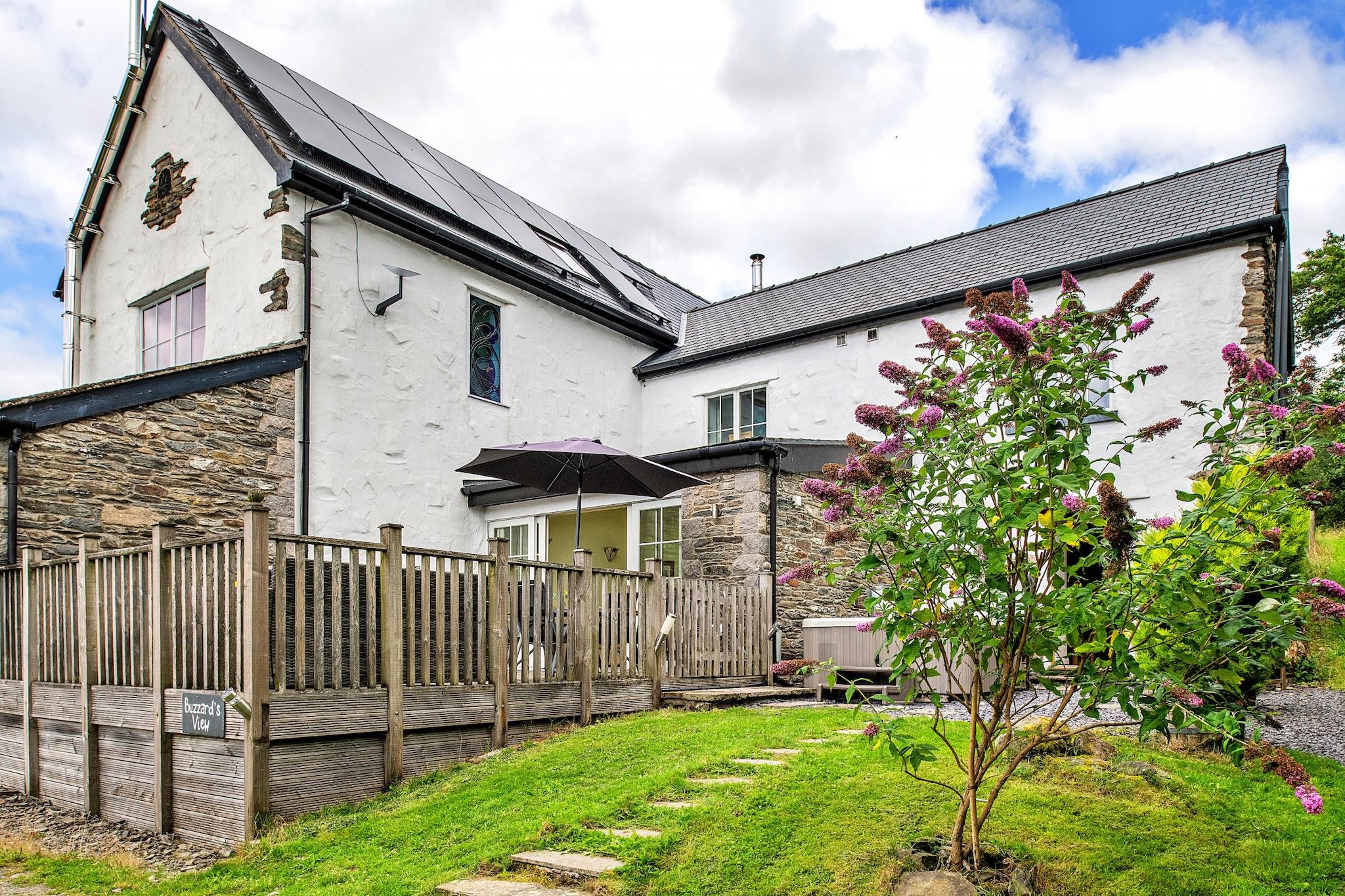 Erleben Sie einen ruhigen Zufluchtsort im Herzen des atemberaubenden Conwy Valley, wo Ruhe und atemberaubende Ausblicke aufeinander treffen und den ultimativen Kurzurlaub schaffen. Dieses charmante Ferienhaus liegt hoch über dem Dorf Eglwysbach und bietet eine einzigartige Gelegenheit, in die natürliche Schönheit Nordwales und den majestätischen Snowdonia-Nationalpark einzutauchen. Mit fantastischen Ausblicken um Sie herum fühlt sich jeder hier verbrachte Moment wie ein Rückzug in ein friedliches Paradies an. Nachdem Sie einen Tag voller Erkundungen der nahegelegenen Wanderwege oder einer Radtour durch malerische Landschaften verbracht haben, entspannen Sie sich im luxuriösen Whirlpool, der perfekt positioniert ist und spektakuläre Ausblicke auf das nach Südwesten ausgerichtete Tal und die majestätischen Bergketten Carneddau und Snowdonia bietet. Das wohltuende Wasser des Whirlpools lädt zum Entspannen unter den Sternen oder zum Sonnenbaden im Schein eines Sonnenuntergangs ein und schafft so eine unvergleichliche Atmosphäre für Momente der Entspannung und der Verbundenheit mit der Natur. Im Inneren vereint diese wunderschön umgebaute Scheune modernen Komfort mit charmanten Charakterelementen, von hochwertigen Eichentüren bis hin zu maßgeschneiderten Tiffany-Leuchten und Natursteinböden, die durch Fußbodenheizung erwärmt werden. Genießen Sie ein gemütliches Frühstück in der stilvollen Küche, üppige Bäder in den eleganten Marmorbädern und gemütliche Abende in der einladenden Lounge, während Sie von den sanften Geräuschen der Natur umhüllt werden. Mit zwei sorgfältig gestalteten Schlafzimmern und umweltfreundlichen Einrichtungen sorgt dieser Rückzugsort dafür, dass jeder Aspekt Ihres Aufenthalts so angenehm und erholsamer ist wie die atemberaubende Landschaft, die Sie umgibt.