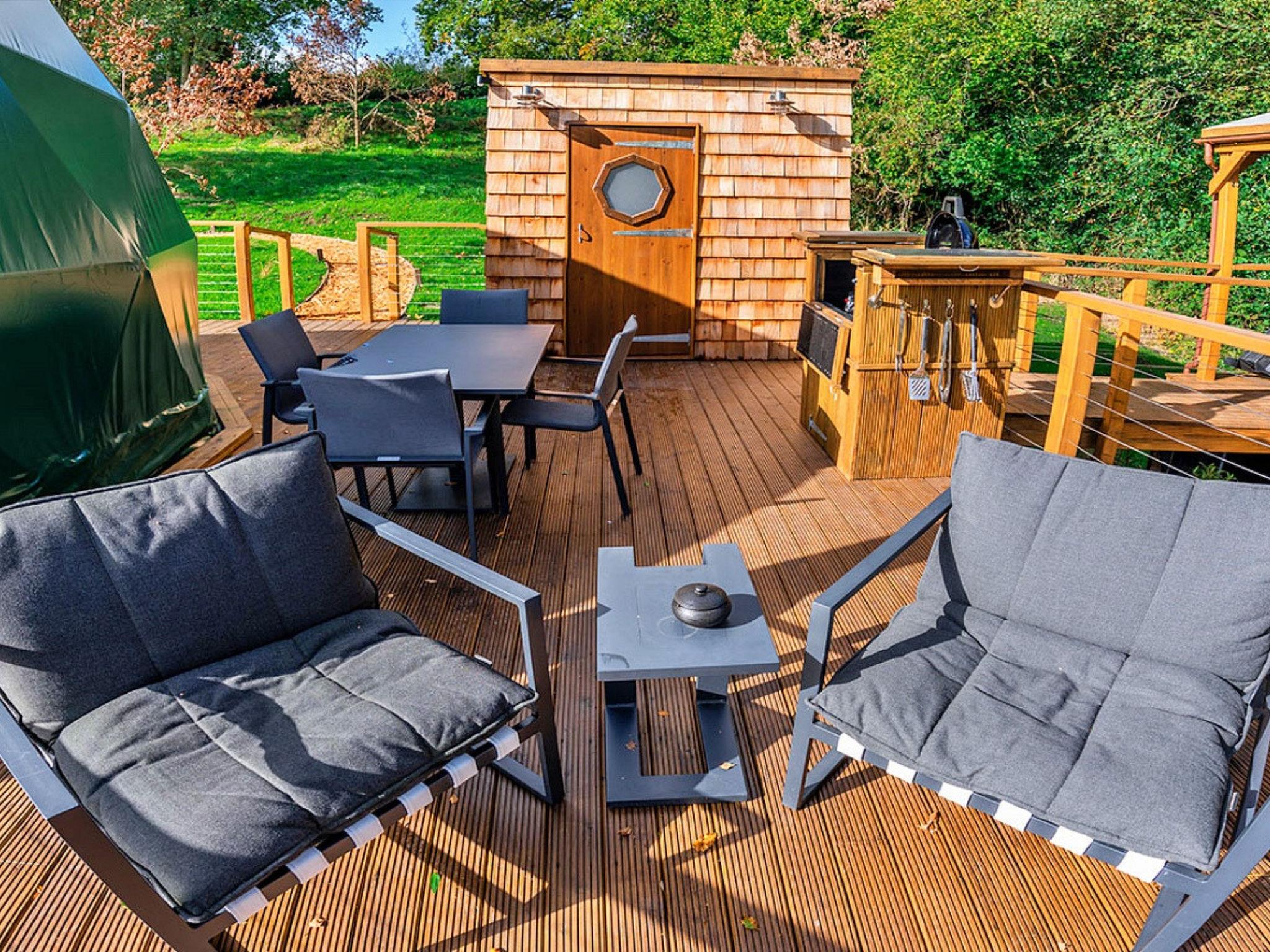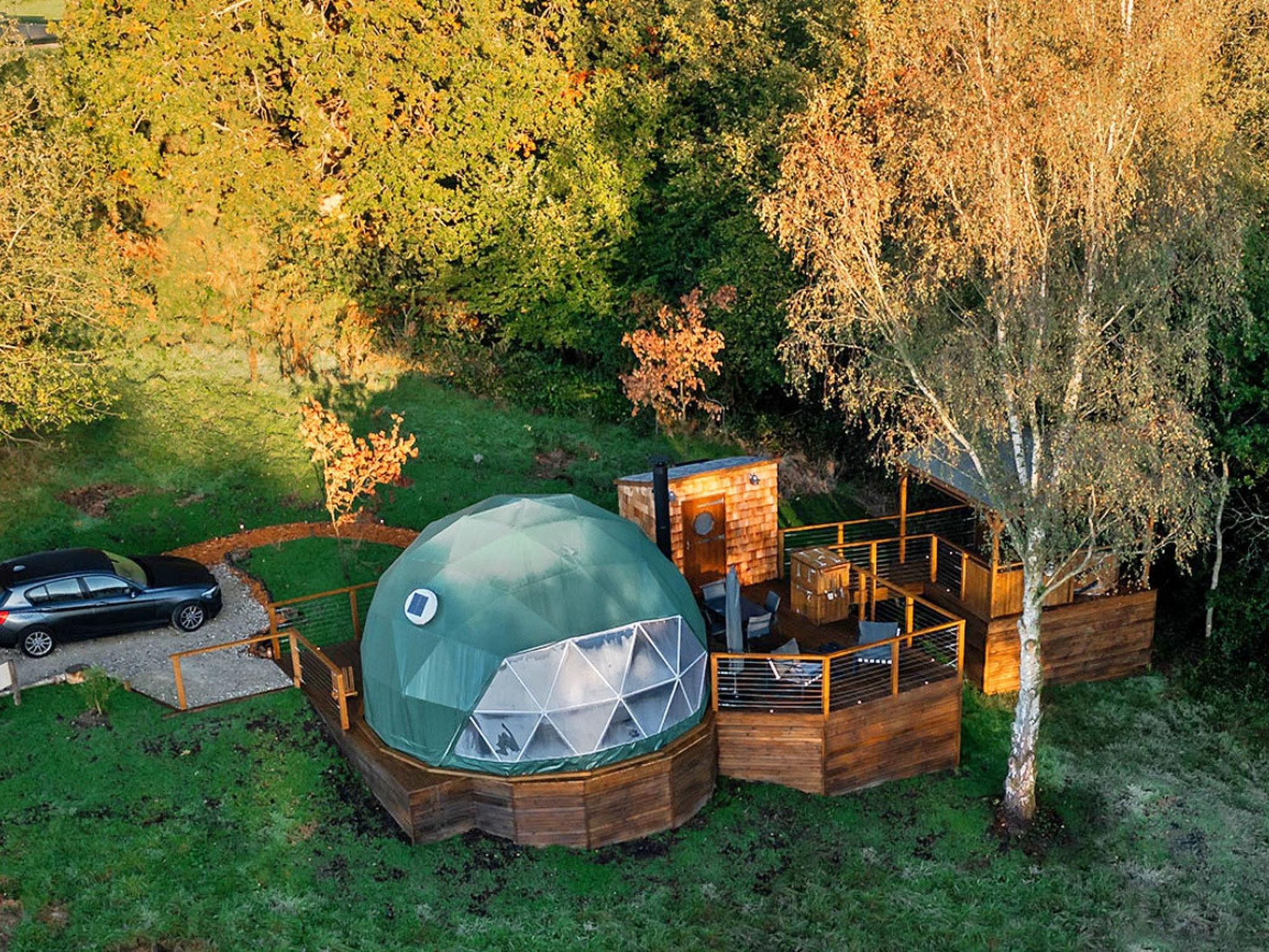 "Wakehurst Luxury Dome", 2-Zimmer-Chalet 30 m2. Objekt geeignet für 4 Erwachsene. Wohnzimmer mit offenem Kamin. 1 Zimmer mit 2 franz. Betten. Küche (Toaster, Wasserkocher, Mikrowelle, elektrische Kaffeemaschine). Dusche/WC. Terrasse. Gartengrill. Zur Verfügung: Bügeleisen. Internet (WLAN, gratis). Parkplatz (2 Autos). Bitte beachten: Nichtraucher-Unterkunft. Rauchmelder.