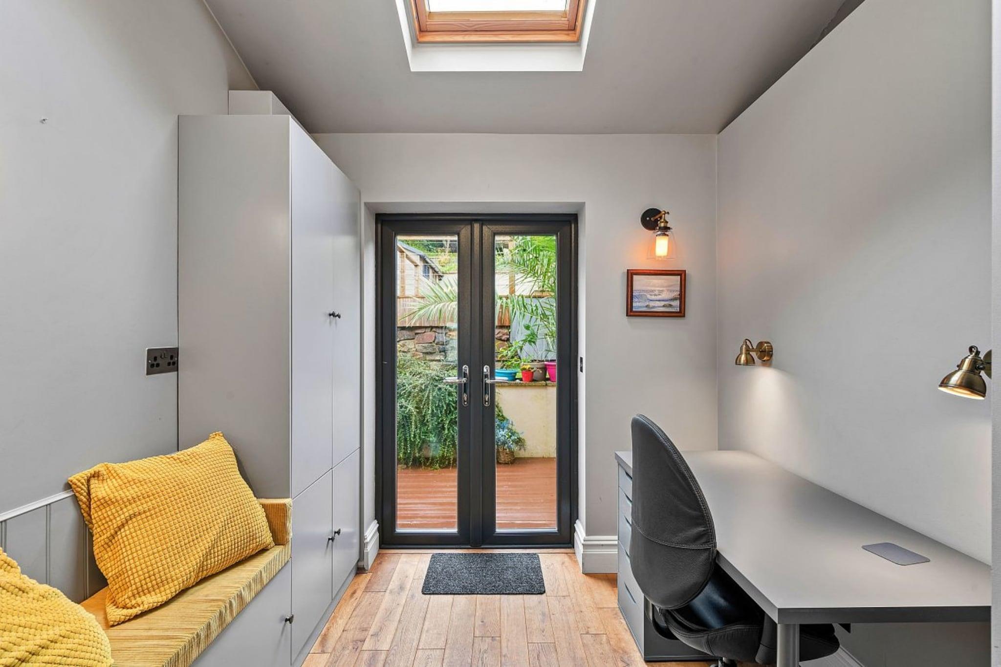 Dieses geräumige und einladende Ferienhaus bietet Platz für bis zu acht Gäste, darunter sechs Erwachsene und zwei Kinder. Es verfügt über vier komfortable Schlafzimmer, darunter zwei Kingsize-Betten, ein Doppelbett und ein Etagenbett für die Kinder. Das Ferienhaus ist haustierfreundlich und erlaubt gegen eine zusätzliche Gebühr die Mitnahme von Haustieren, sodass Ihre pelzigen Begleiter Sie in Ihrem Urlaub begleiten können. Der offene Wohnbereich verfügt über ein gemütliches Sofa und einen Smart-TV, ideal zum Entspannen nach einem erlebnisreichen Tag. Der Essbereich bietet ausreichend Platz für Familienessen und WLAN ist im gesamten Gebäude verfügbar. Für Ihren Komfort stehen private Parkplätze zur Verfügung. Dieses Cottage liegt nur einen kurzen Spaziergang vom Stadtzentrum entfernt und bietet einfachen Zugang zu einer Vielzahl lokaler Sehenswürdigkeiten, darunter charmante Cafés, Kunstgalerien und Boutiquen. Das nahe gelegene Hafengebiet eignet sich perfekt für einen gemütlichen Spaziergang und in den örtlichen Fish-and-Chip-Läden können Sie sich mit frischen Meeresfrüchten verwöhnen lassen. Für diejenigen, die Outdoor-Aktivitäten genießen, liegt der Tarka Trail in der Nähe und bietet malerische Radwege. Darüber hinaus sind die malerischen Strände und der Exmoor-Nationalpark, der für seine atemberaubenden Wanderwege bekannt ist, leicht zu erreichen, was diesen Ort ideal für Entspannung und Abenteuer macht. Das Ferienhaus ist mit modernen Annehmlichkeiten ausgestattet, um einen komfortablen Aufenthalt zu gewährleisten. Die voll ausgestattete Küche verfügt über einen Elektroherd, einen Herd, eine Mikrowelle, einen Kühlschrank, einen Gefrierschrank und einen Geschirrspüler, sodass Sie problemlos Mahlzeiten zubereiten können. Für zusätzlichen Komfort gibt es einen Hauswirtschaftsraum mit Waschmaschine und Wäschetrockner. Das Badezimmer verfügt über eine Dusche über der Badewanne und bietet so Flexibilität für alle Gäste. Ein Babybett ist auf Anfrage erhältlich, sodass Familien mit kleinen Kindern während ihres Aufenthalts gut versorgt sind.