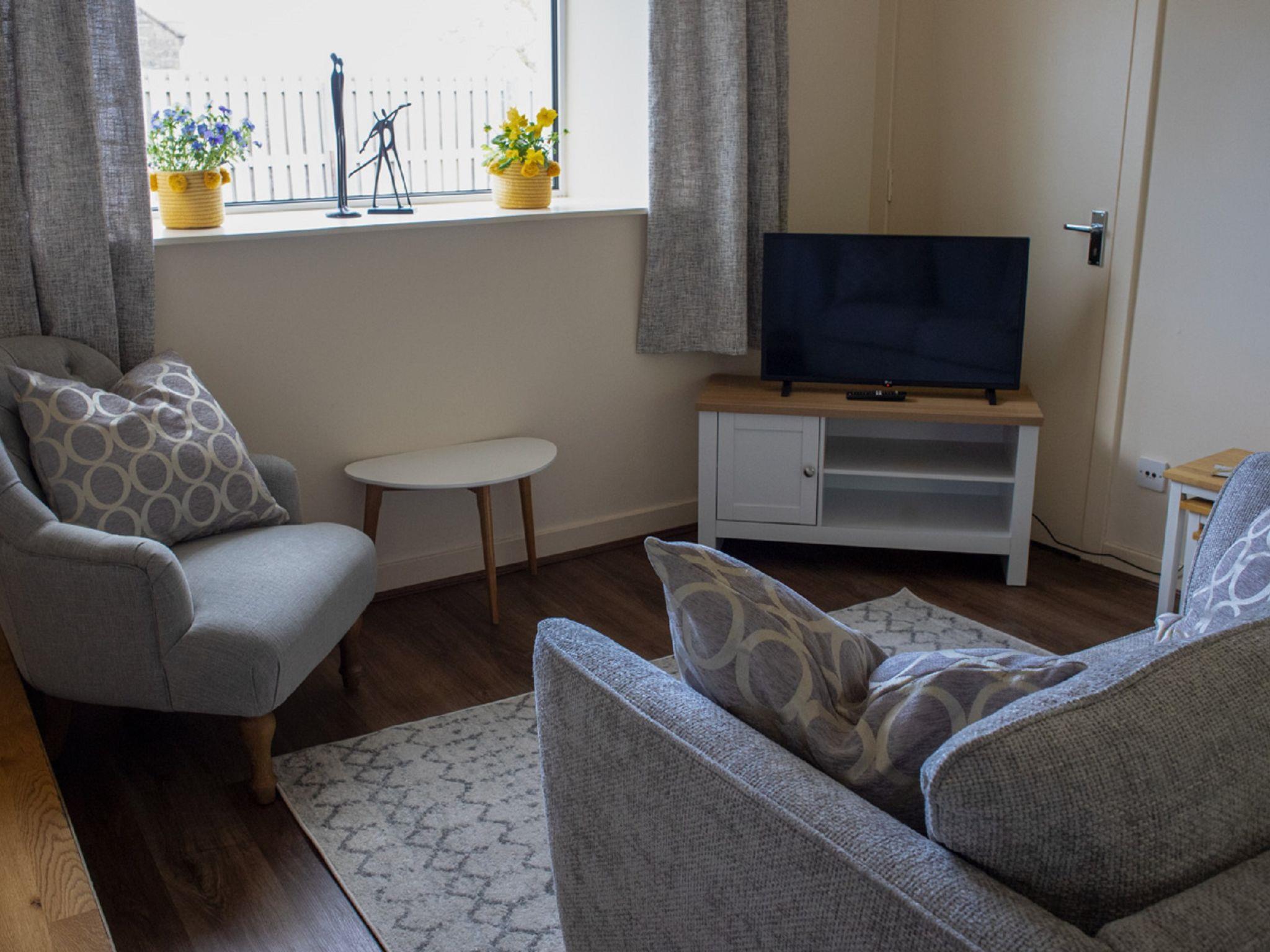 "Flat 2 Keeper's Cottage", 2-Zimmer-Wohnung 35 m2, im Erdgeschoss. Objekt geeignet für 2 Erwachsene. Hell, modern und geschmackvoll eingerichtet: Eingang. Offenes Wohn-/Esszimmer mit Esstisch und TV (Flachbildschirm). 1 Doppelzimmer mit 1 Doppelbett. Offene Küche (4 Kochplatten, Backofen, Toaster, Wasserkocher, Mikrowelle). Dusche/WC. Heizung. Zur Verfügung: Haartrockner. Internet (Wireless LAN, gratis). Parkplatz beim Haus. Bitte beachten: für Kleinkinder nicht geeignet. Kühlschrank ohne Gefrierfach, Nichtraucher-Haus. TV nur EN.