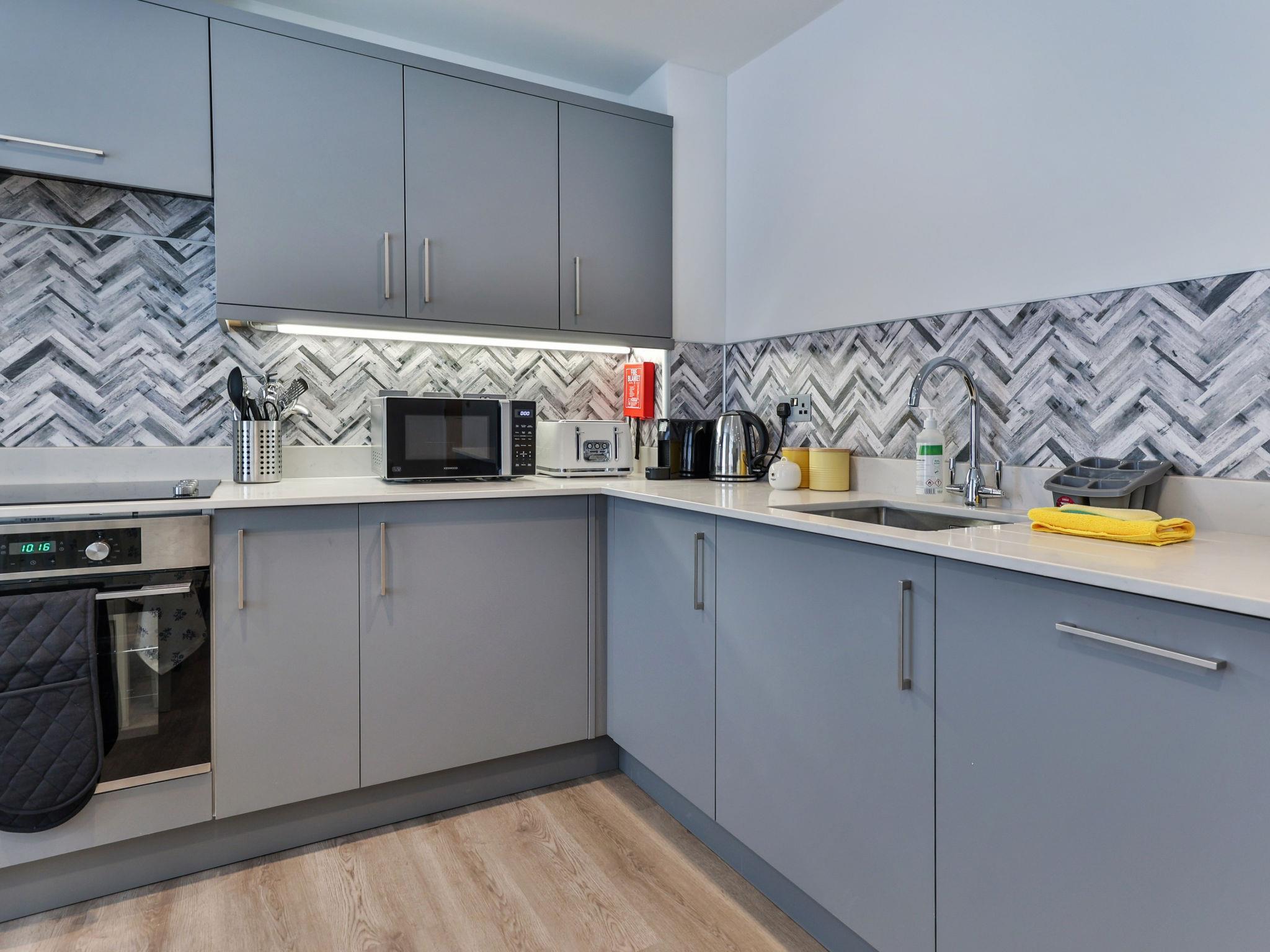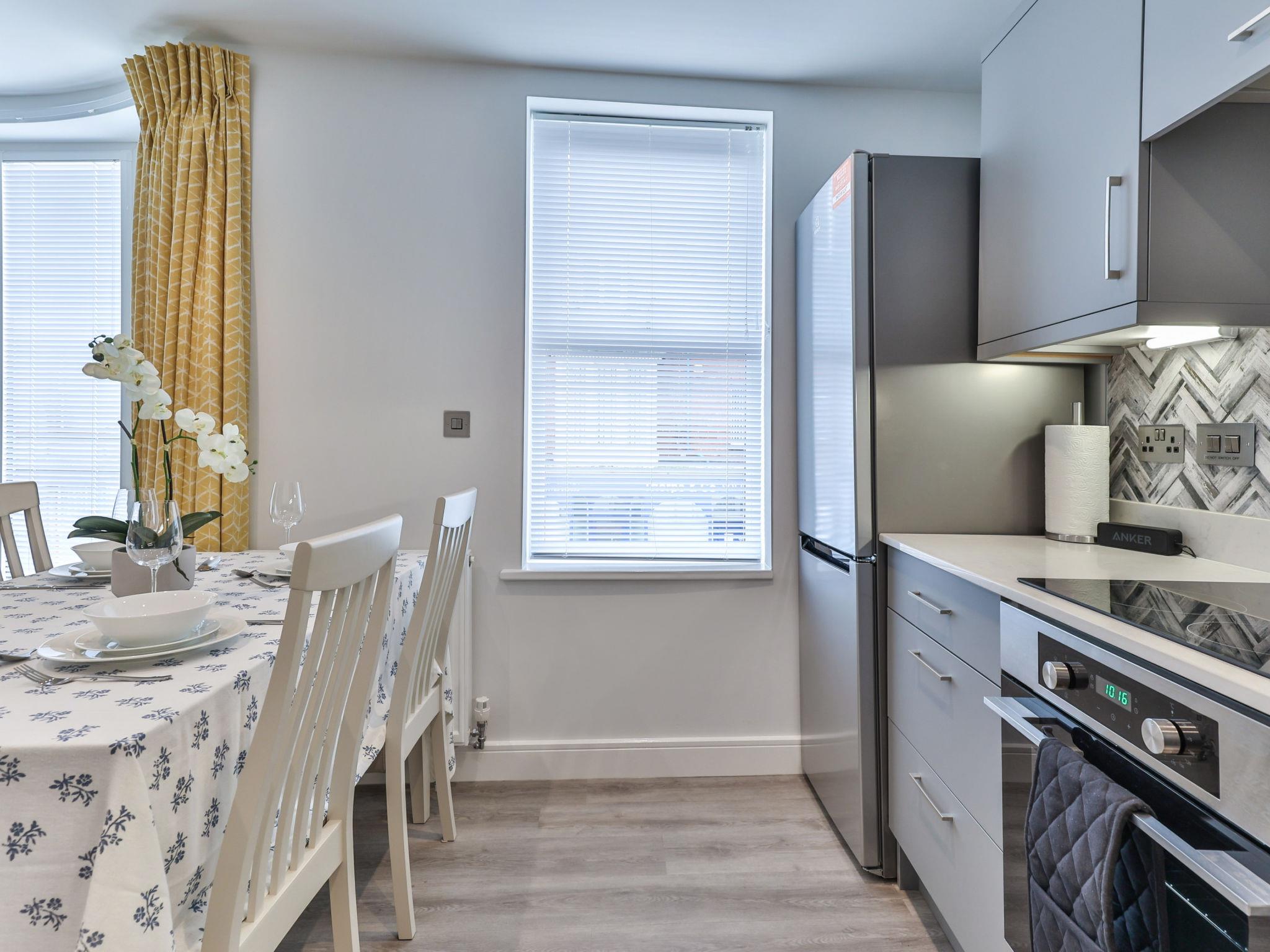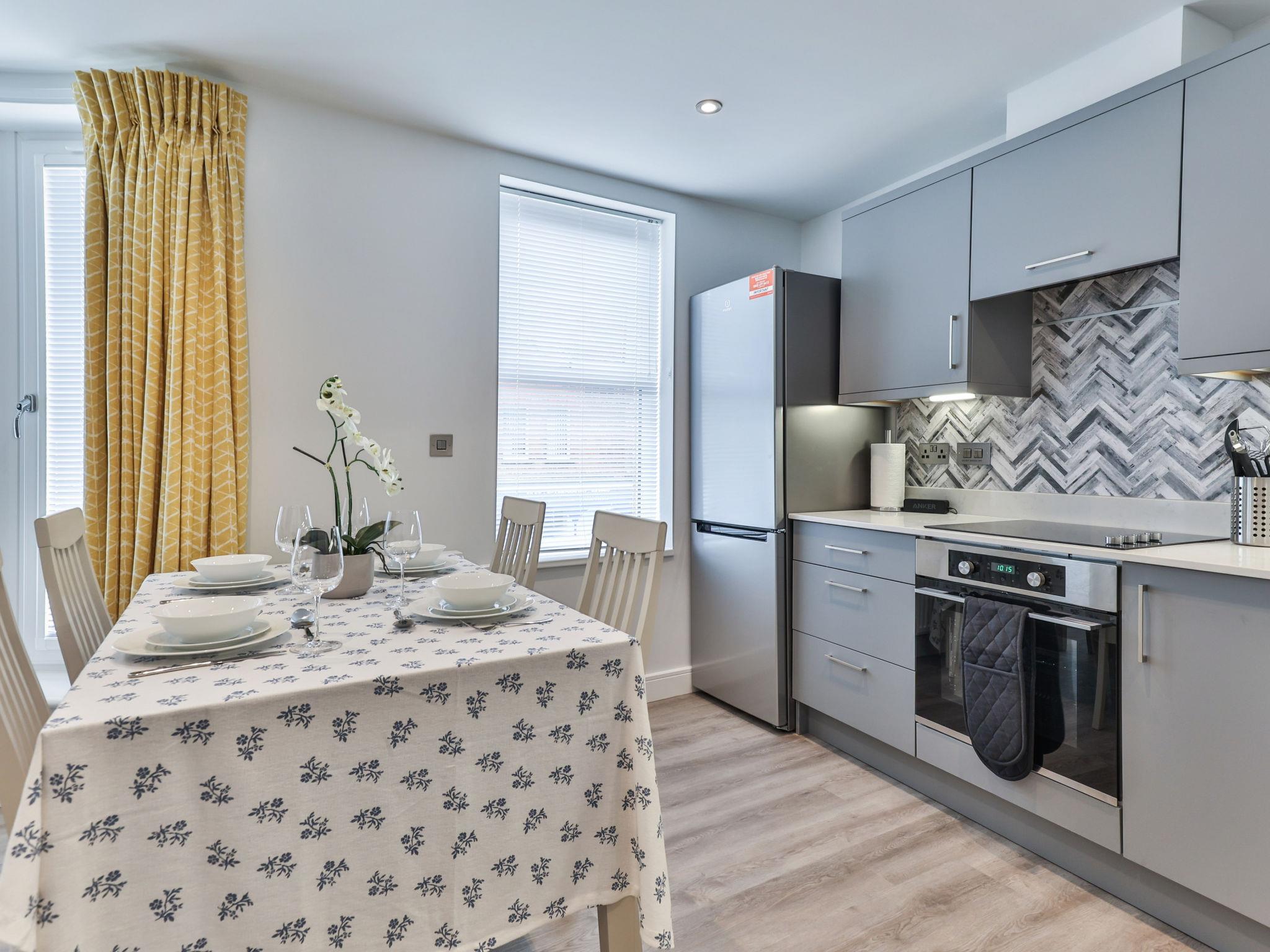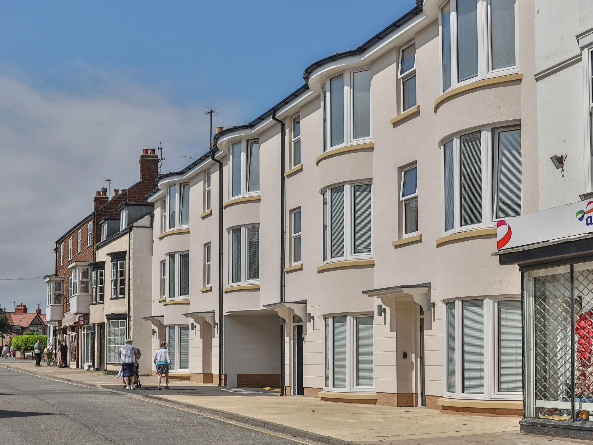 Filey: Appartementhaus. Supermarkt 1 km, Restaurant 100 m, Bahnstation 1.5 km, Sandstrand 500 m. Golfplatz 1.5 km.