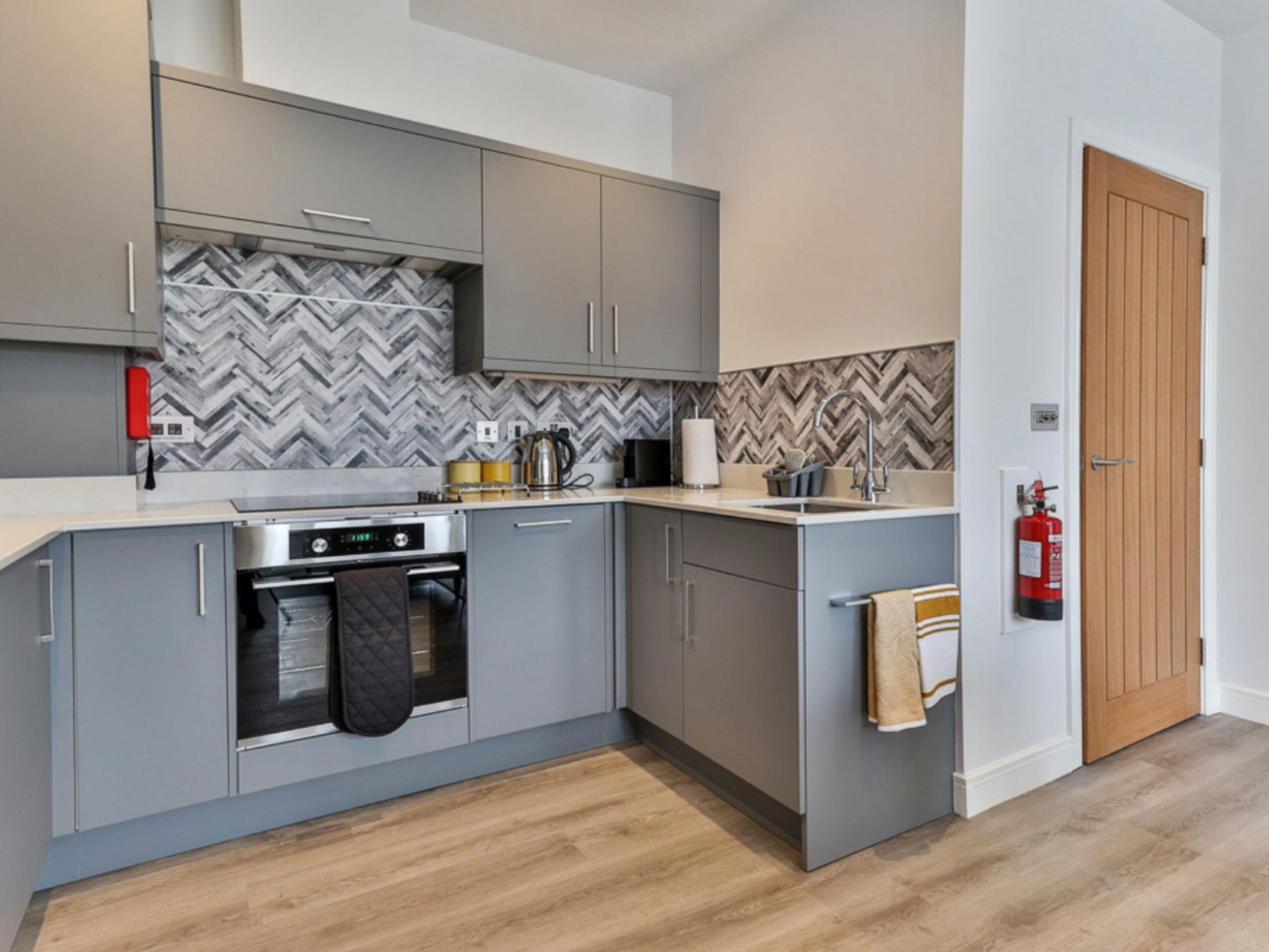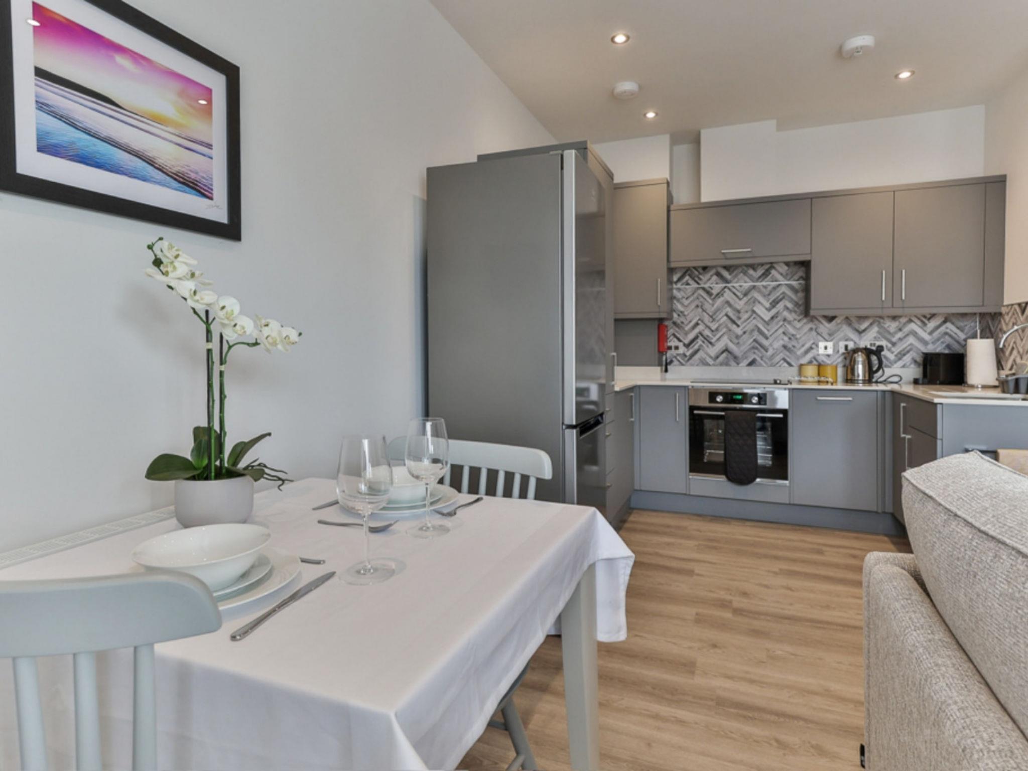 Filey: Appartementhaus. Supermarkt 1 km, Restaurant 100 m, Bahnstation 1.5 km, Sandstrand 500 m. Golfplatz 1.5 km.