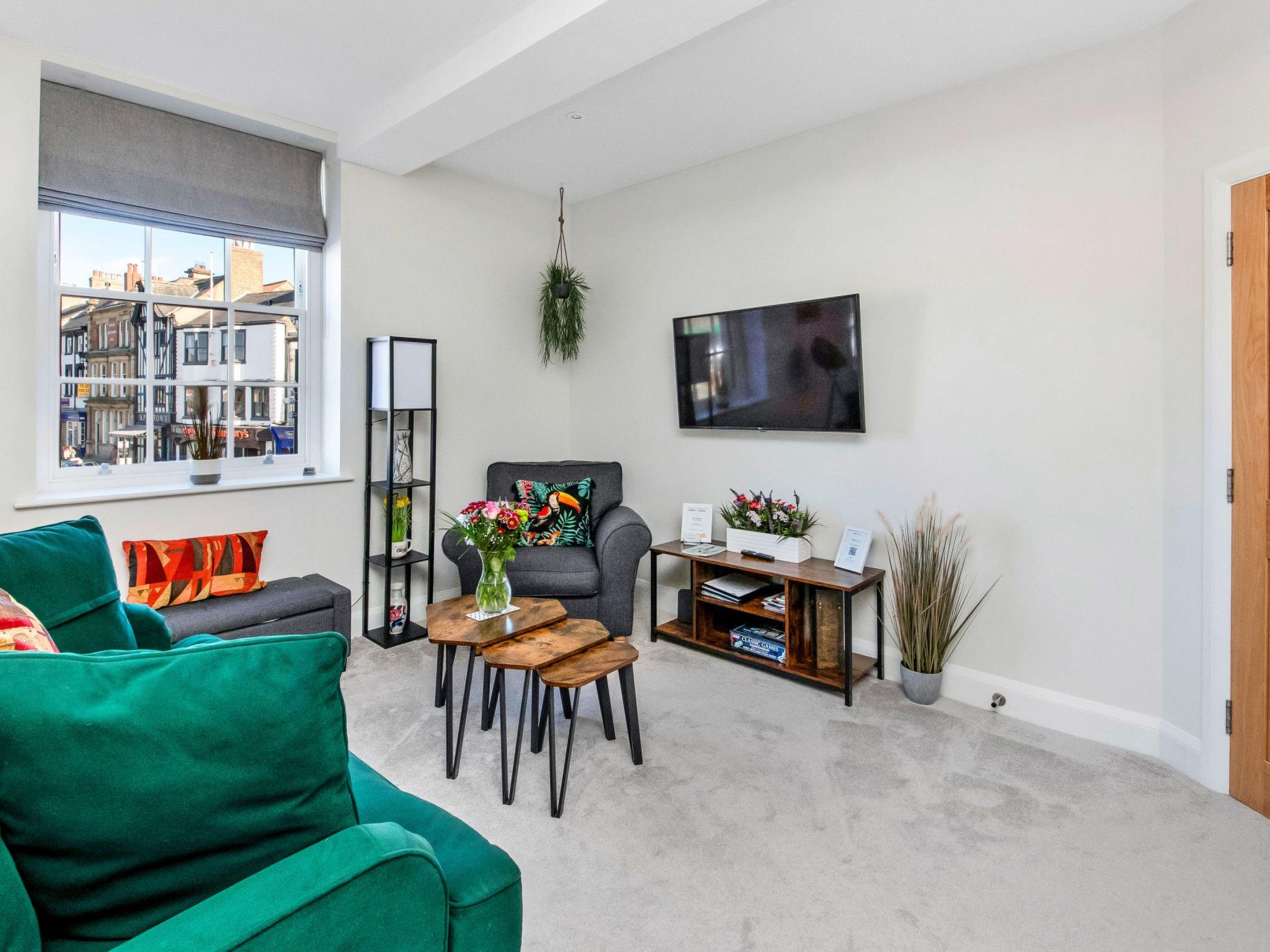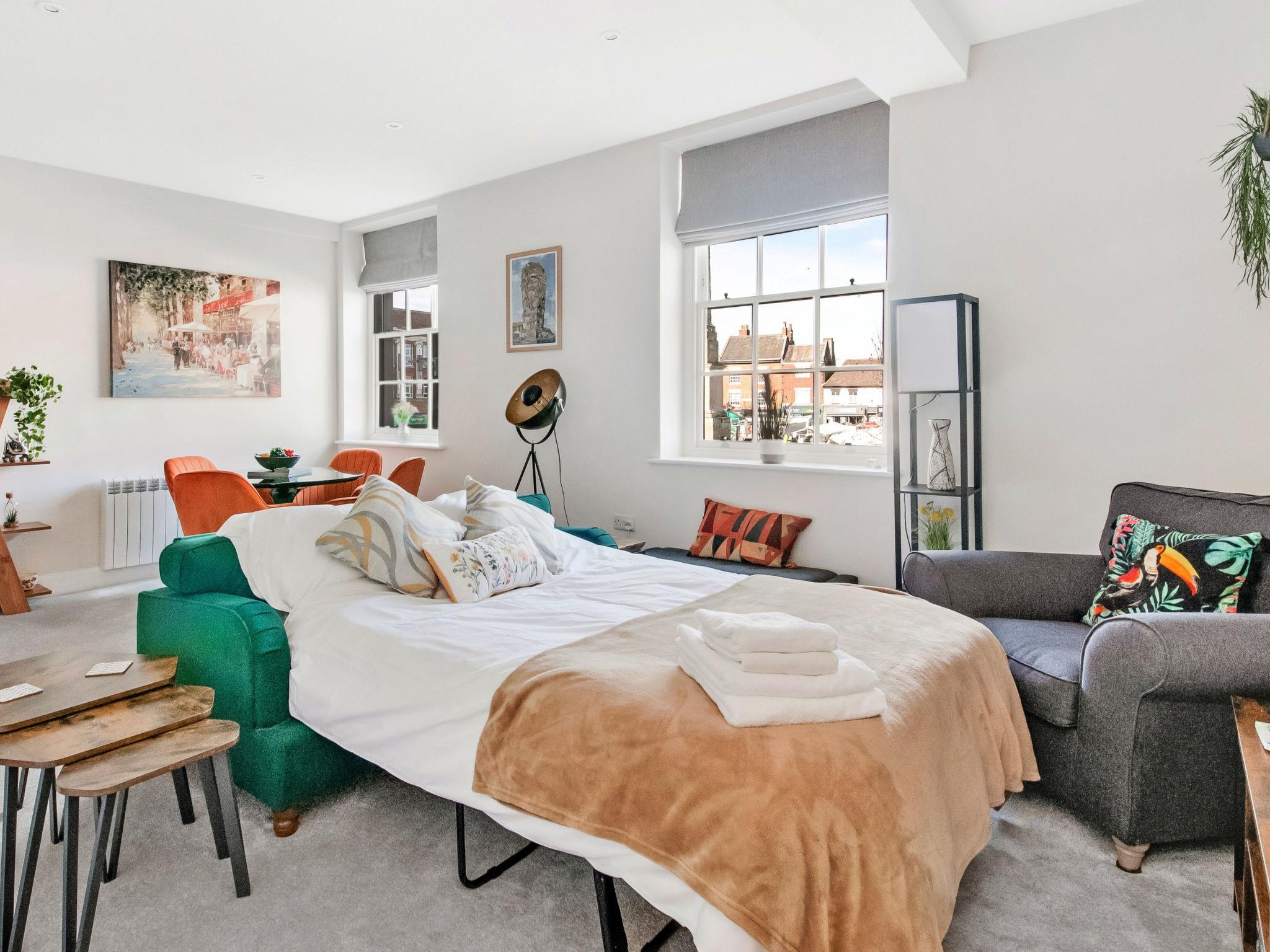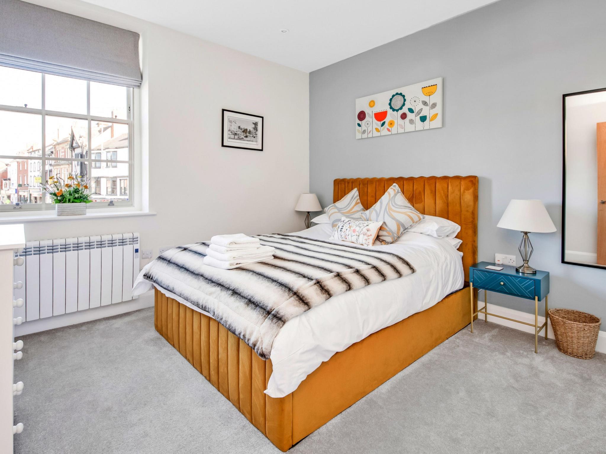 "Market View Ripon", 2-Zimmer-Haus 50 m2 im 1. Stock. Objekt geeignet für 3 Erwachsene. Wohnzimmer mit 1 Diwanbett und 1 Ausziehbett. 1 Zimmer mit 1 franz. Bett. Küche (Backofen, Geschirrspüler, Toaster, Wasserkocher, Mikrowelle, Tiefkühler). Dusche/WC. Zur Verfügung: Waschmaschine, Bügeleisen. Internet (WLAN, gratis). Parkplatz (1 Auto). Bitte beachten: Nichtraucher-Unterkunft. 1 Haustier/Hund erlaubt.