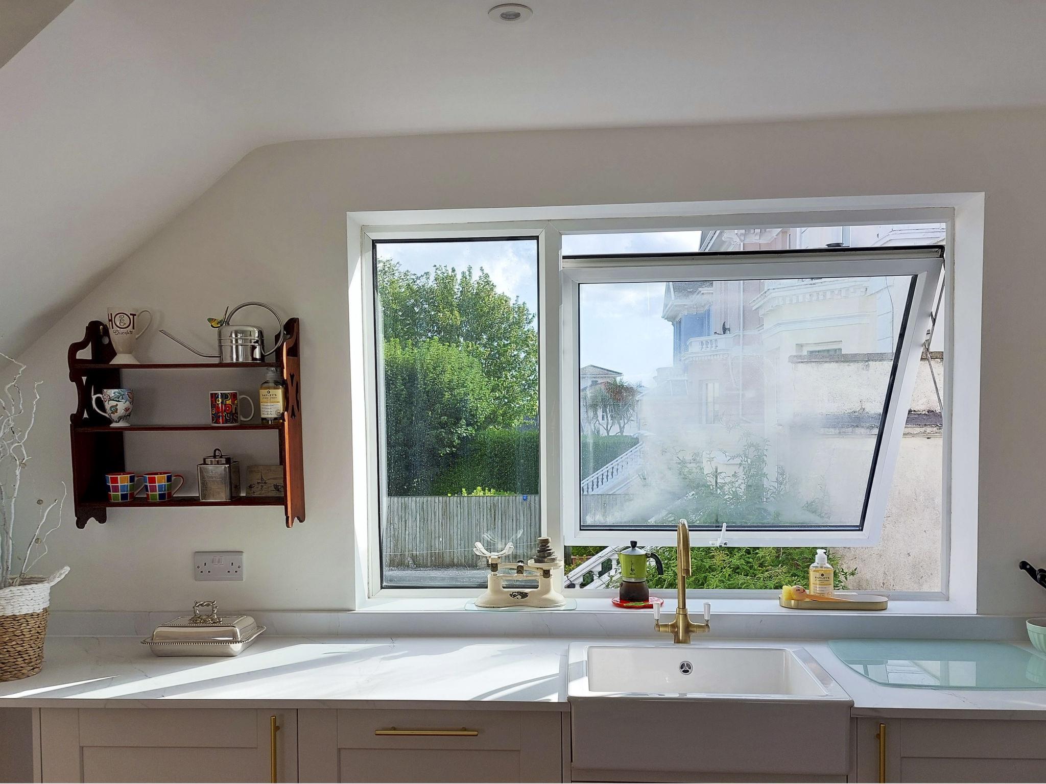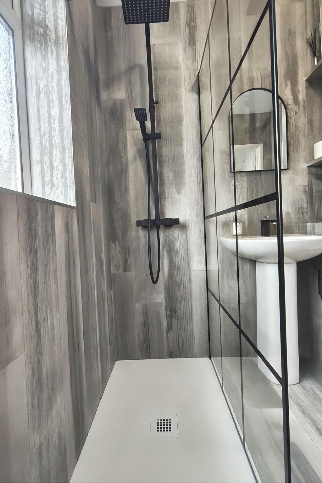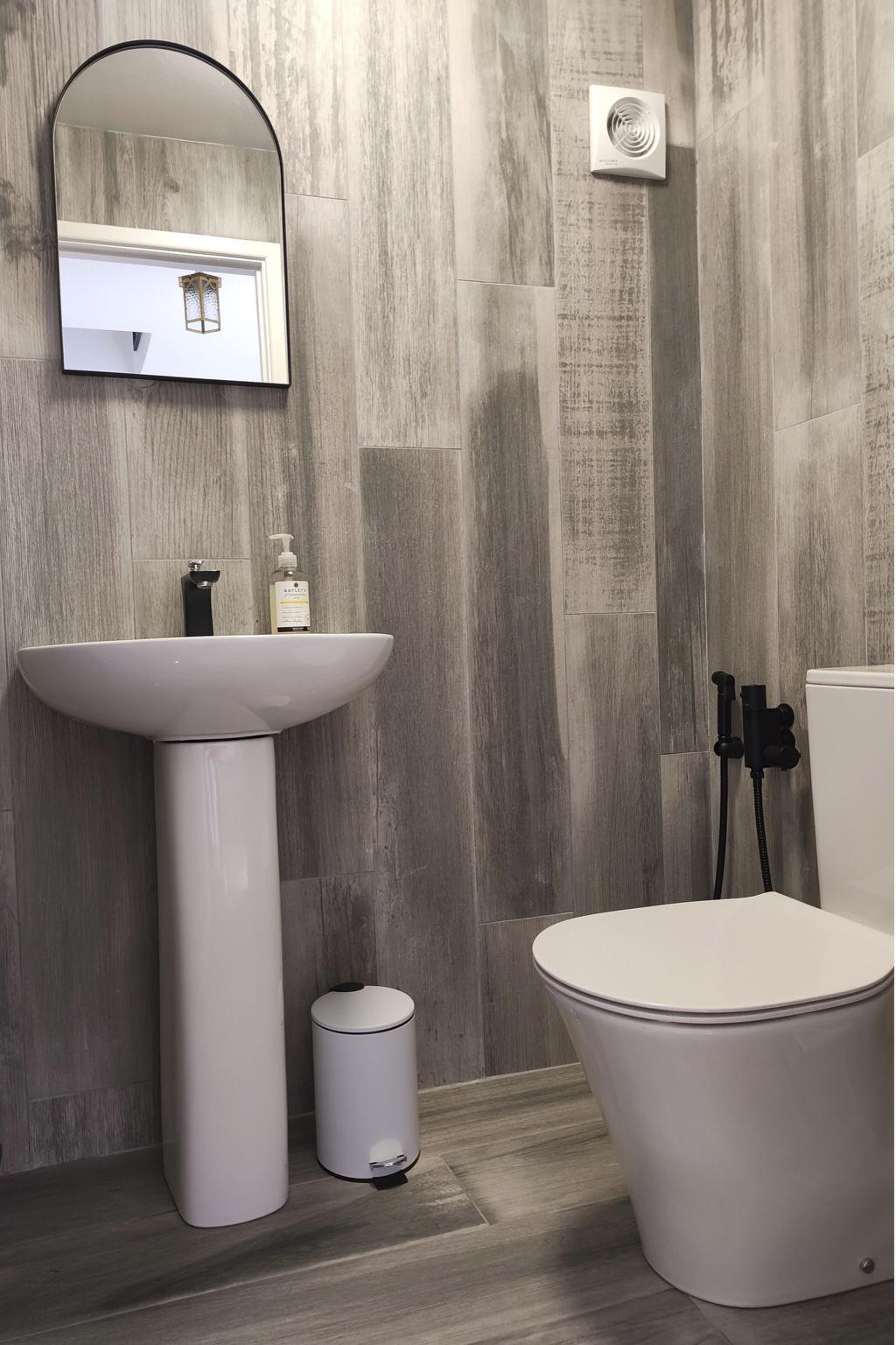 Es gibt ein komplett renoviertes Hauptbadezimmer mit einer luxuriösen begehbaren Regendusche, hochwertigen Armaturen und einer hygienischen Handdusche. Außerdem gibt es ein separates Gäste-WC mit Waschbecken, Toilette und einer zweiten Dusche neben dem dritten Schlafzimmer.