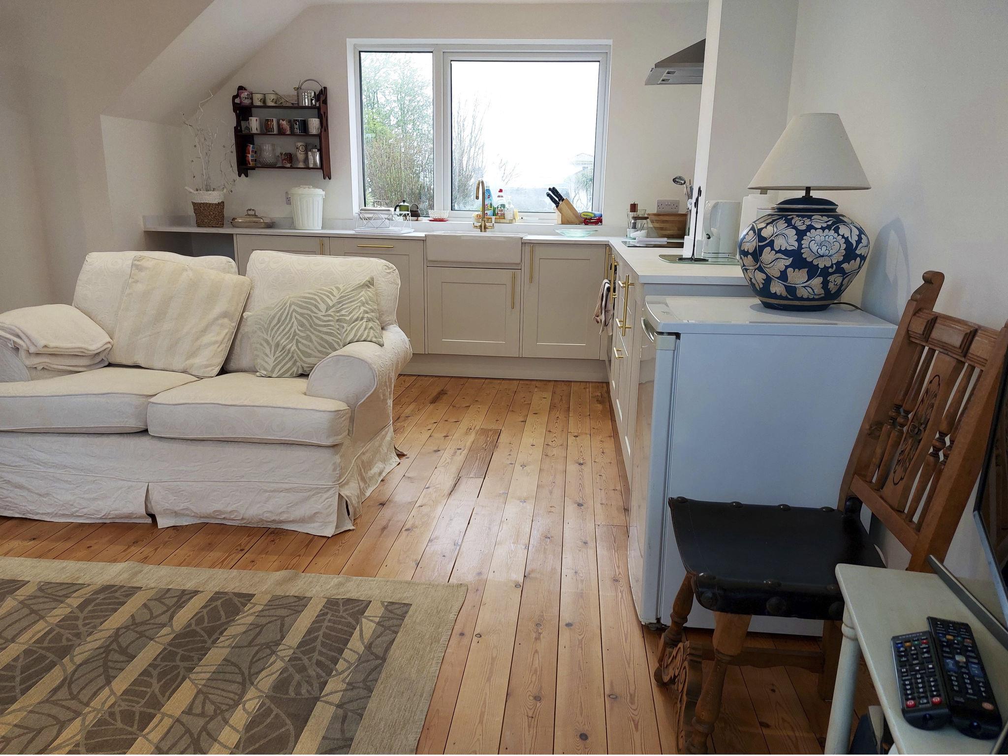 Die Küche ist komplett ausgestattet mit einem Induktionskochfeld, einem Geschirrspüler, einer Espressokanne, einer Kapselkaffeemaschine und einer großen Auswahl an Kochgeschirr. Eine Waschmaschine steht den Gästen ebenfalls zur Verfügung.