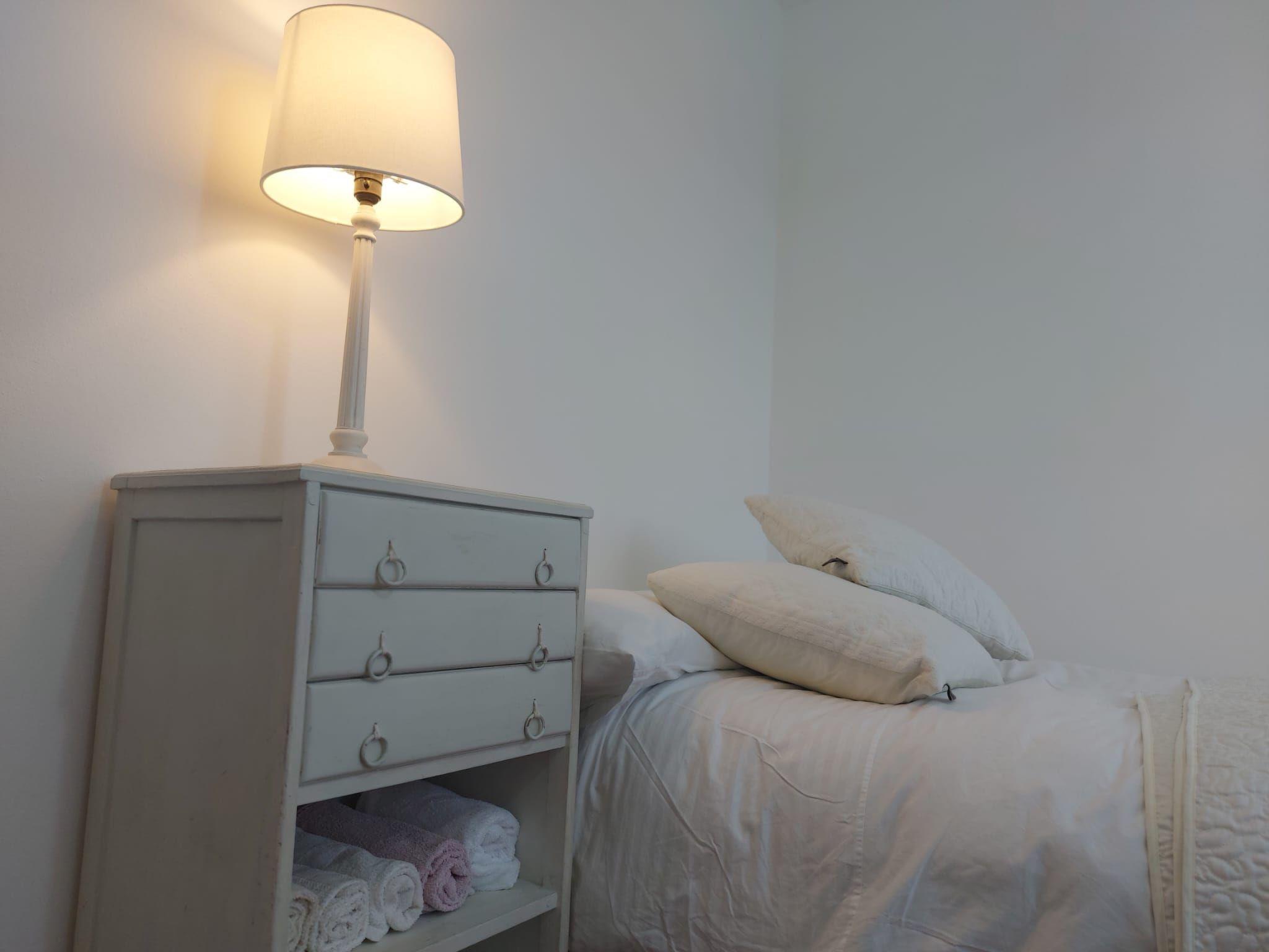 Ein zweites Schlafzimmer hat ein Queen-Size-Doppelbett, mit der Möglichkeit, ein Einzelbett hinzuzufügen, falls erforderlich.
