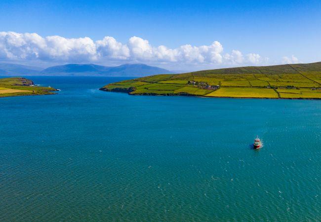 Children will love playing games in the large green area surrounding this private and quiet holiday accommodation overlooking Dingle Bay. These secluded holiday cottages offer heaps of fresh air and an ideal setting for a wealth of outdoor recreation such as cycling, hiking, fishing, swimming, and sightseeing.