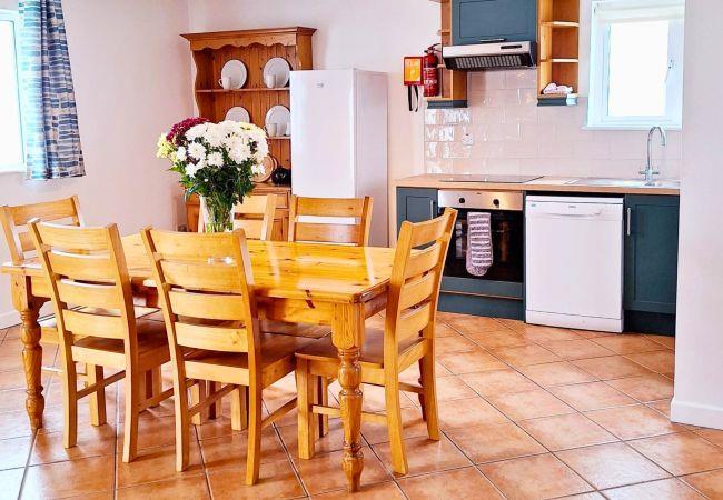 Double glass sliding doors lead from the living room area to the rear garden. Our younger self-catering guests will enjoy playing games on the large green surrounding this cul-de-sac of holiday accommodation in Dingle. Alfresco dining is an option too as each holiday cottage has a picnic bench situated outside the front door.