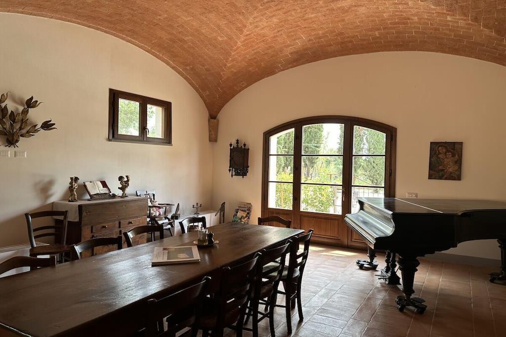 Das Appartment befindet sich in einem neu restaurierten, gräflichen Anwesen aus dem 18. Jahrhundert, damals mit einer Ziegelei. Vom großen Garten (mit Kräutrlabyrinth in etruskischem Stil) und der Sonnenterrasse am Salzwasserpool blickt man über Weinberge hinweg Richtung Montepulciano. Eine Pergola, zwei Höfe und eine überdachte Loggia bieten Ruhe und schattige Rückzugsmöglichkeit. Frühstück servieren wir im "Kuppelsaal", dem aufwendig restaurierten, ehemaligen Stall, in dem auch unsere Sommerkonzerte stattfinden. Kinder freuen sich über eine lange Rutschbahn hinab zum Weinberg und die große Rasenfläche für ihre Spiele. Insgesamt verfügen wir über 5 Ferienwohnungen und 1 Doppelzimmer, die auf Anfrage auch gemeinsam buchbar sind.