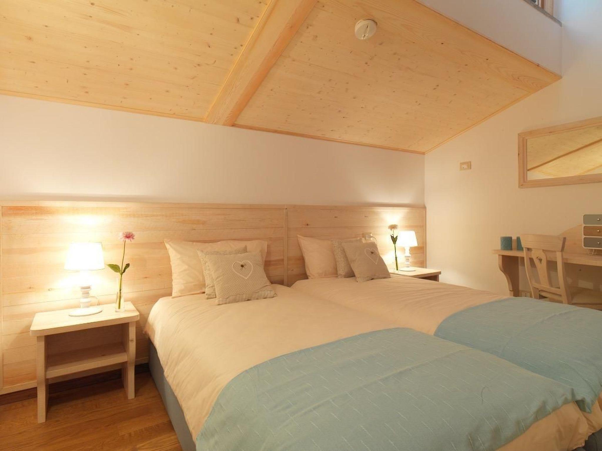 Schlafzimmer 5: Das Zimmer Vivo befindet sich im schönen Dachgeschoss und verfügt über zwei Einzelbetten, die zu einem Doppelbett zusammengefügt werden können. Es teilt sich ein Badezimmer mit dem angrenzenden Schlafzimmer auf der gleichen Etage.