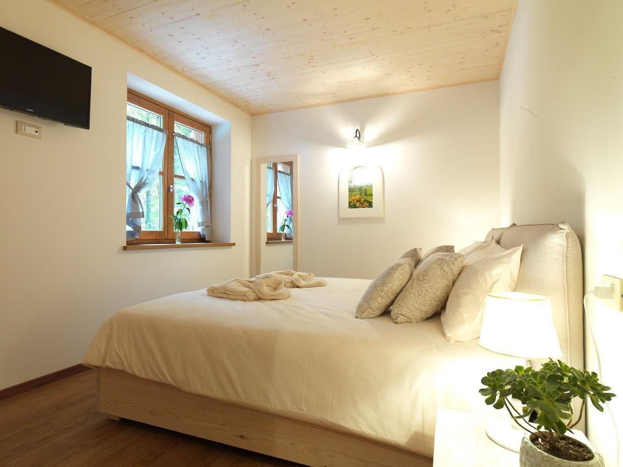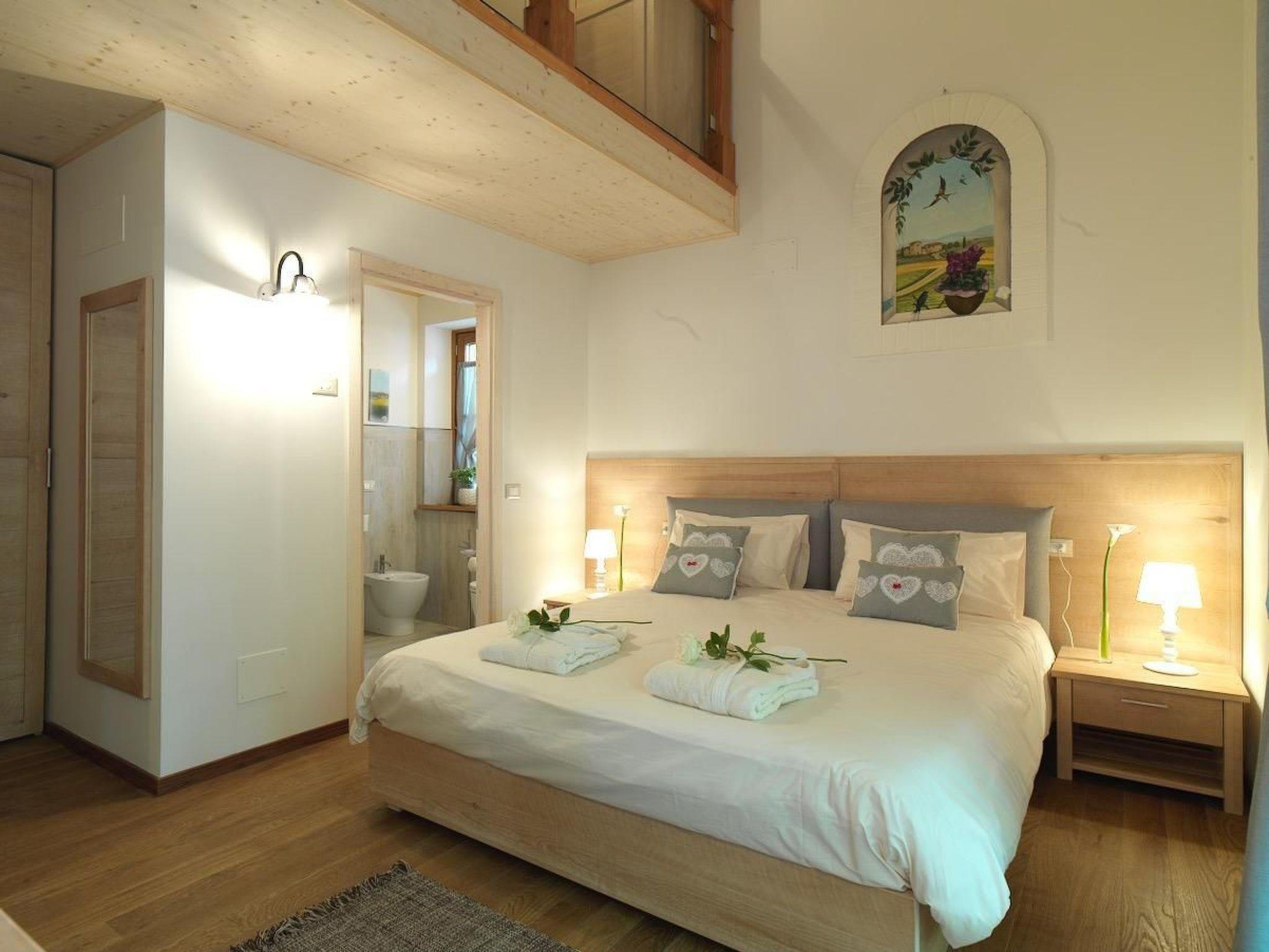 Schlafzimmer 1: Die Cantore Suite befindet sich im ersten Stock und verfügt über ein eigenes Bad, hohe Decken und direkten Zugang zur Sonnenterrasse vom Türfenster aus.