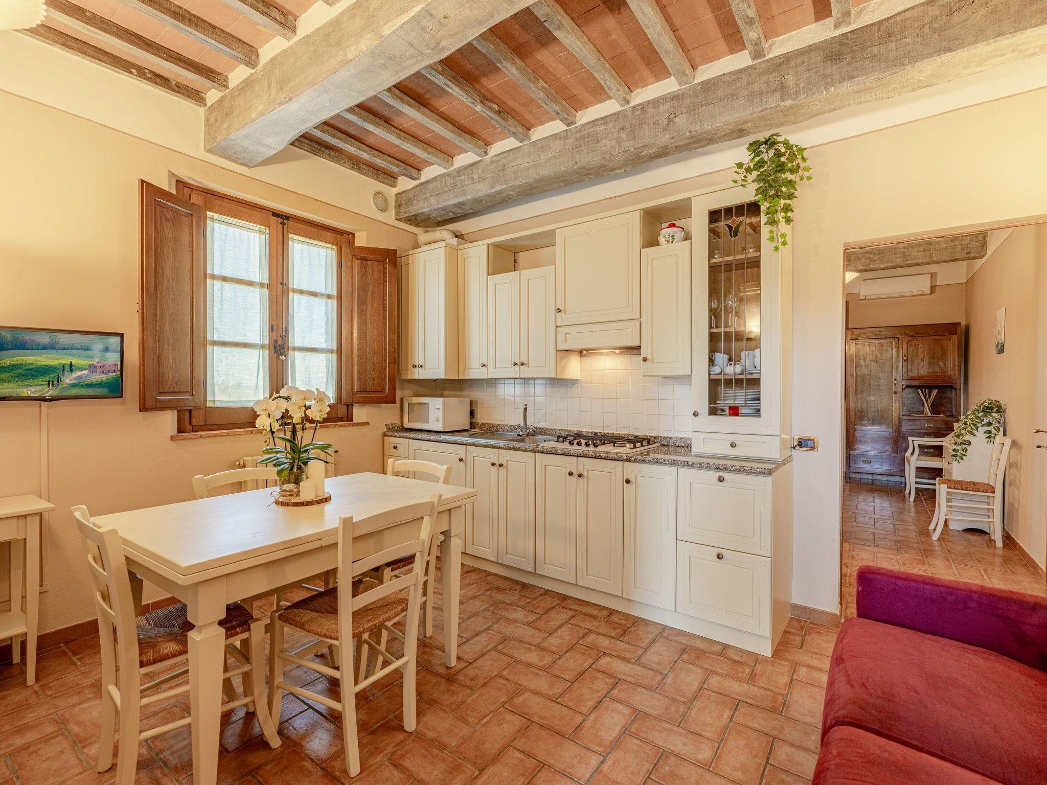 Sie ist im typisch toskanischen Stil eingerichtet und kann bis zu 3-4 Personen (2 Erwachsene + 2 Kinder) beherbergen.