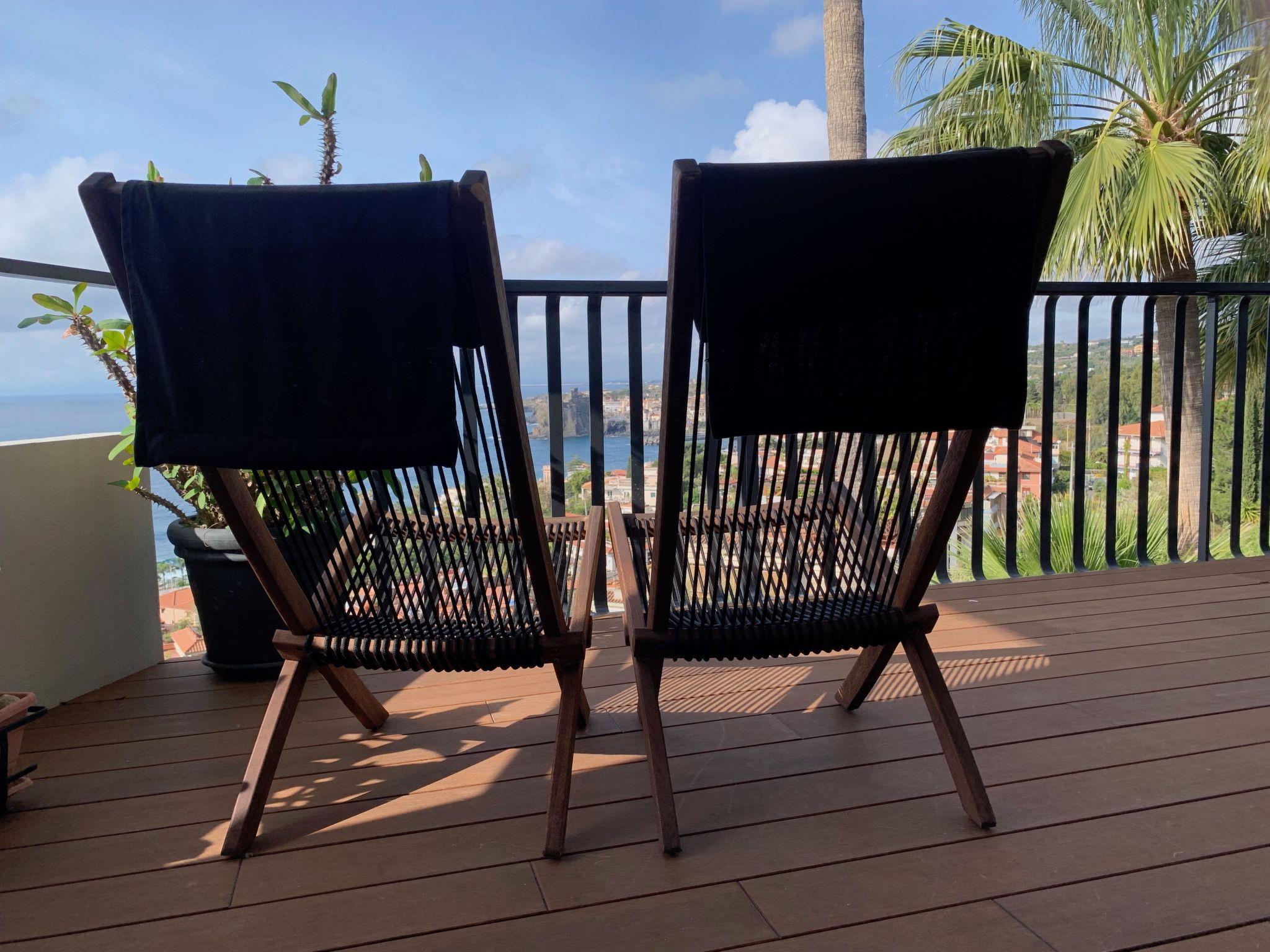 Der Parkettboden in allen Räumen (auch auf der Terrasse), die großen Fenster, das Harzbad und die maßgefertigten Möbel machen diese kleine Wohnung zu einem gemütlichen Wohnsitz mit Meerblick.