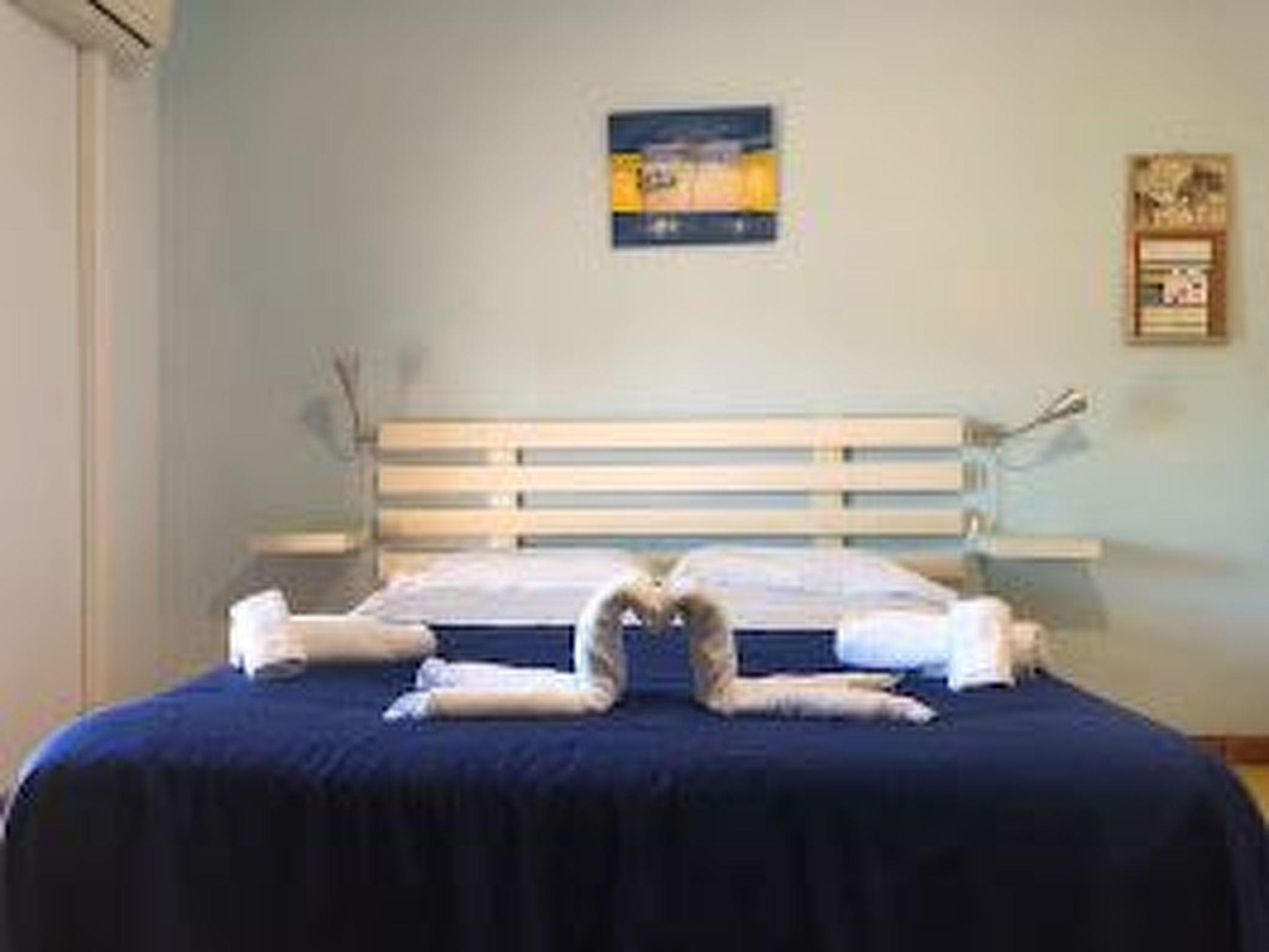 Studio-Apartment im Erdgeschoss, bestehend aus einem Einzelzimmer mit Doppelbett (180x200cm), voll ausgestatteter Küche (Mikrowelle, Kühl- und Gefrierschrank, Geschirr, etc.), Bad mit Dusche und Bidet, Terrasse auf Gartenebene mit Tisch und Stühlen und teilweise Meerblick.
