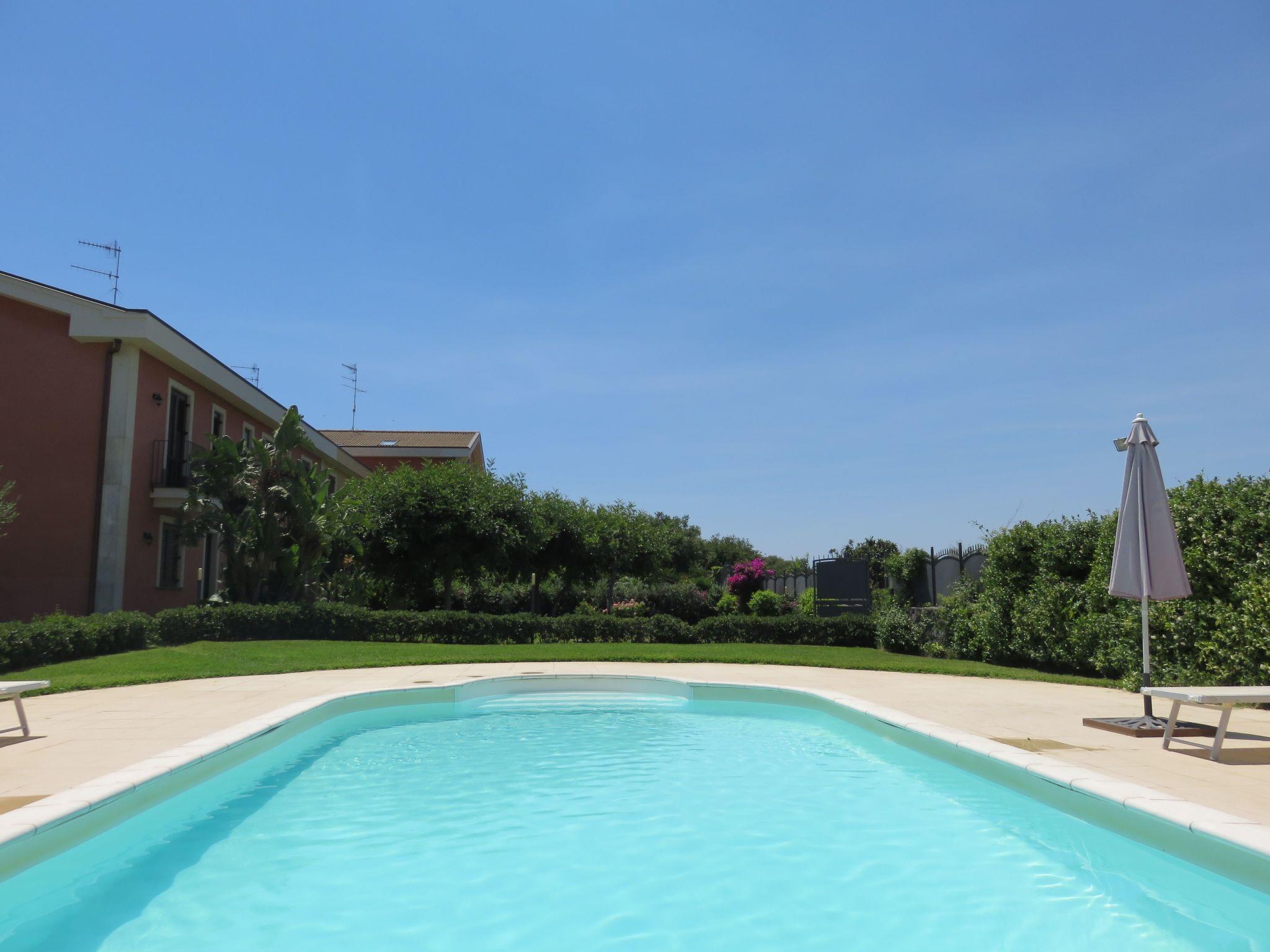 Schwimmbad mit Liegestühlen und Sonnenschirmen mit Blick auf den Ätna, zur gemeinsamen Nutzung mit den anderen Gästen der Residenz (mit Kopfhörern und Schließung während der Ruhezeiten). Picknickplatz im Garten. Parkplatz entlang der Privatstraße der Residenz.