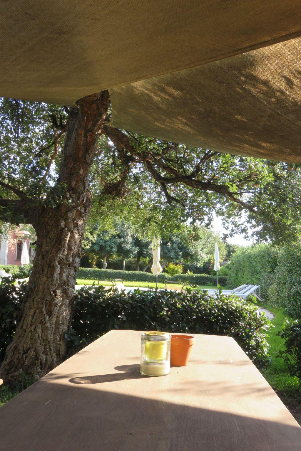 Die Terrasse ist mit Tisch und Stühlen möbliert. Das Apartment befindet sich im zweiten Geschoss und ermöglicht den Gästen den Blick auf den Ätna und auf das Meer