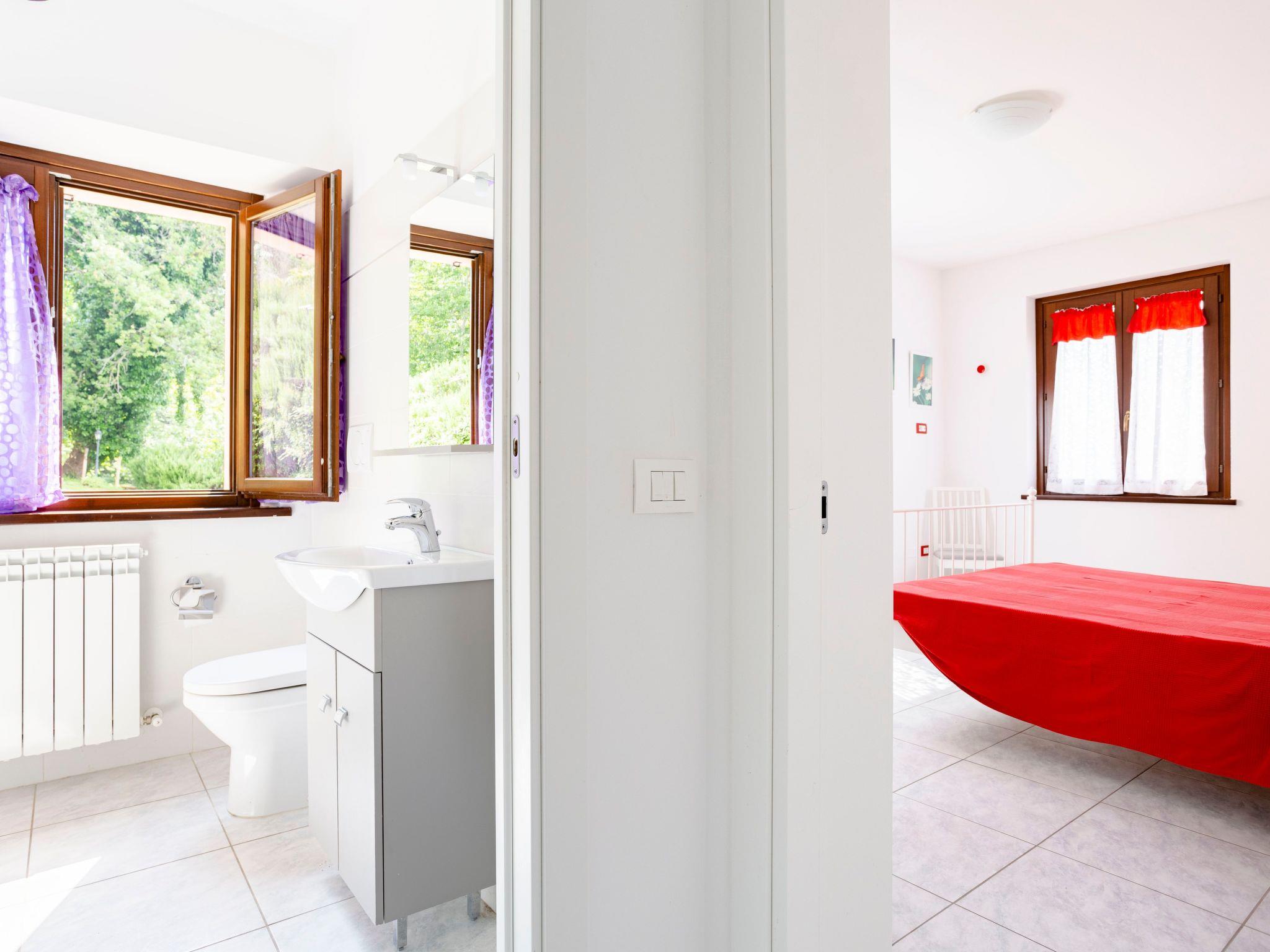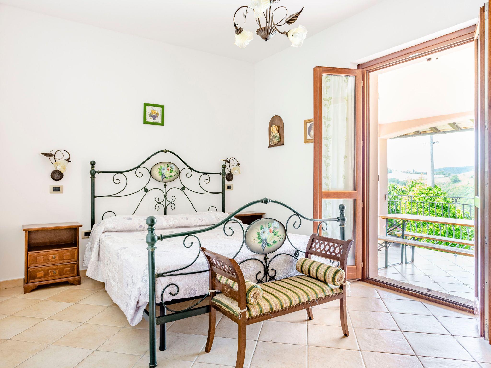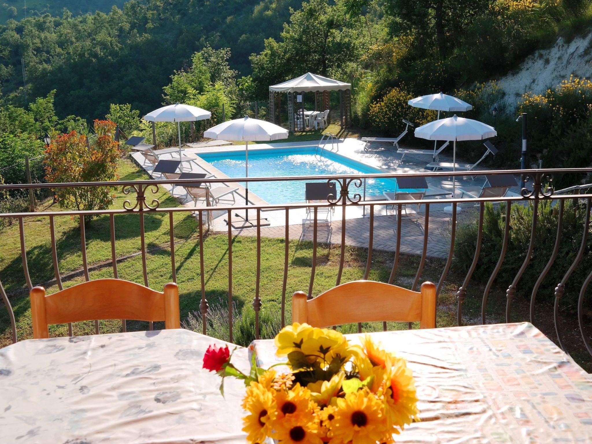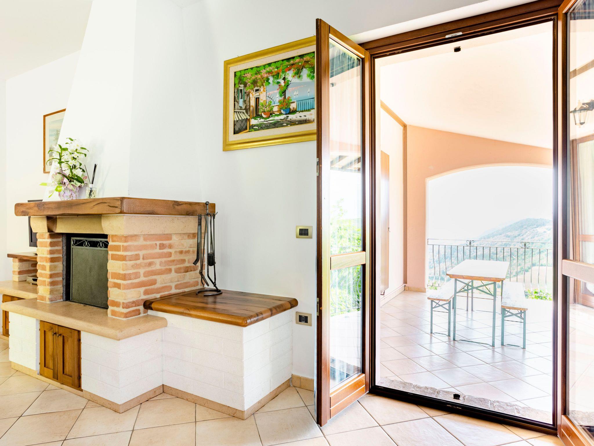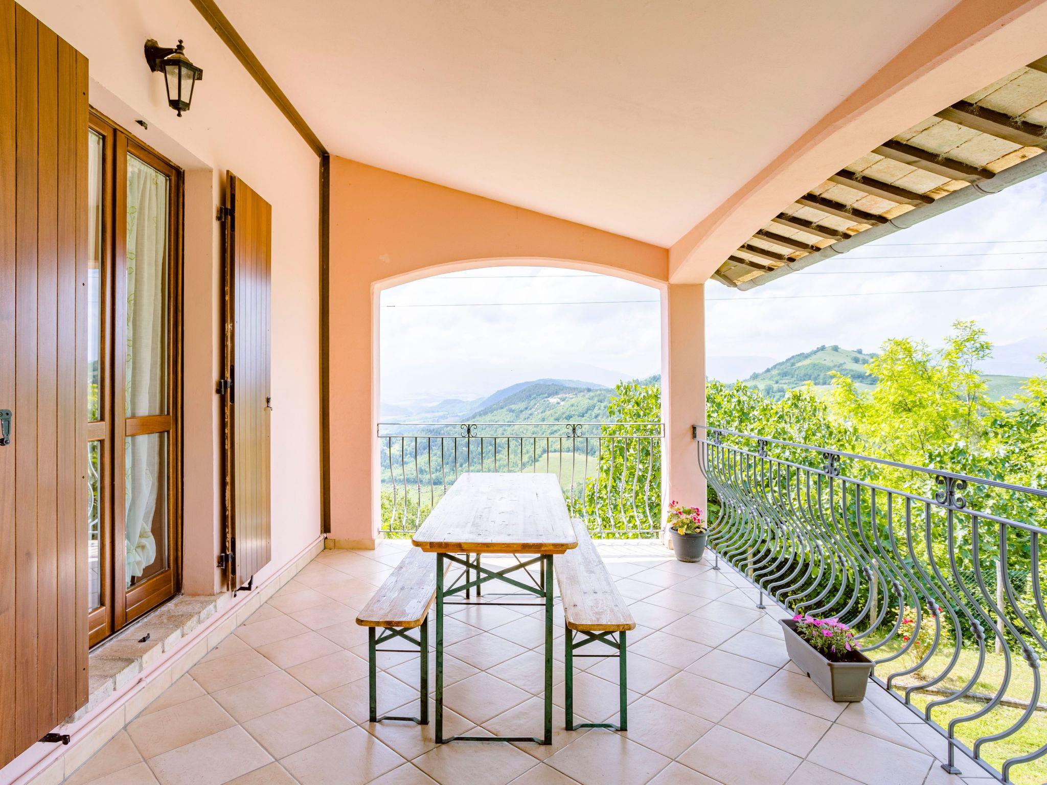 Das unabhängige Ferienhaus befindet sich in sehr sonniger Lage mit Panoramablick auf das Flusstal von Candigliano. Gleichzeitig können Sie das Panorama der Furlo-Schlucht und der drei Apenninenberge, Monte Catria, Petrano und Nero, bewundern.