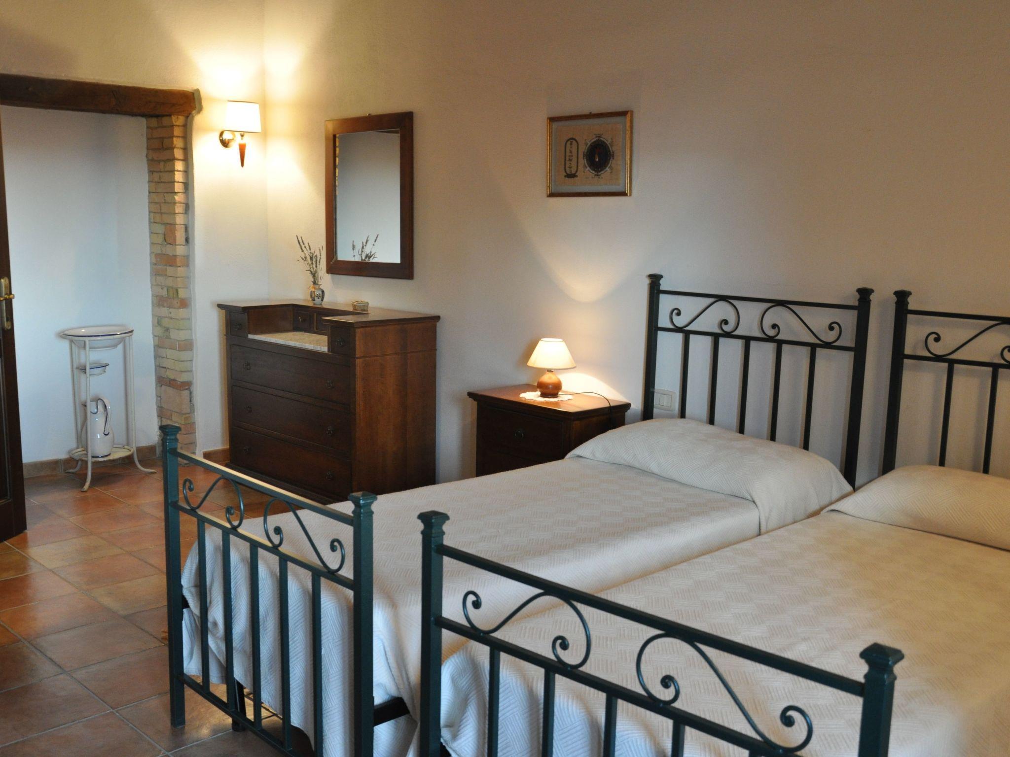 Bellavista Holidays ist ein unabhängiges Bauernhaus, das aus 4 Apartments und einem Nebengebäude besteht, jedes unabhängig und mit eigenen Außenbereichen.Gruppen treffen sich normalerweise in der Rufeno-Wohnung, wo sie alle bequem zusammen essen können.Die Wohnungen setzen sich wie folgt zusammen:Rufeno - 4 Betten (110 qm)Erdgeschoss: Eingang - großes Wohnzimmer mit Küche und Essbereich, ein Schlafzimmer mit Doppelbett, ein Schlafzimmer mit zwei Einzelbetten, ein Badezimmer mit Badewanne.Amiata - 4 Betten (120 qm)Erdgeschoss: Eingang - Wohnzimmer mit Kamin, Küche, zwei Doppelschlafzimmer, ein Badezimmer mit Badewanne, ein Badezimmer mit Dusche.Cetona - 6 Betten (130 qm)Erster Stock: Eingang - Wohnzimmer mit Kamin und Essbereich, Küche, zwei Doppelschlafzimmer, ein Zweibettzimmer, ein Badezimmer mit Dusche, ein Badezimmer mit Badewanne.Azzara - 6 Betten (150 qm)Erdgeschoss: Eingang - Wohnzimmer mit Kamin und Essbereich, Küche, Bad mit DuscheErster Stock: zwei Doppelzimmer, ein Zweibettzimmer, ein Badezimmer mit Badewanne.Kleines Haus - 2 Betten (45 qm)Erdgeschoss: Eingang - Küche mit großer Panoramaterrasse, ein Schlafzimmer mit Doppelbett, ein Badezimmer mit Dusche