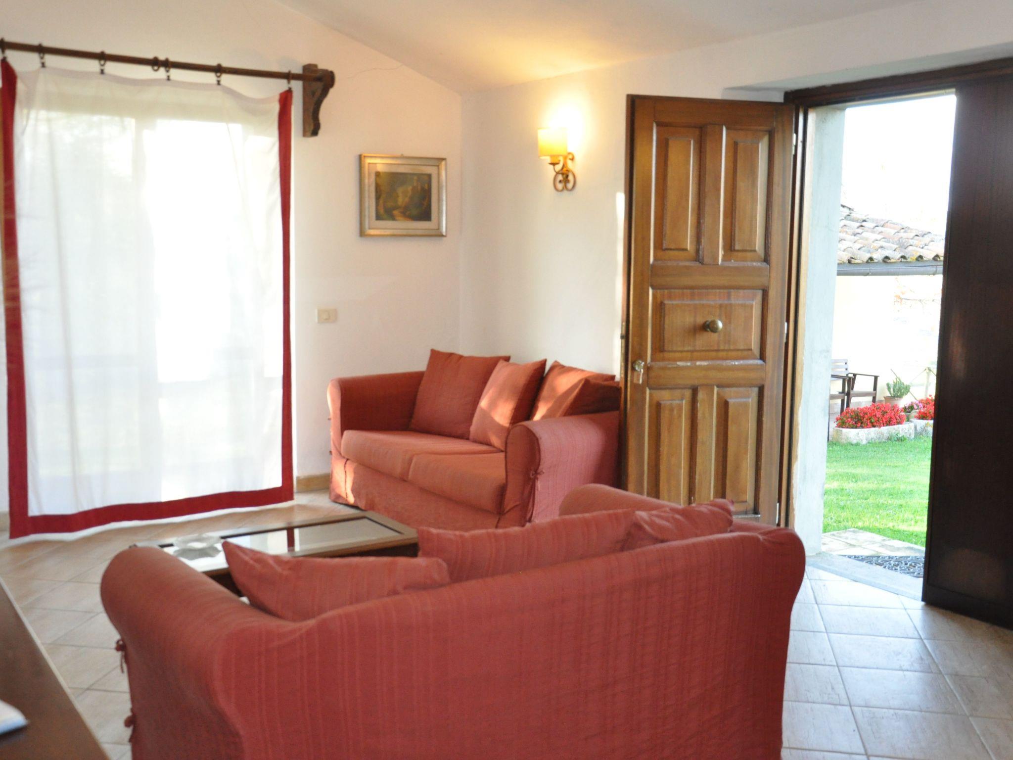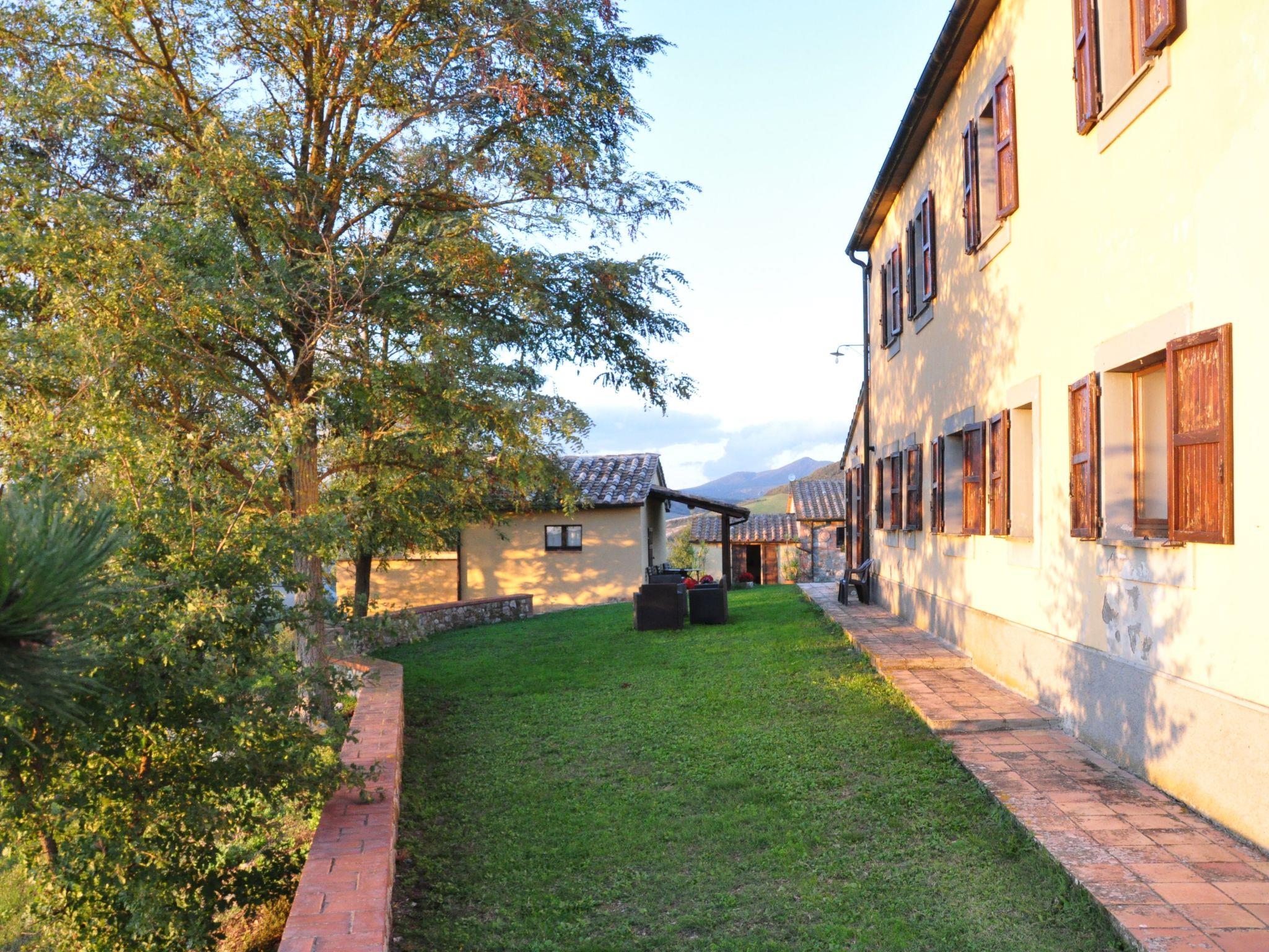 Die Wohnung Amiata ist in sich abgeschlossen und ist Teil eines großen Bauernhauses. Sie befindet sich im Erdgeschoss, kann 4 Personen beherbergen und ist 130 m2 groß. Man betritt das Wohnzimmer mit Kamin, zwei Sofas und Satellitenfernsehen mit einer großen Fenstertür mit Zugang zum grünen Außenbereich, vom Flur aus gelangt man in die Küche (mit Tisch und Stühlen zum Essen, Backofen, Gasherd mit vier Brennern, Mikrowelle), dann in ein Bad mit Dusche (WC, Waschbecken und Bidet), ein Schlafzimmer mit einem Doppelbett, Zugang zu einem Doppelzimmer mit Fenstertür mit Zugang zum Außenbereich - dieses Schlafzimmer hat ein eigenes Bad mit Badewanne und Dusche (WC, Bidet und Waschbecken). Unabhängige LPG-Gasheizung.