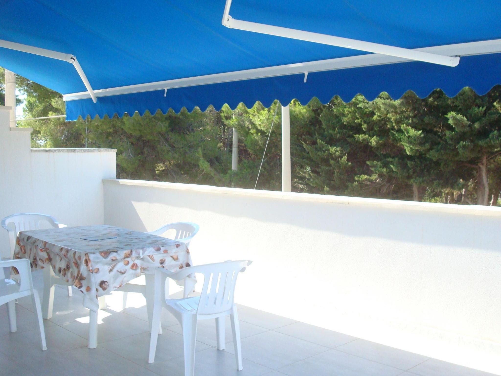 Die'esterno della Casa Azzurra Felloniche è altrettanto invitante. Oltre alla meravigliosa vista mare che entrambi gli appartamenti offrono, gli ospiti avranno la comodità di un parcheggio riservato, garantendo così facilità di accesso e sicurezza per chi sceglie di esplorare il Salento in auto. La struttura è circondata dalla tranquillità della natura, offrendo un'Oase des Friedens und der Ruhe.