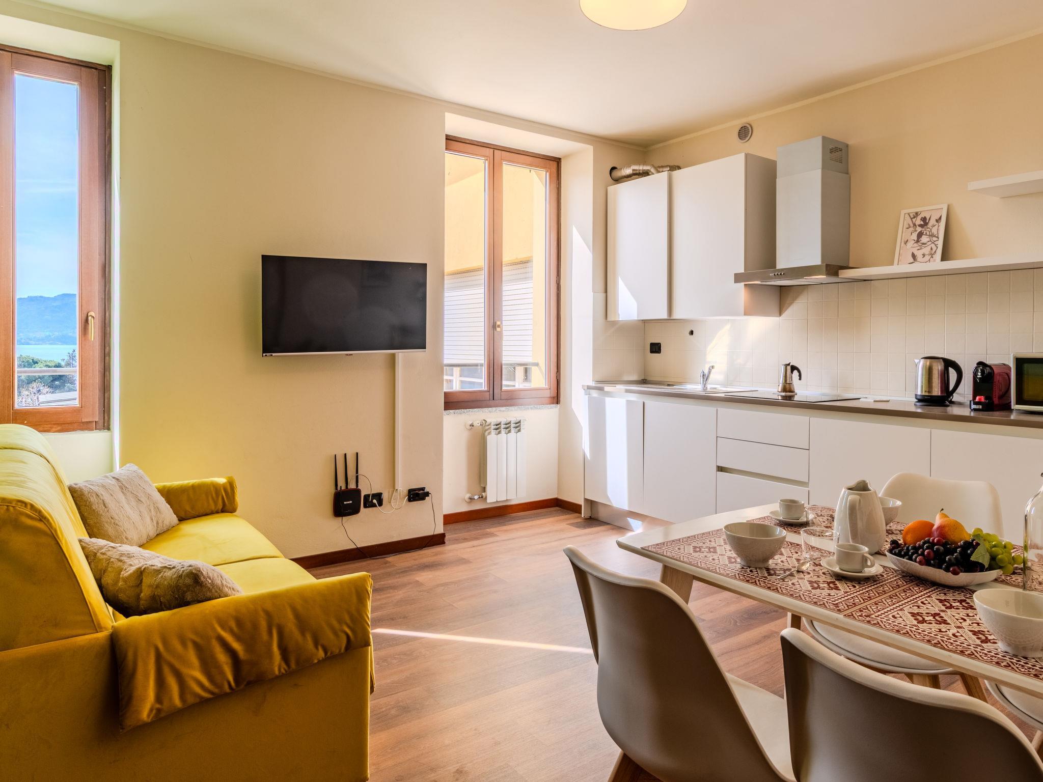 2-Zimmer-Wohnung im 2. Stock. Komfortabel und modern eingerichtet: offenes Wohn-/Esszimmer mit 1 Doppeldiwanbett, Esstisch und TV (Flachbildschirm). 1 Doppelzimmer. Offene Küche (Geschirrspüler, 4 Induktionskochplatten, Wasserkocher, Mikrowelle, elektrische Kaffeemaschine, Kapseln für die Kaffeemaschine (Bialetti)). Dusche/Bidet/WC. G-Heizung. Heizung nur verfügbar von 15.10. bis 30.04. Natursteinboden. Sicht auf den See und die Berge. Zur Verfügung: Haartrockner. Internet (Wireless LAN, gratis). Parkplatz (1 Auto). Bitte beachten: Nichtraucher-Unterkunft. Rauchmelder, Feuerlöscher. IT013248B4HXVWLLNF