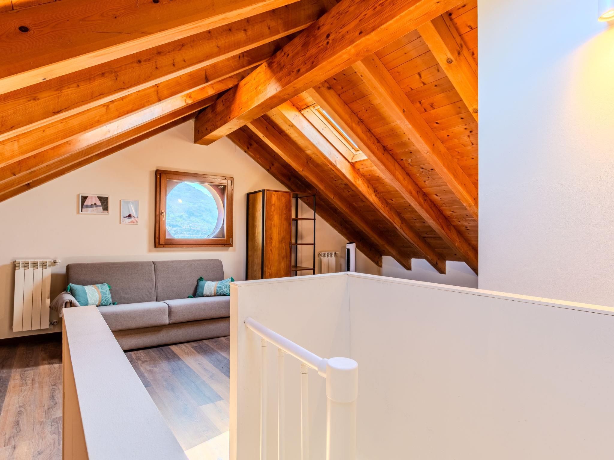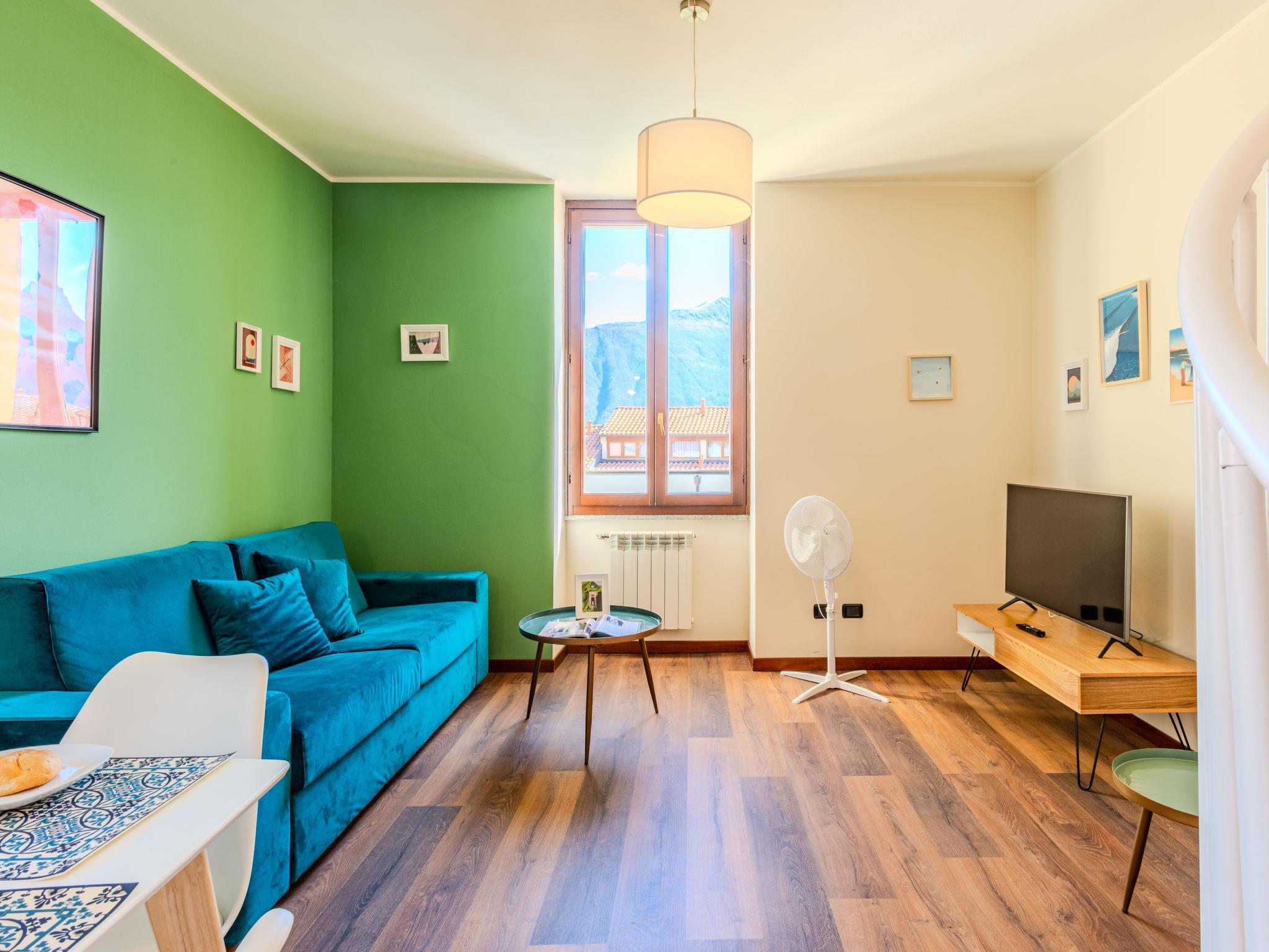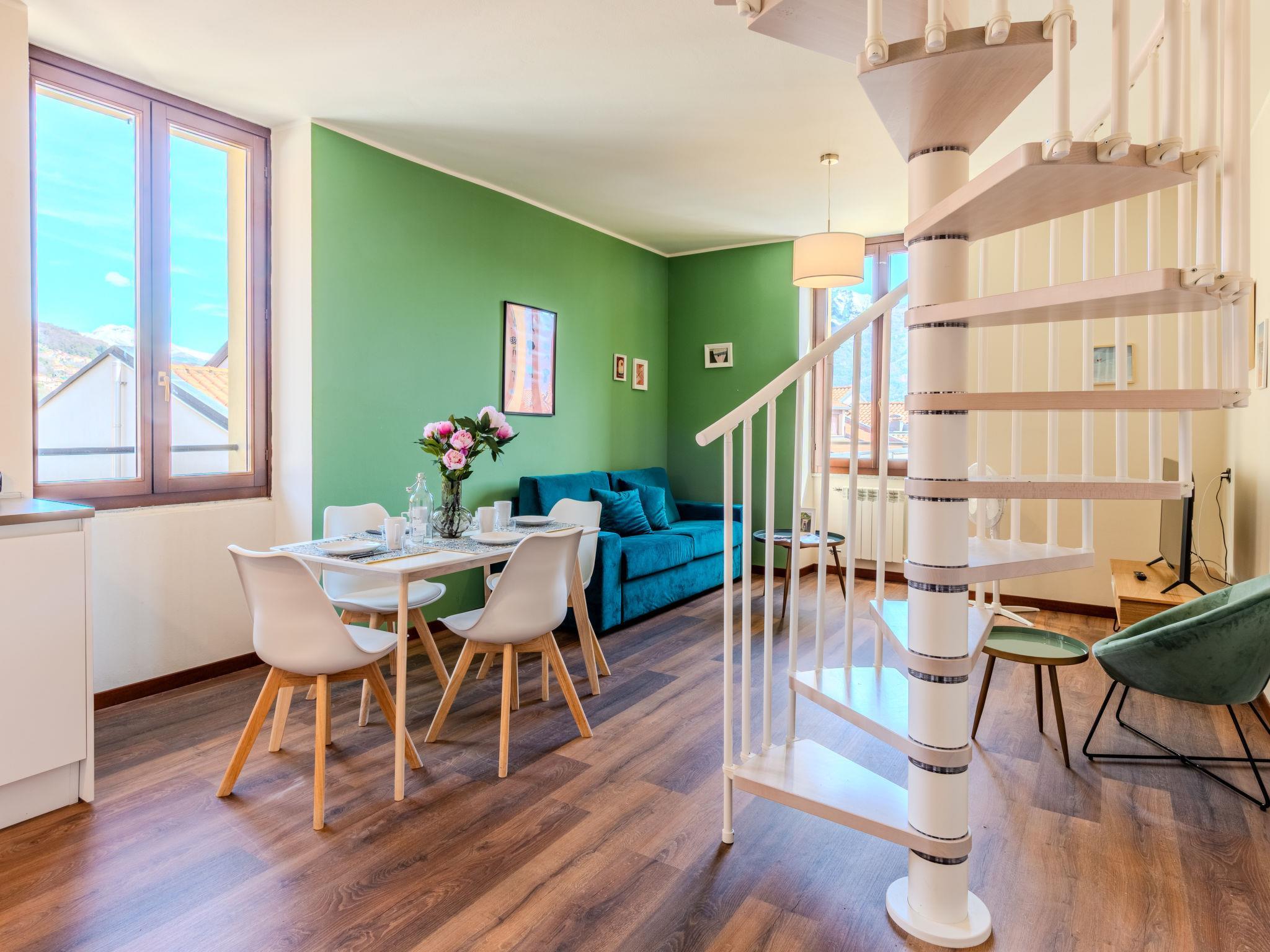 2-Zimmer-Wohnung auf 2 Stockwerken im 3. Stock. Komfortabel und modern eingerichtet: offenes Wohn-/Esszimmer mit Esstisch und TV (Flachbildschirm). Offene Küche (4 Induktionskochplatten, Wasserkocher, Mikrowelle, elektrische Kaffeemaschine, Kapseln für die Kaffeemaschine (Bialetti)). Dusche/WC. Obergeschoss: (Wendeltreppe) offenes Wohn-/Schlafzimmer mit 1 Doppeldiwanbett und 1 Doppelbett. Dusche/Bidet/WC. G-Heizung. Heizung nur verfügbar von 15.10. bis 30.04. Natursteinboden. Eingeschränkte Sicht auf den See und die Berge. Zur Verfügung: Haartrockner. Internet (Wireless LAN, gratis). Parkplatz (1 Auto). Bitte beachten: Nichtraucher-Unterkunft. Rauchmelder, Feuerlöscher. IT013248B48VBODNUG
