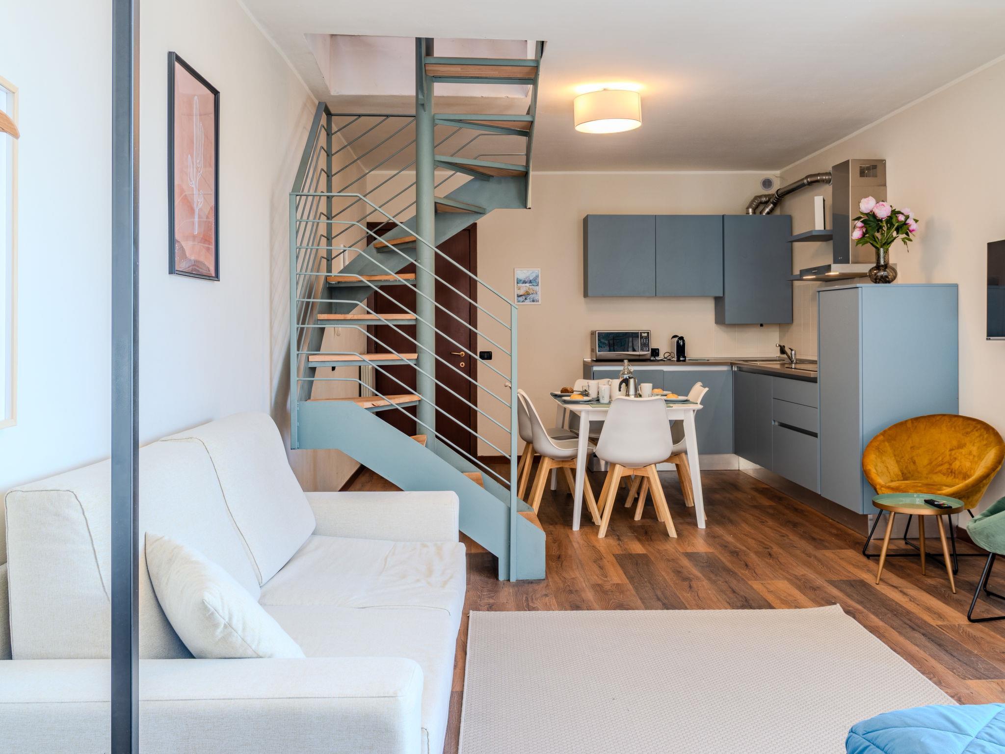 2-Zimmer-Wohnung auf 2 Stockwerken im 3. Stock. Komfortabel und modern eingerichtet: offenes grosses Wohn-/Schlafzimmer mit 1 Doppelbett, Esstisch und TV (Flachbildschirm). Offene Küche (Geschirrspüler, 4 Induktionskochplatten, Wasserkocher, Mikrowelle, elektrische Kaffeemaschine, Kapseln für die Kaffeemaschine (Bialetti)). Dusche/Bidet/WC. Obergeschoss: offenes Wohn-/Schlafzimmer mit 1 Doppeldiwanbett und 1 Doppelbett. Dusche/Bidet/WC. G-Heizung. Heizung nur verfügbar von 15.10. bis 30.04. Natursteinboden. Zur Verfügung: Haartrockner. Internet (Wireless LAN, gratis). Parkplatz (1 Auto). Bitte beachten: Wohnung auf Strassenseite. Nichtraucher-Unterkunft. Rauchmelder, Feuerlöscher. IT013248B4I3RKC23C