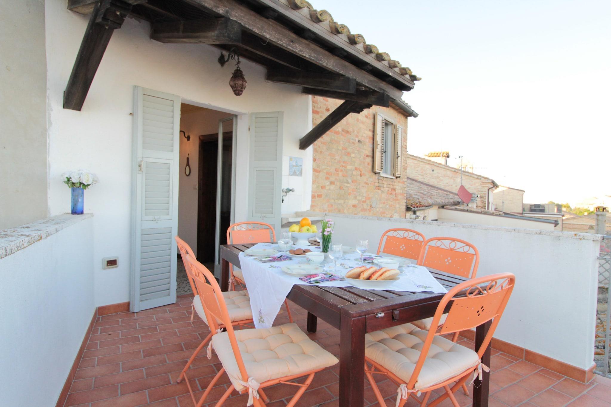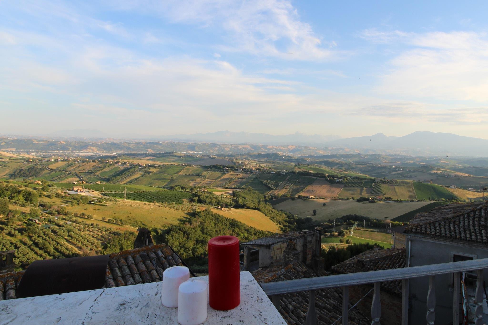 Von der Terrasse dieses alten Ferienhauses im charmanten Dorf Acquaviva Apicena, 350 Meter über dem Meeresspiegel, können Sie ein herrliches Panorama bewundern: auf der einen Seite das Meer und auf der anderen die Abruzzen. Das Haus erstreckt sich über 3 Etagen, die wiederum auf verschiedenen Ebenen liegen, also ideal für eine große Familie oder eine Gruppe von Freunden. Und es endet auf der großen Terrasse neben dem Wohnzimmer und der Küche, wo Sie unvergessliche Abende verbringen werden. Sie können mittelalterliche Dörfer wie Cupra, Grottamare Alta und wunderschöne Städte wie Ascoli Piceno, Macerata, Pescara und Rom besuchen. Für Naturliebhaber bieten die beiden Nationalparks Gran Sasso und Monti Sibillini Routen, die sowohl zu Fuß als auch mit dem Fahrrad zurückgelegt werden können. Die Innenräume des Hauses sind geschmackvoll eingerichtet und die Schlafzimmer bieten einen ruhigen Schlaf. Für die Bequemlichkeit Ihres Kindes gibt es einen Hochstuhl und ein Campingbett. Auch Ihr Gepäck können Sie im Abstellraum aufbewahren.