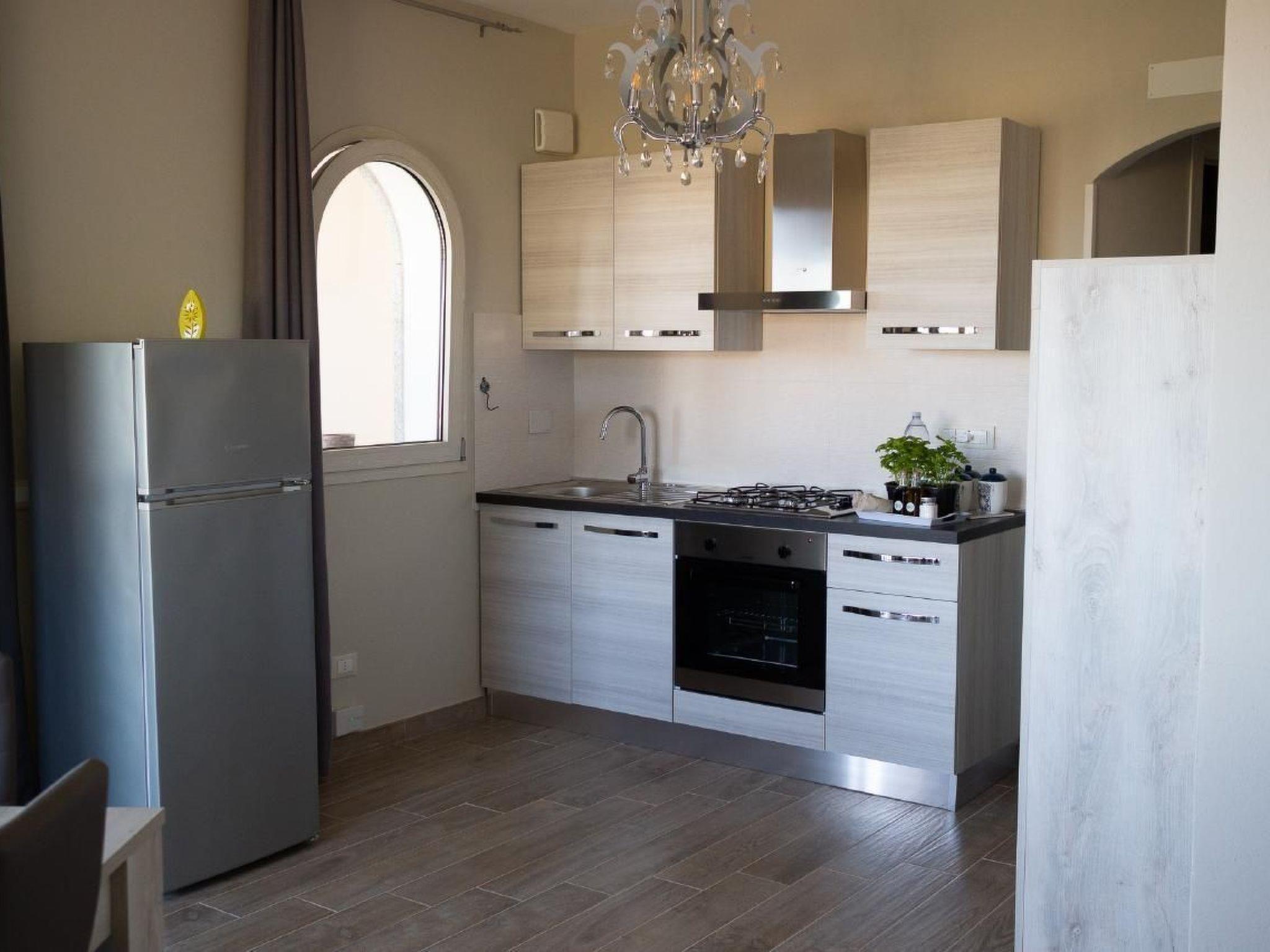 All'Innenraum, das Haus verfügt über einen'architettura e un arredamento di recentissima realizzazione, con una spiccata attenzione per il comfort e lo stile. La zona giorno è composta da una cucina completamente attrezzata con frigo, freezer e forno, che si apre su un accogliente living dotato di divano e TV, immediatamente affiancato da un'Innen-Essbereich, elegant mit modernen Tisch und Stühlen eingerichtet. Der kleine Korridor führt dann zum Schlafbereich, bestehend aus einem Doppelzimmer mit direktem Zugang zum Garten und einem Zweibettzimmer, neben dem Badezimmer mit Dusche. Es sei darauf hingewiesen, dass das Haus mit innovativen Techniken gebaut wurde, die eine'uso dell'Klimaanlage überflüssig machen und eine stets kühle Umgebung garantieren.
