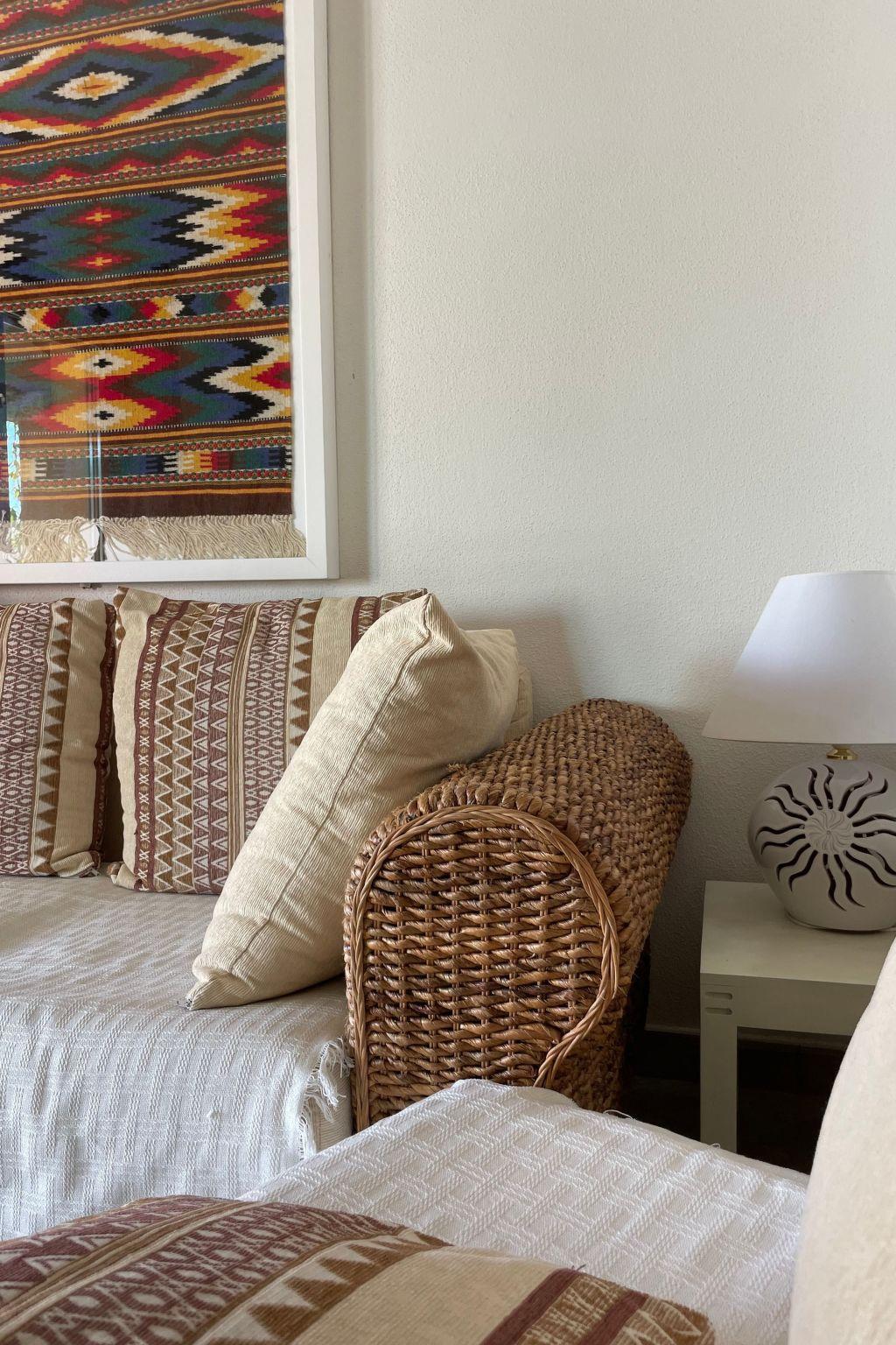 Das Innere des Hauses empfängt Sie mit einem hellen und luftigen Wohnraum, dank der großen Schiebefenster. Der Wohnbereich ist mit einem bequemen Sofa ausgestattet, ideal für entspannende Momente. Die modern ausgestattete Küche mit Kühlschrank, Gefrierschrank und Backofen bietet alles, was Sie für die Zubereitung köstlicher Mahlzeiten während Ihres Aufenthalts benötigen. Die beiden Schlafzimmer, eines mit einem Doppelbett und eines mit zwei Einzelbetten, sowie das Bad mit Dusche vervollständigen das Innenangebot, das auf maximalen Komfort ausgelegt ist.