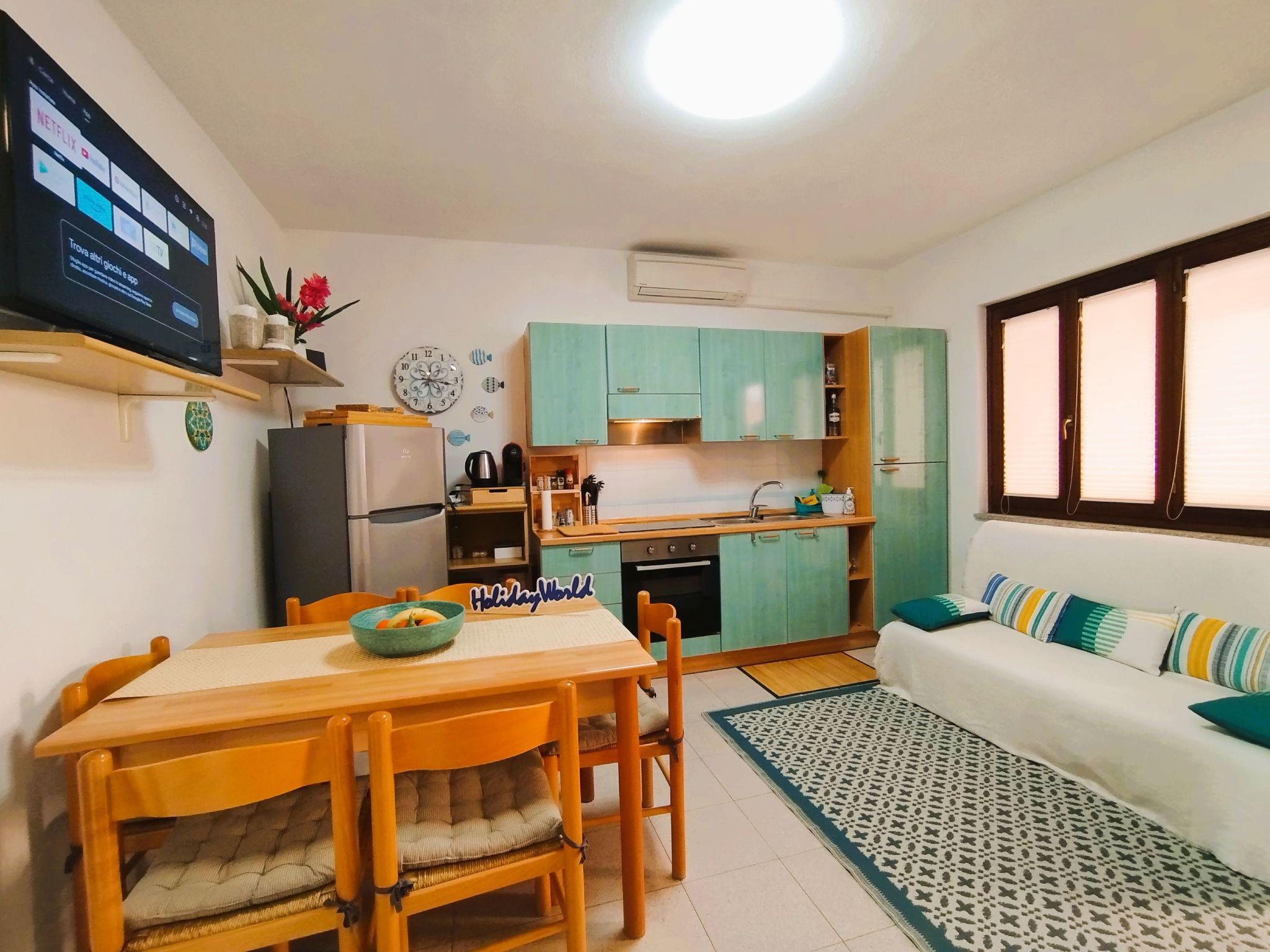 Arianna's House ist eine komfortable und gemütliche Wohnung in Malamuri', Budoni, und ist die ideale Lösung für diejenigen, die einen Urlaub voller Komfort, Ruhe und Bewegungsfreiheit wünschen. Die Wohnung verfügt über ein Schlafzimmer mit Doppelbett und einer privaten Terrasse, die mit einem kleinen Tisch und Stühlen ausgestattet ist, um Momente der Entspannung im Freien zu genießen, sowie über ein weiteres Schlafzimmer mit zwei Einzelbetten. Das Badezimmer ist komplett mit Dusche und Bidet ausgestattet. Die Kochnische, die im Wohnbereich mit einem Sofa ausgestattet ist, bietet alles, was Sie brauchen, um in völliger Unabhängigkeit Mittag- und Abendessen zuzubereiten, während die überdachte Veranda mit einem großen Tisch im Freien perfekt ist, um zu jeder Tageszeit im Freien zu essen. Ausgestattet mit jeglichem Komfort wie Klimaanlage und Wi-Fi und in einer ruhigen Gegend nur wenige Kilometer vom Meer entfernt gelegen, ist das Haus von Arianna der perfekte Ausgangspunkt, um die Strände in wenigen Minuten mit dem Auto zu erreichen und das Gebiet von Budoni in aller Ruhe zu entdecken.