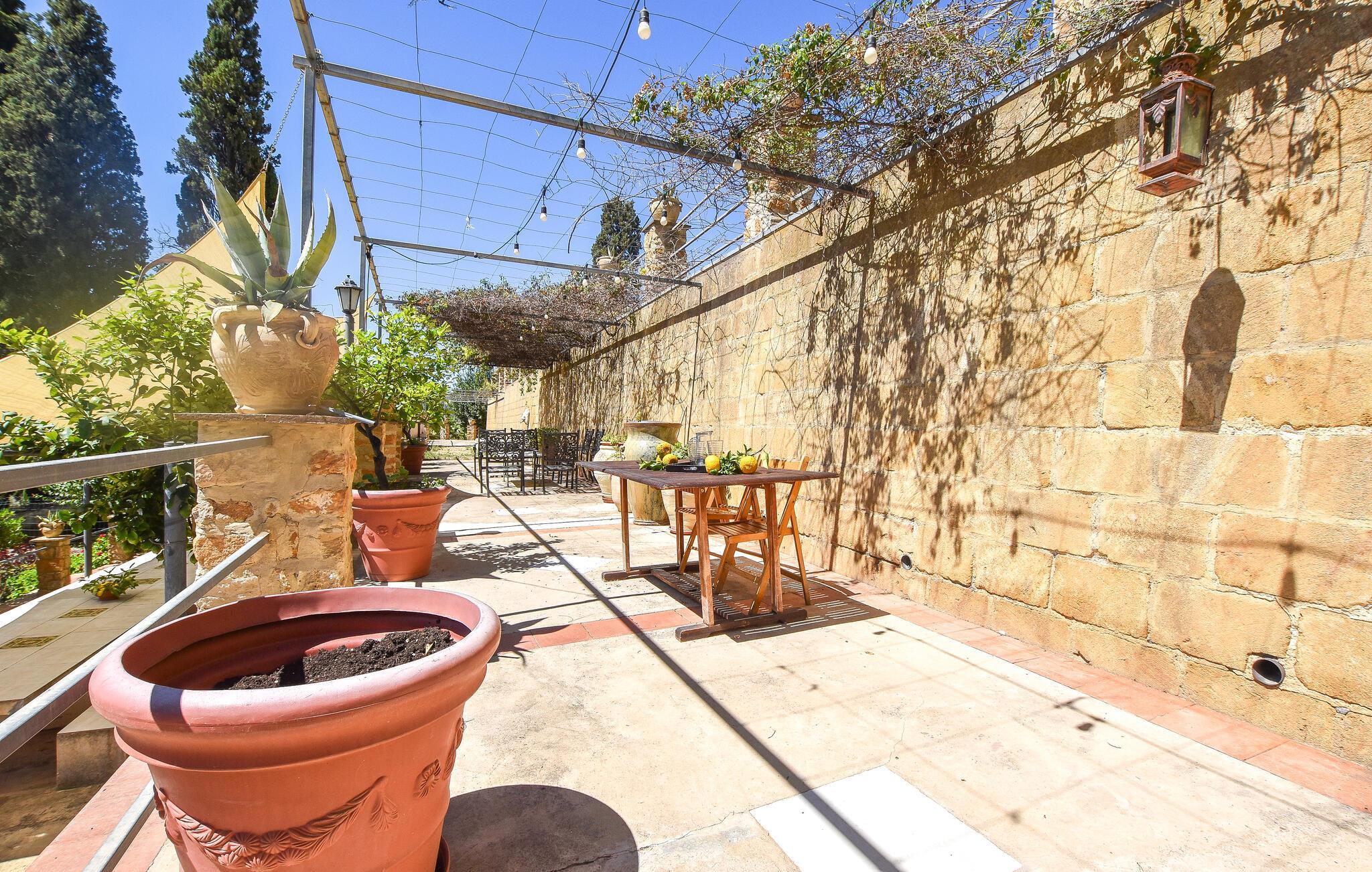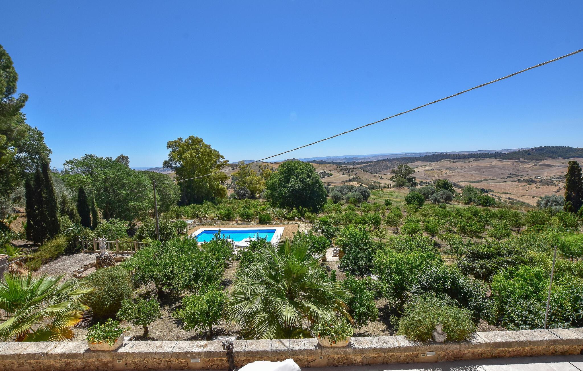 Tauchen Sie ein in die Schönheit und Gelassenheit dieser Region und freuen Sie sich auf unvergessliche Momente in Aidone. Hier erleben Sie das authentische Sizilien. Das geräumige Ferienhaus beeindruckt durch seinen großen Außenbereich mit einem einladenden Pool, der von üppigen Gärten und malerischen Terrassen umgeben ist. Genießen Sie sonnige Tage am Pool und entspannen Sie in den komfortablen Lounge-Bereichen, die zum Verweilen im Freien einladen. Nehmen Sie Ihre Mahlzeiten unter dem Schatten der Terrassen ein.