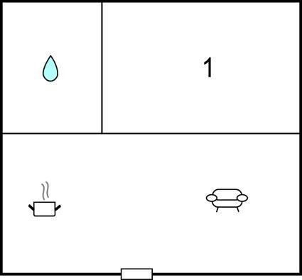 Badezimmer 5m2 (nr. 1) - WC. Warmes und kaltes Wasser. Dusche