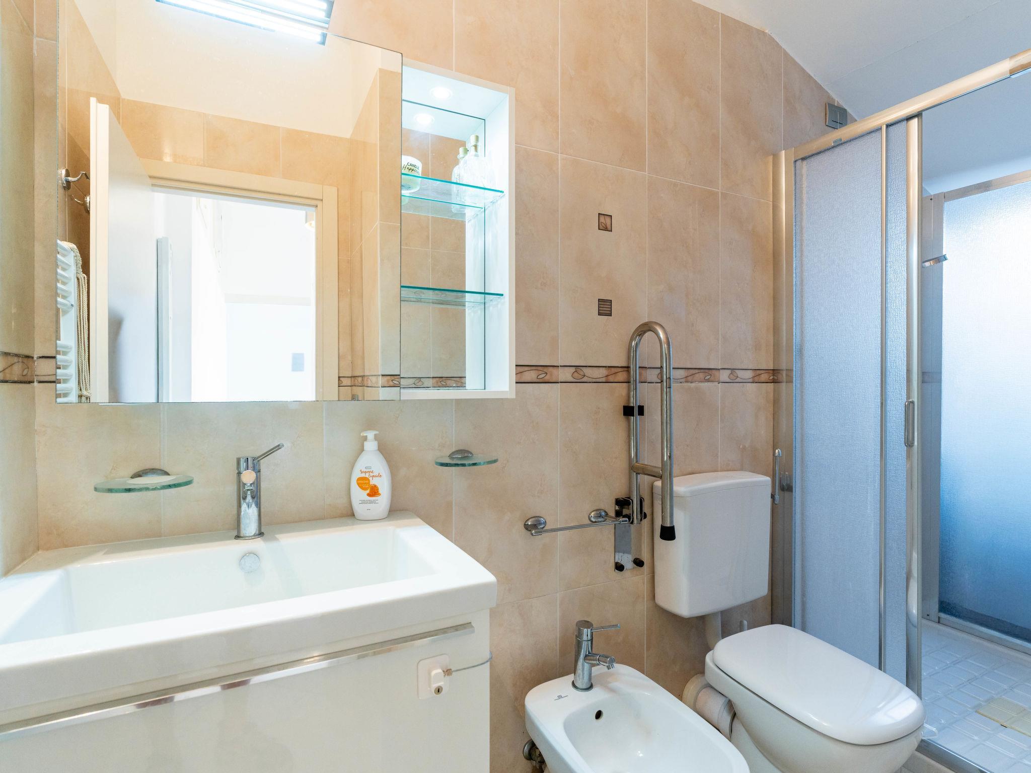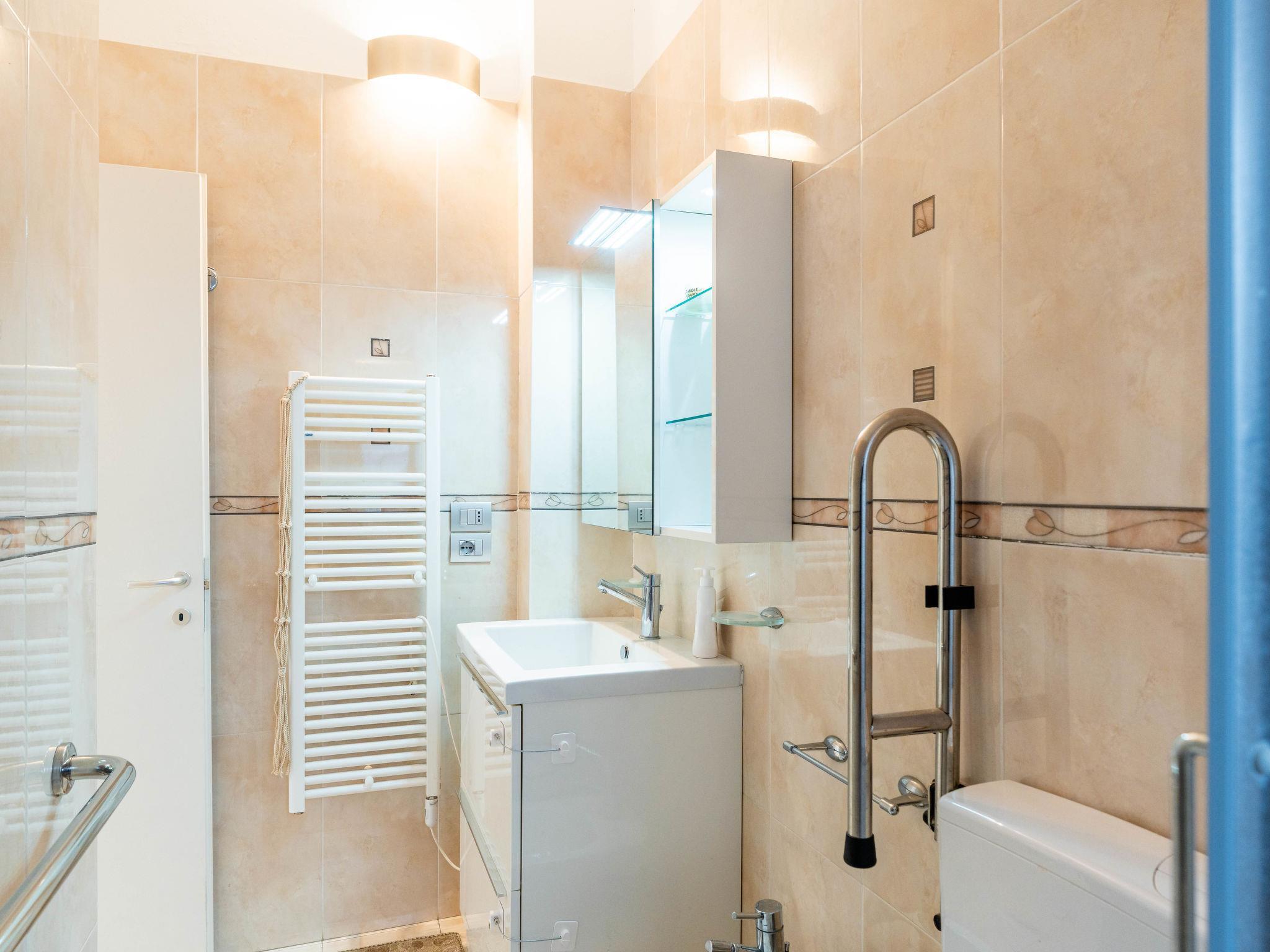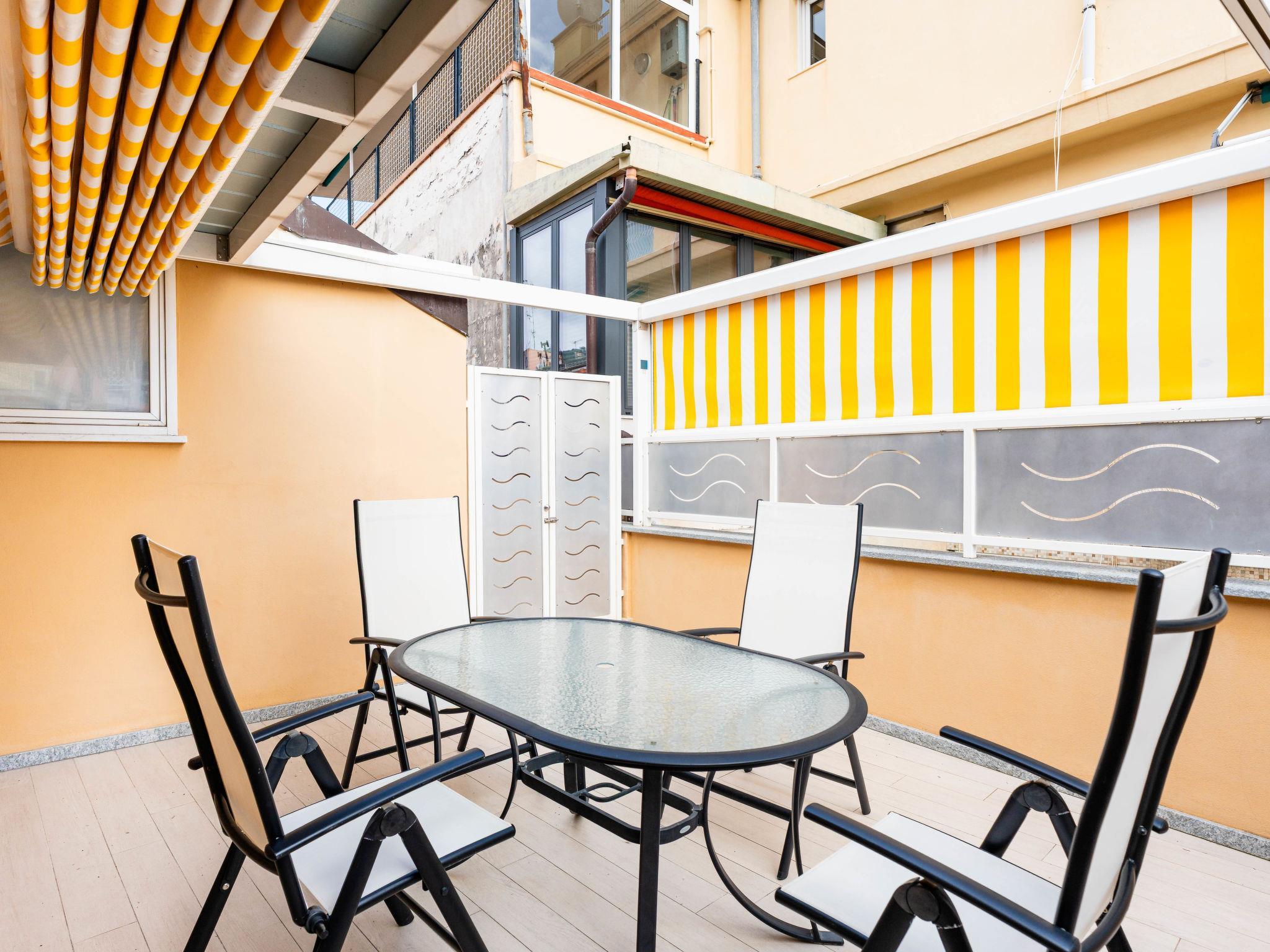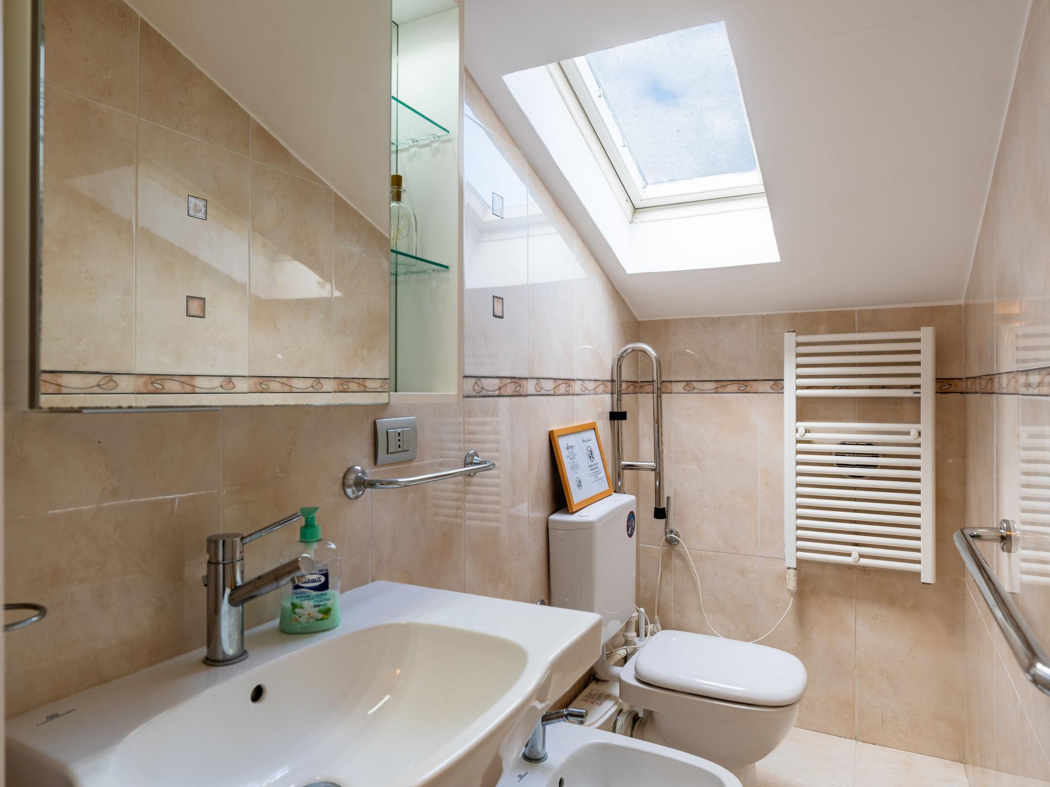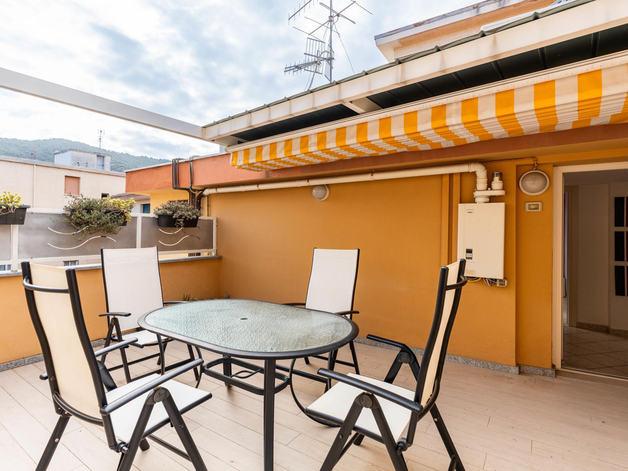 "By Center and Sea", 3-Zimmer-Dachterrassenwohnung 80 m2 im 3. Stock. Abgeschrägt, komfortabel und geschmackvoll eingerichtet: Wohn-/Esszimmer (120 cm, Länge 200 cm). 1 Doppelzimmer mit Dachfenster. 1 Doppelzimmer mit Dachfenster. Kochnische (Backofen, 4 Flammen, Toaster, Wasserkocher, Mikrowelle, elektrische Kaffeemaschine). Bad/Bidet/WC, Dusche/Bidet/WC. Klimaanlage, Warmluftheizung. Heizung nur verfügbar von 01.11. bis 15.04. Grosse Terrasse. Terrassenmöbel. Sicht auf die Ortschaft. Zur Verfügung: Waschmaschine, Bügeleisen, Kinderhochstuhl, Babybett bis 2 Jahre, Haartrockner. Internet (WLAN, gratis). Garage (extra). Bitte beachten: Nichtraucher-Haus. Rauchmelder, Feuerlöscher. IT009001B43A3O4WMG
