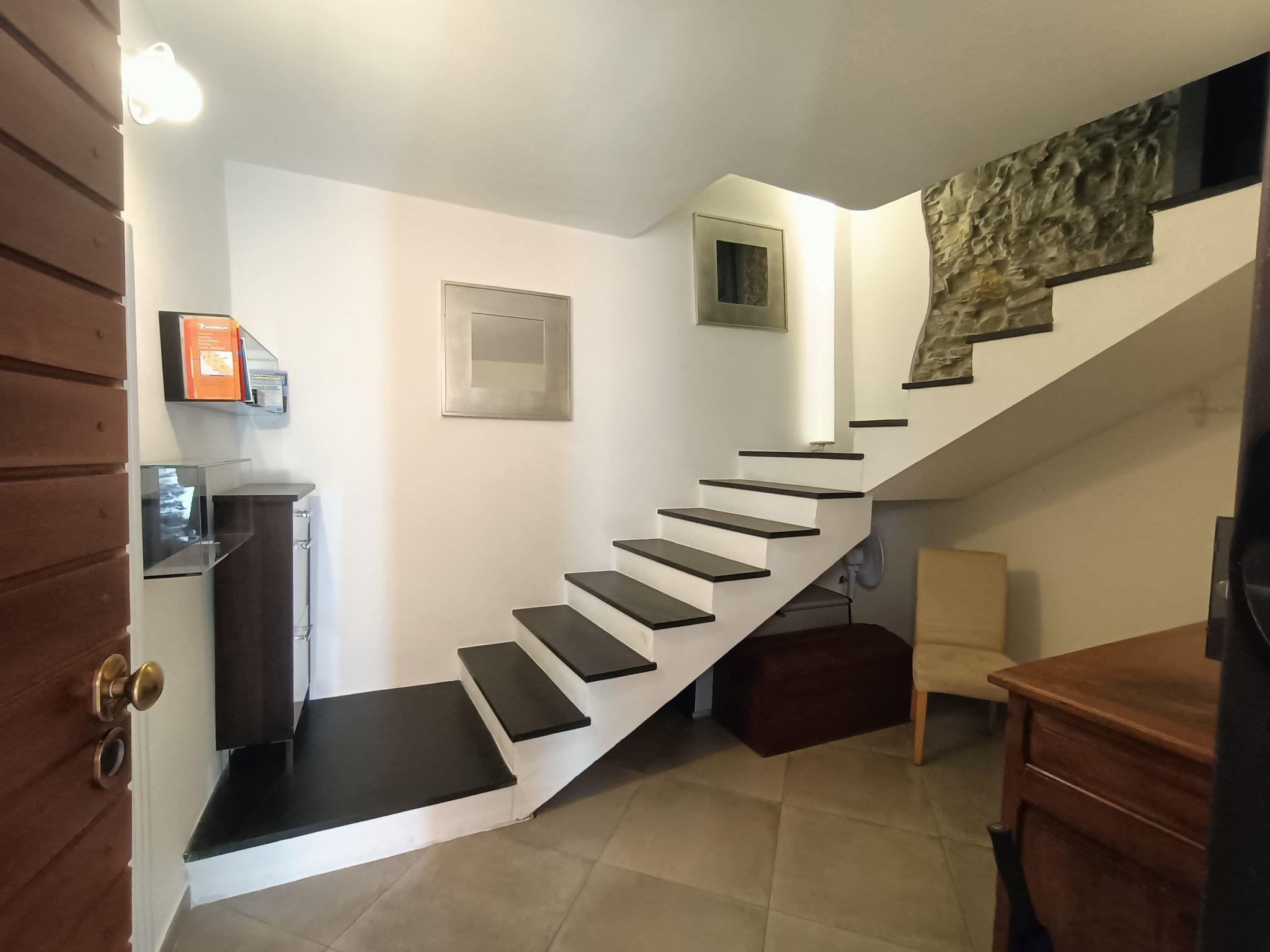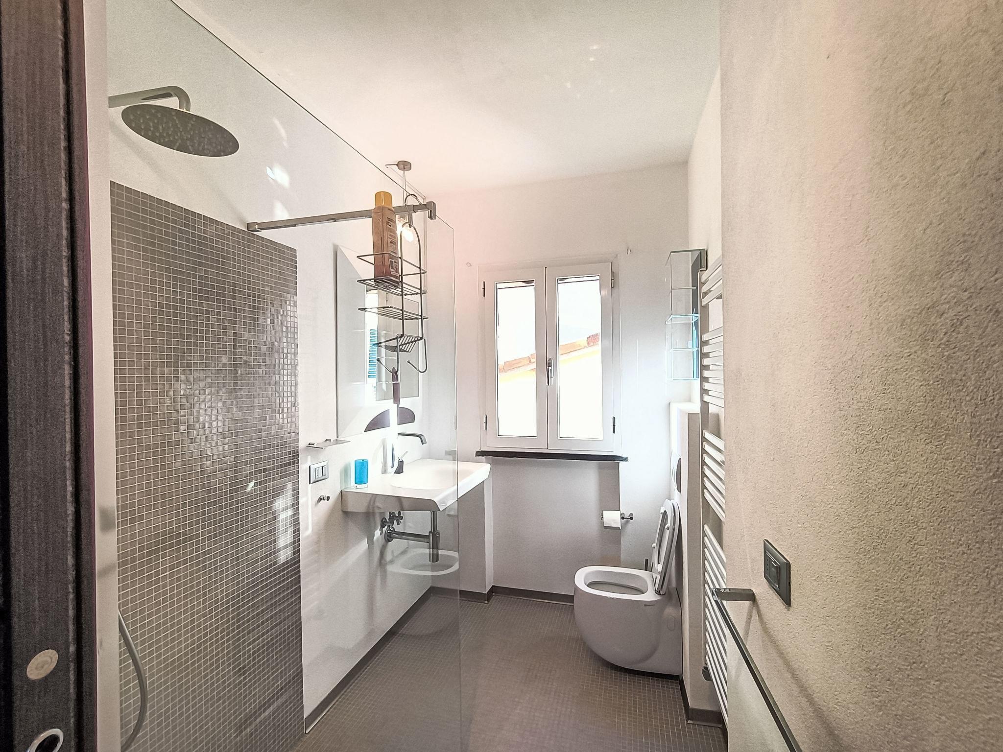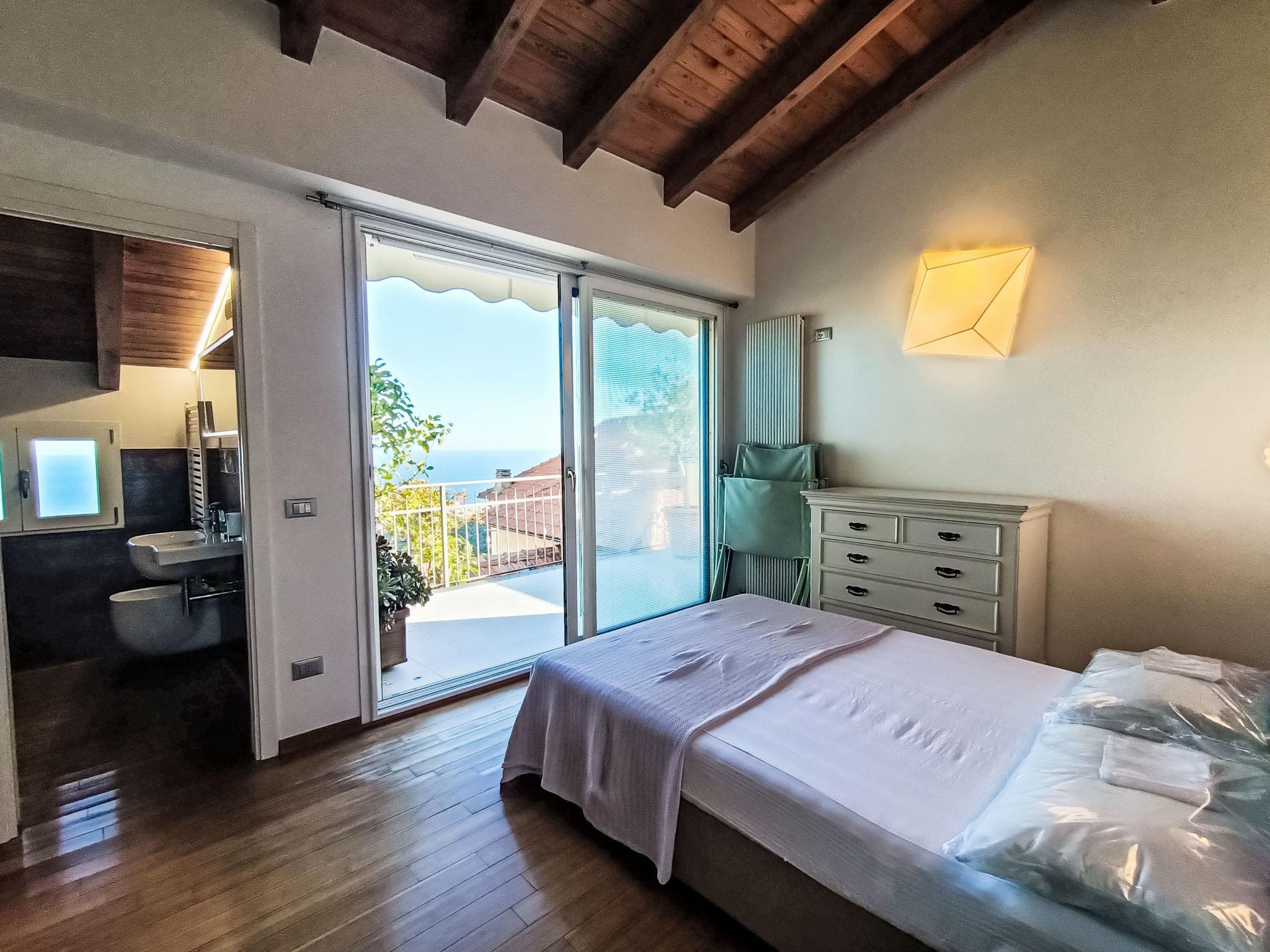 "Terrazza con glicine", 5-Zimmer-Reihenhaus 143 m2 auf 3 Stockwerken, im Erdgeschoss. Hell, modern und gemütlich eingerichtet: Eingang. 1 Zimmer mit 1 Doppeldiwanbett, Esstisch, Küchenblock und Dusche/WC. Obergeschoss: (geländerlose Treppe) Wohn-/Esszimmer mit Klimaanlage. 1 Zimmer mit 1 Bett (180 cm, Länge 90 cm), 1 Ausziehbett. Offene Küche (Gasherd, 5 Flammen, Toaster, Wasserkocher, Tiefkühler, elektrische Kaffeemaschine). Ausgang zur Terrasse. Dusche/WC. 2. Obergeschoss: 1 abgeschrägtes Doppelzimmer mit 1 franz. Bett und Klimaanlage. 1 abgeschrägtes Doppelzimmer mit Panoramafenster mit 1 franz. Bett, Waschbecken und Dusche/WC. Ausgang zur Terrasse. 2 Terrassen 10 m2. Terrassenmöbel. Panoramasicht auf das Meer, die Berge und die Stadt. Zur Verfügung: Waschmaschine, Wäschetrockner, Haartrockner. Internet (WLAN, gratis). Garage in 50 m. Bitte beachten: ein Doppelzimmer liegt außerhalb der Wohnung. Rauchmelder, Feuerlöscher, kein Fahrstuhl. Keine interne Verbindung zwischen den separaten Wohneinheiten. IT009001C2NBR5TUHX