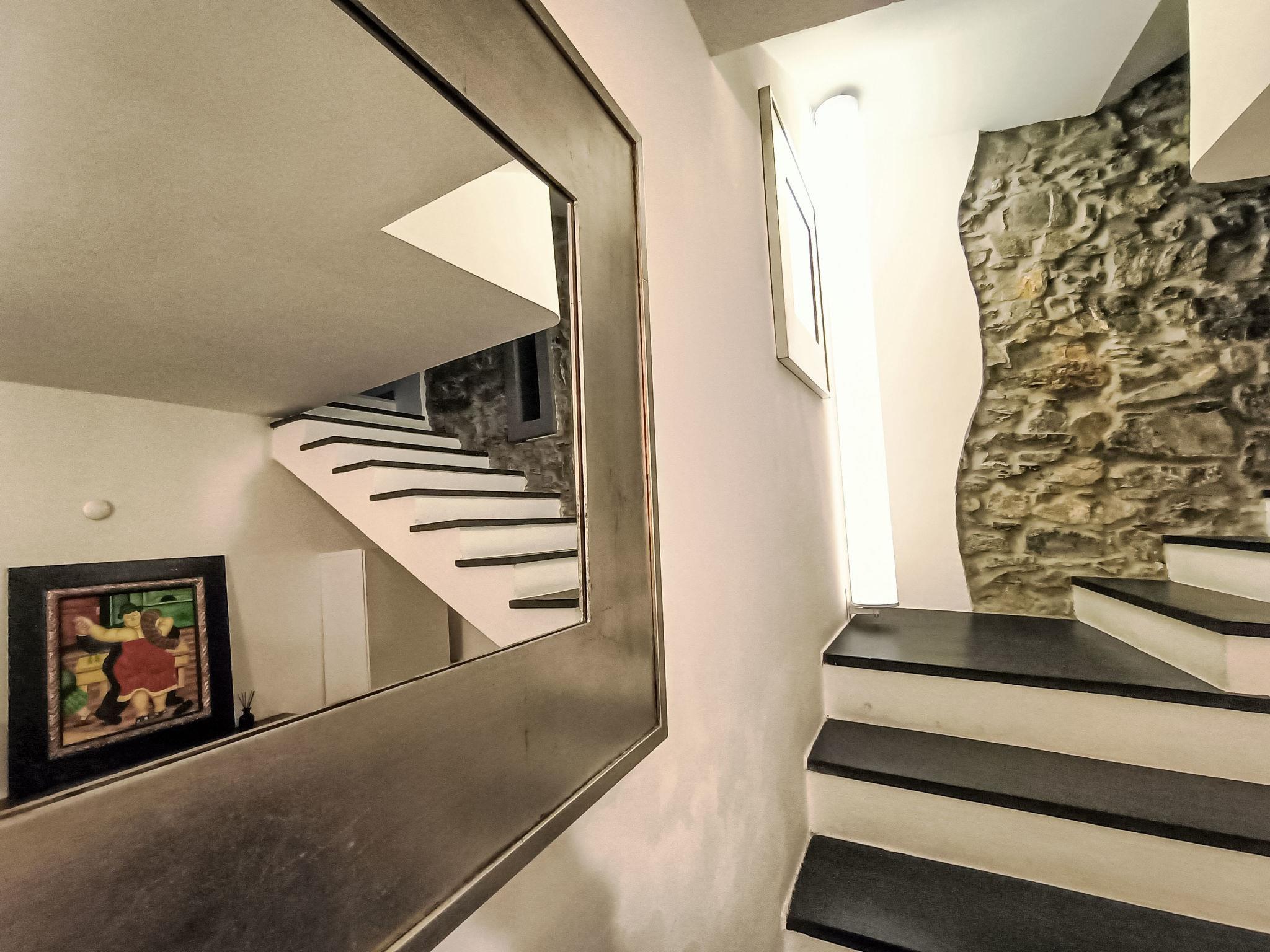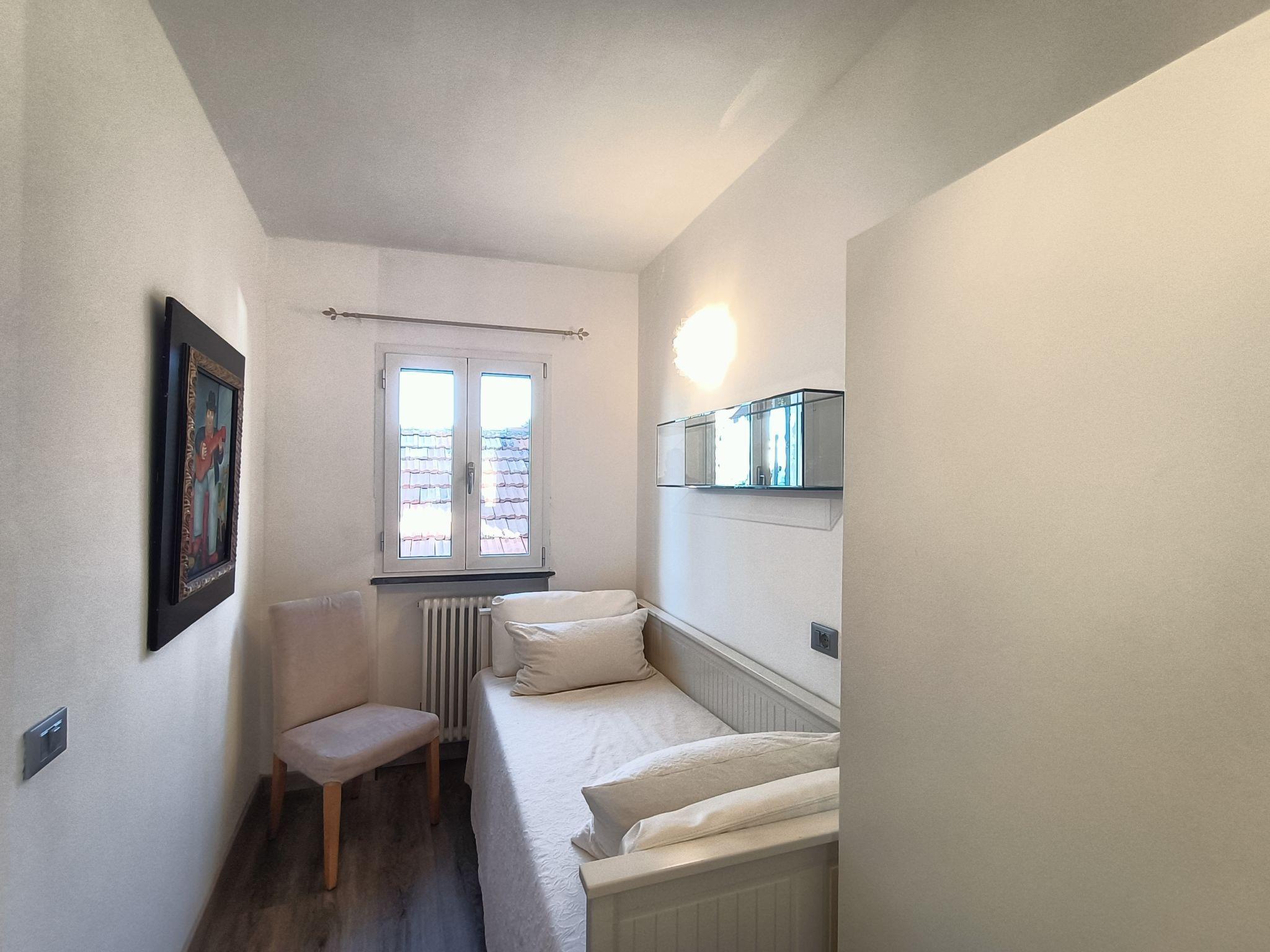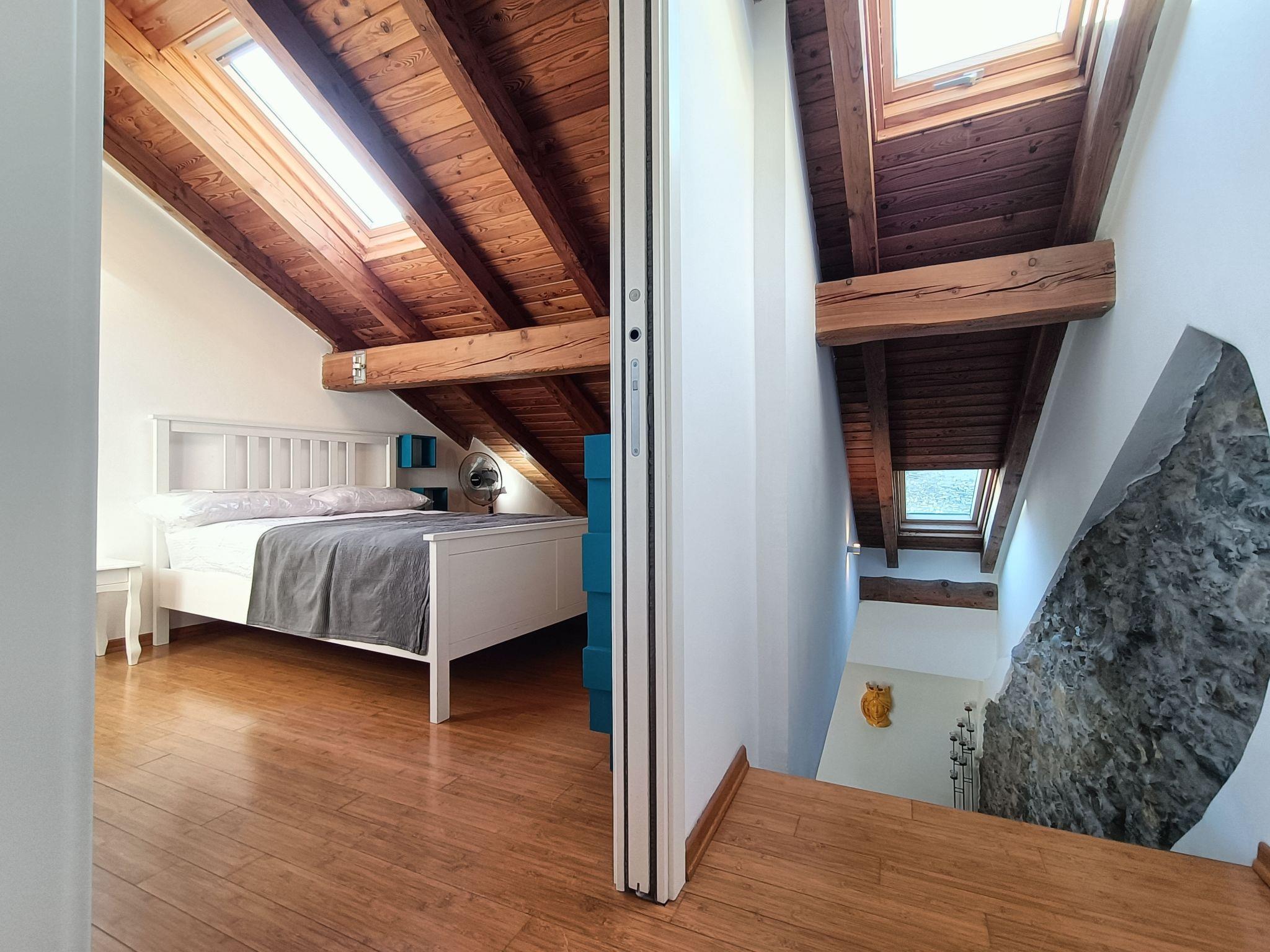 "Terrazza con glicine", 5-Zimmer-Reihenhaus 143 m2 auf 3 Stockwerken, im Erdgeschoss. Hell, modern und gemütlich eingerichtet: Eingang. 1 Zimmer mit 1 Doppeldiwanbett, Esstisch, Küchenblock und Dusche/WC. Obergeschoss: (geländerlose Treppe) Wohn-/Esszimmer mit Klimaanlage. 1 Zimmer mit 1 Bett (180 cm, Länge 90 cm), 1 Ausziehbett. Offene Küche (Gasherd, 5 Flammen, Toaster, Wasserkocher, Tiefkühler, elektrische Kaffeemaschine). Ausgang zur Terrasse. Dusche/WC. 2. Obergeschoss: 1 abgeschrägtes Doppelzimmer mit 1 franz. Bett und Klimaanlage. 1 abgeschrägtes Doppelzimmer mit Panoramafenster mit 1 franz. Bett, Waschbecken und Dusche/WC. Ausgang zur Terrasse. 2 Terrassen 10 m2. Terrassenmöbel. Panoramasicht auf das Meer, die Berge und die Stadt. Zur Verfügung: Waschmaschine, Wäschetrockner, Haartrockner. Internet (WLAN, gratis). Garage in 50 m. Bitte beachten: ein Doppelzimmer liegt außerhalb der Wohnung. Rauchmelder, Feuerlöscher, kein Fahrstuhl. Keine interne Verbindung zwischen den separaten Wohneinheiten. IT009001C2NBR5TUHX
