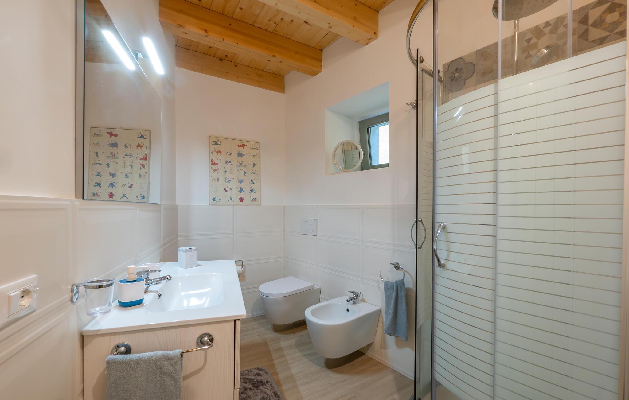 Badezimmer (nr. 2) - WC. Warmes und kaltes Wasser. Dusche