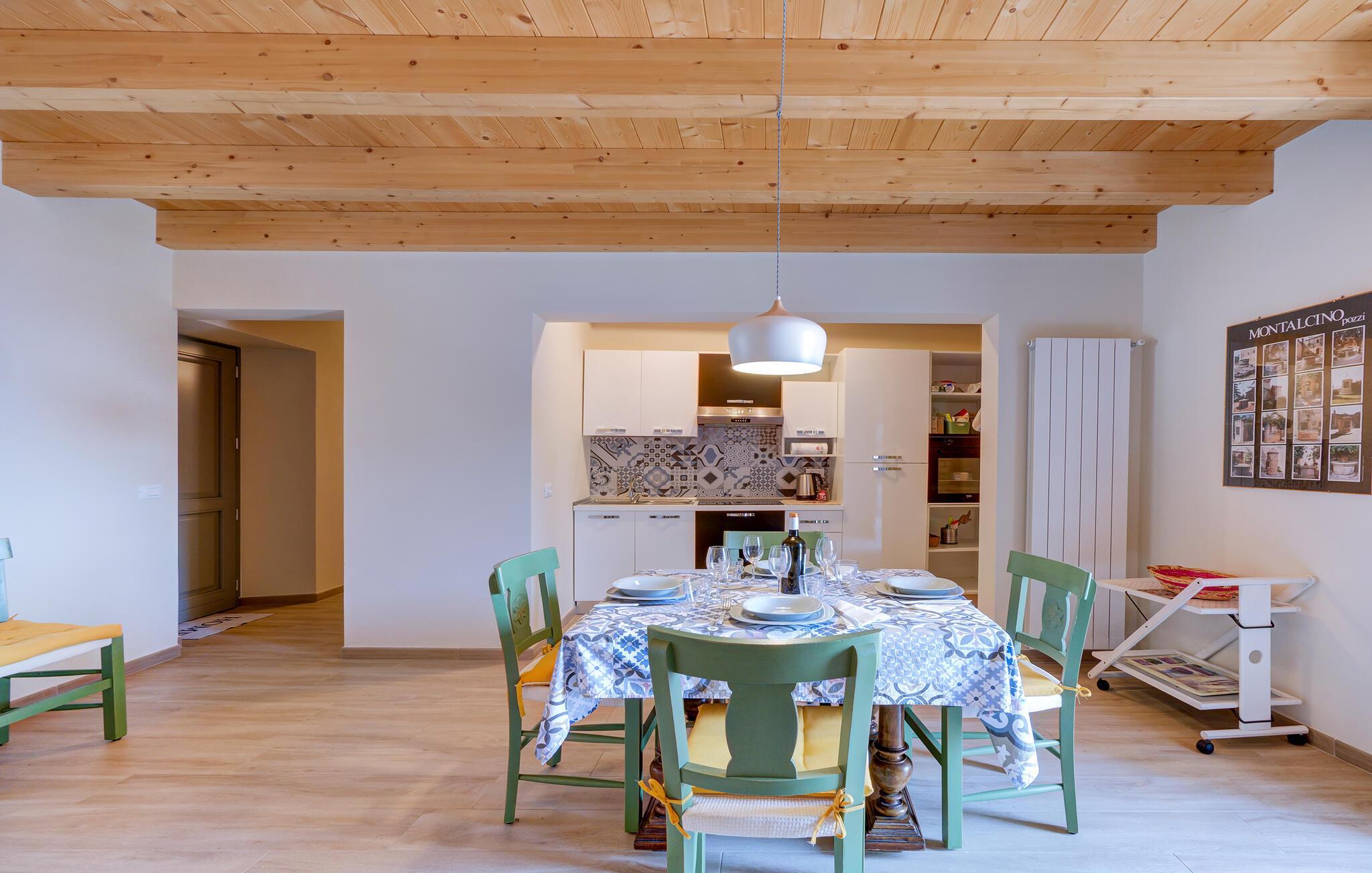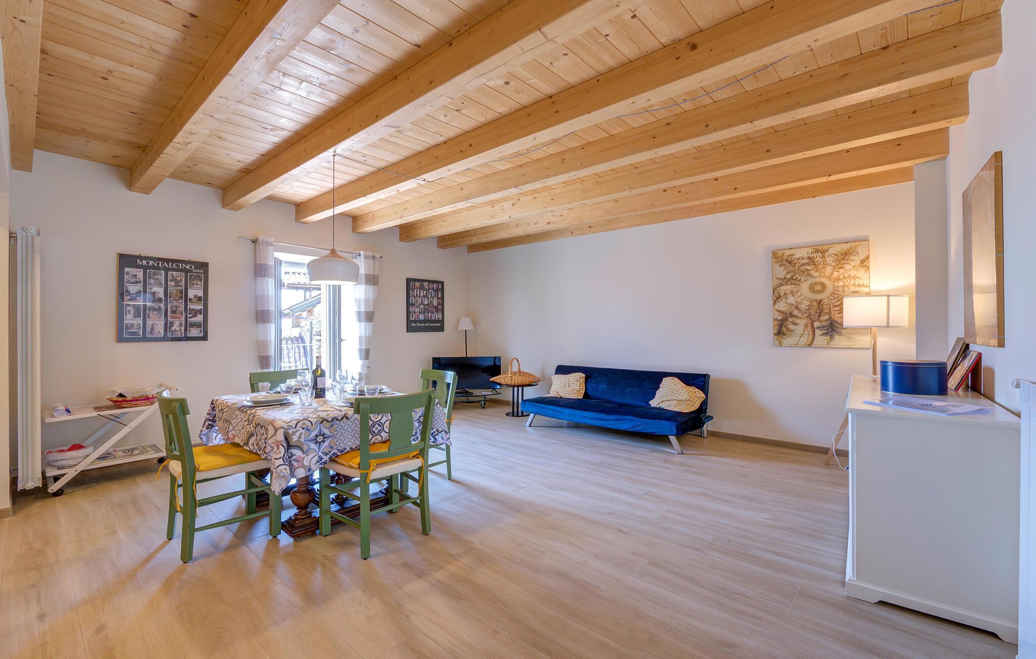 Freuen Sie sich auf Ihren Familienurlaub in dieser schönen und hellen Ferienwohnung mit hohen Holzdecken. Die Unterkunft bietet Ihnen die idealen Bedingungen für einen entspannten Aufenthalt in der schlicht eingerichteten Ferienwohnung. Im Haus befindet sich noch eine weitere Ferienwohnung, sodass Sie gemeinsam mit Ihrer Großfamilie oder einer befreundeten Familie verreisen können.