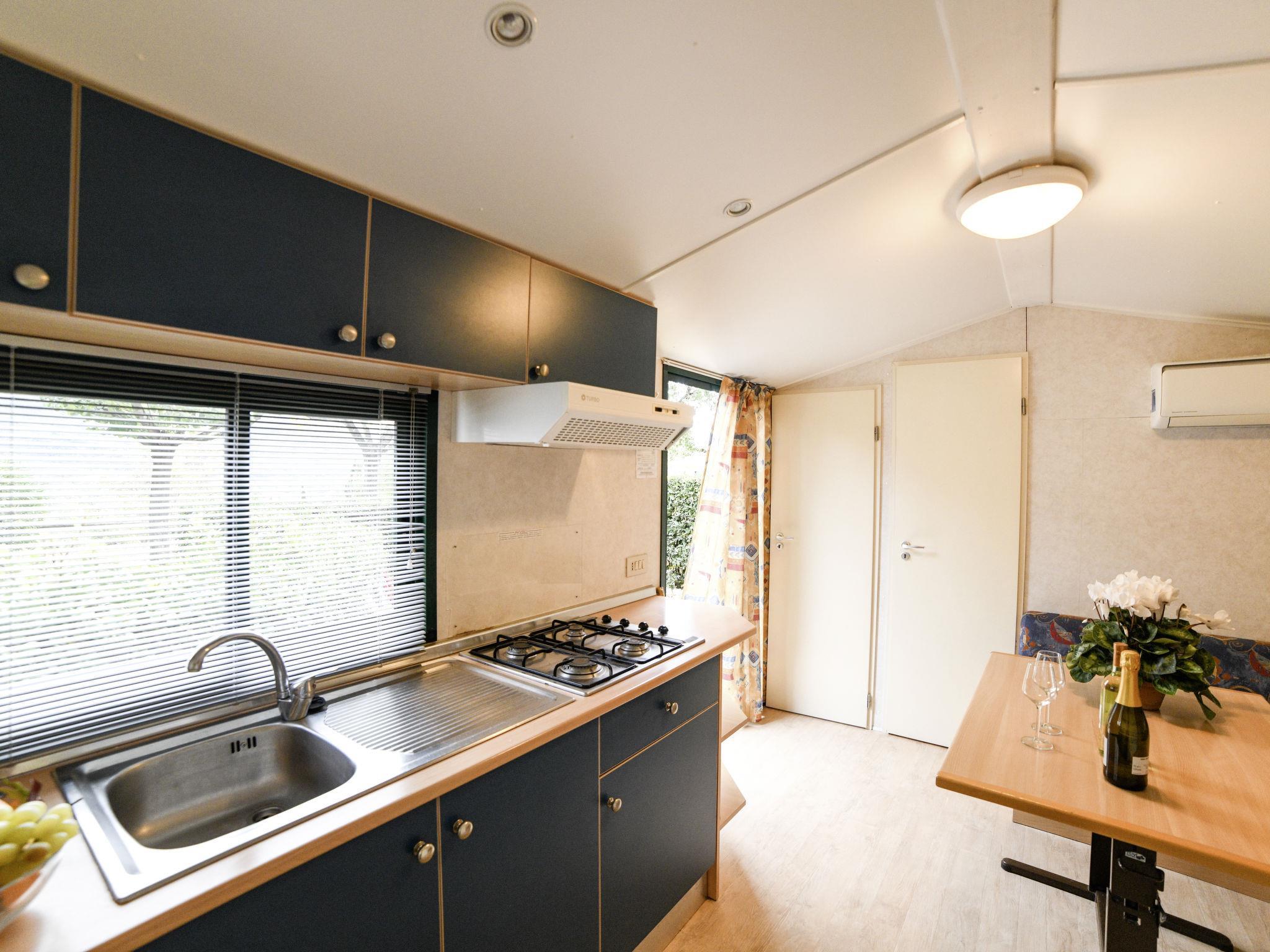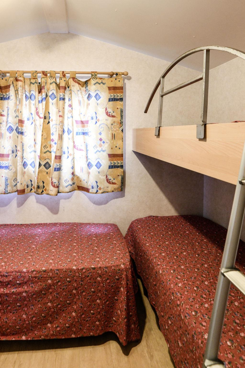 "Mobilhome B (AEG402)", 3-Zimmer-Mobilheim 30 m2. Einfach eingerichtet: Wohn-/Esszimmer mit Essecke und TV. 1 Zimmer mit 1 franz. Bett (160 cm). 1 Zimmer mit 1 Bett (70 cm), 1 x 2 Etagenbetten (70 cm). Kochnische (4 Flammen, Tiefkühler). Dusche/WC. E-Heizung, Klimaanlage. Gartensitzplatz 12 m2. Terrassenmöbel. Parkplatz (1 Auto). Maximal 1 Haustier/Hund erlaubt. IT009068B2RG888NQD