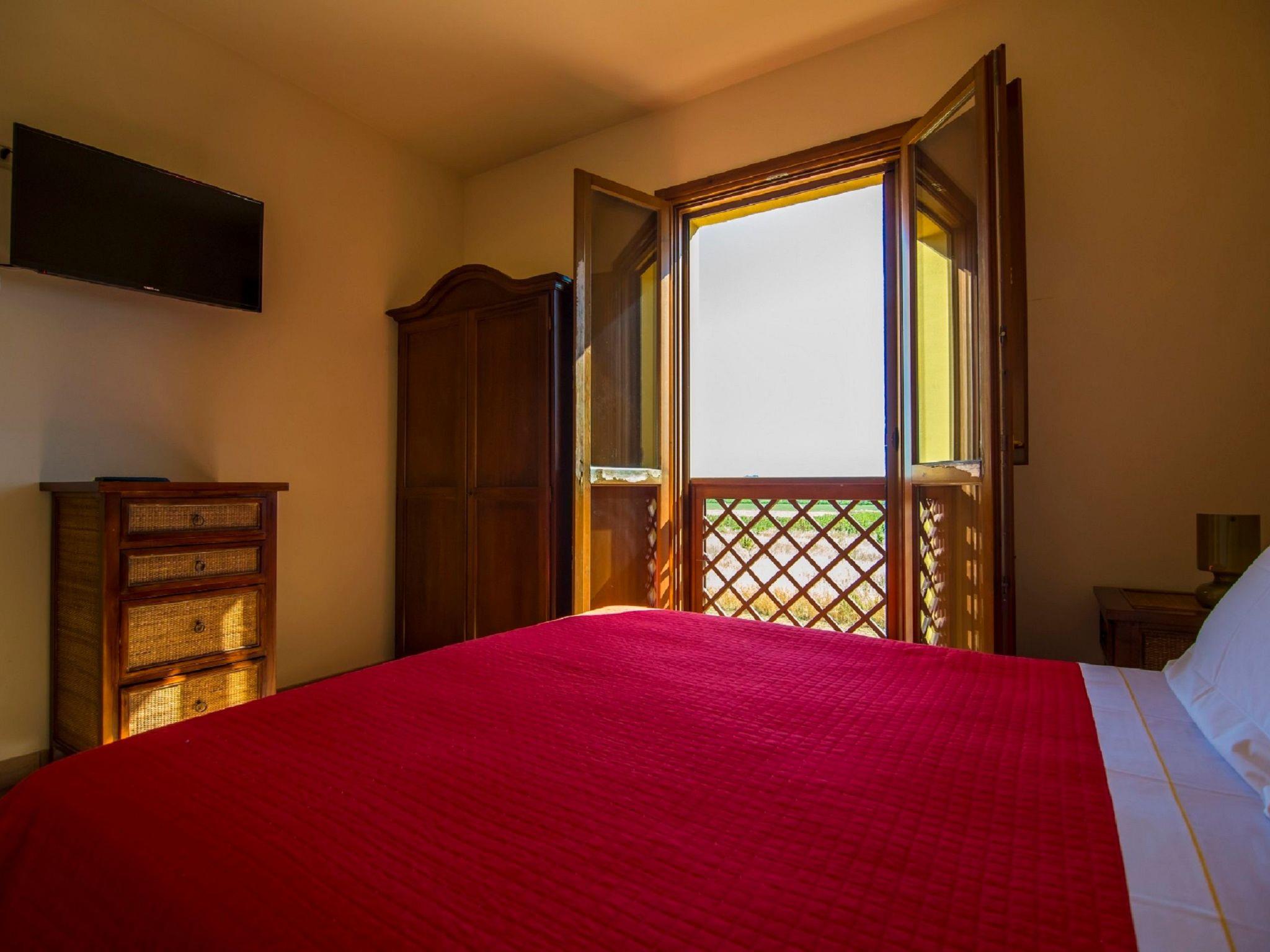 Geräumige Wohnung, ideal für Gruppen von Freunden oder große Familien, bestehend aus drei Schlafzimmern, zwei Vierbettzimmern und einem Doppelzimmer, zwei davon mit Balkon, alle mit eigenem Bad mit Dusche und Haartrockner, großes Wohn-Esszimmer mit Doppelschlafcouch, voll ausgestattete Küche mit Kühl-Gefrierkombination, 40 m² überdachte und beleuchtete Panoramaterrasse mit Tisch für Mahlzeiten im Freien, unabhängige Heizung und Klimaanlage, 4 32"-Fernseher und bequemer Parkplatz.