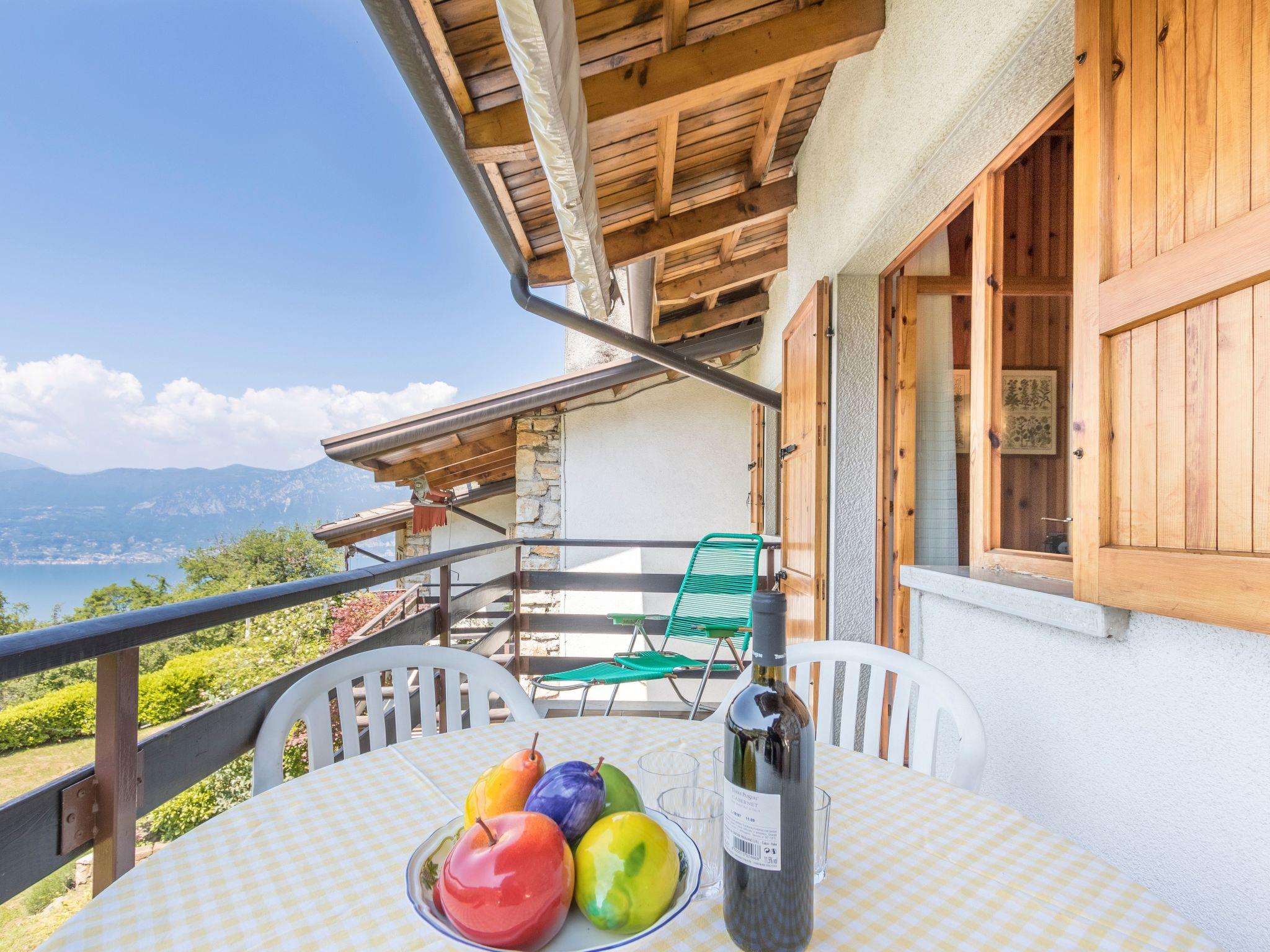Diese Fewo hat eine Balkon mit Blick auf den Gardasee . Ein Parkplatz befindet sich vor dem Anwesen.