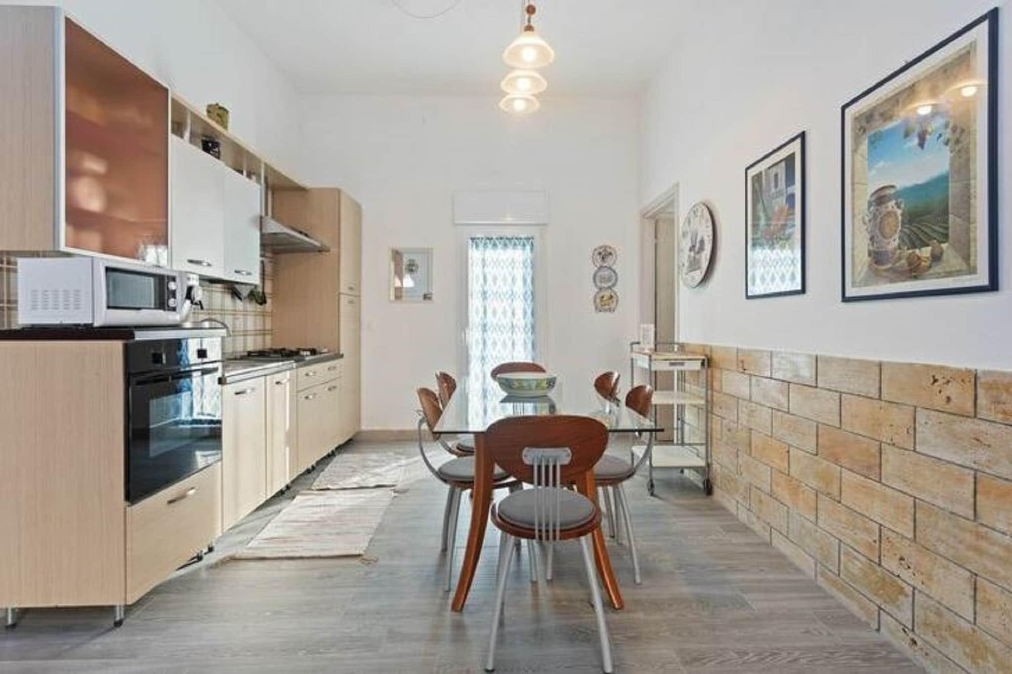 Ein Paradies am Pool und am Meer Willkommen zu Ihrem sonnigen sizilianischen Rückzugsort in Alcamo Marina! Diese private Villa verbindet Strandcharme mit familienfreundlichem Komfort. Nur einen kurzen Spaziergang vom goldenen Strand entfernt bietet das Haus einen erfrischenden Außenpool – ideal für entspannte Nachmittage oder ein erfrischendes Bad nach dem Strandbesuch. Die luftigen Innenräume bieten dank der angenehmen Klimaanlage viel Platz zum Entspannen und bieten viel Platz für gemeinsame Mahlzeiten, ruhige Abende oder einfach zum Entspannen nach einem Tag in der Sonne. Entdecken Sie Siziliens Schätze Die Villa liegt perfekt zwischen Palermo und Trapani und bietet Zugang zu einigen der berühmtesten Sehenswürdigkeiten Siziliens. Entdecken Sie die mittelalterliche Bergstadt Erice, die antiken Ruinen von Segesta oder unternehmen Sie eine Küstenfahrt zum Naturschutzgebiet Zingaro für eine malerische Wanderung. Hundebesitzer werden den nahegelegenen Bau Beach in Balestrate lieben – haustierfreundlich und perfekt für Badespaß mit Ihren vierbeinigen Begleitern. Ob Schnorcheln in Scopello oder ein Spaziergang durch die Altstadt von Alcamo – das Abenteuer ist nie weit. Speisen wie ein Einheimischer Genießen Sie frische Meeresfrüchte und authentische sizilianische Küche im La Battigia oder im Sunshine Ristorante, beide nur wenige Minuten entfernt. Für einen Hauch von Süditalien sollten Sie sich die lokalen Weine im Cantine Florio oder eine Kugel Pistazieneis in der Gelateria Cicciò nicht entgehen lassen. Ob beim Grillen im Garten oder beim Espresso am Strand – diese Villa bringt Sie mitten in die kulinarische Seele Siziliens.