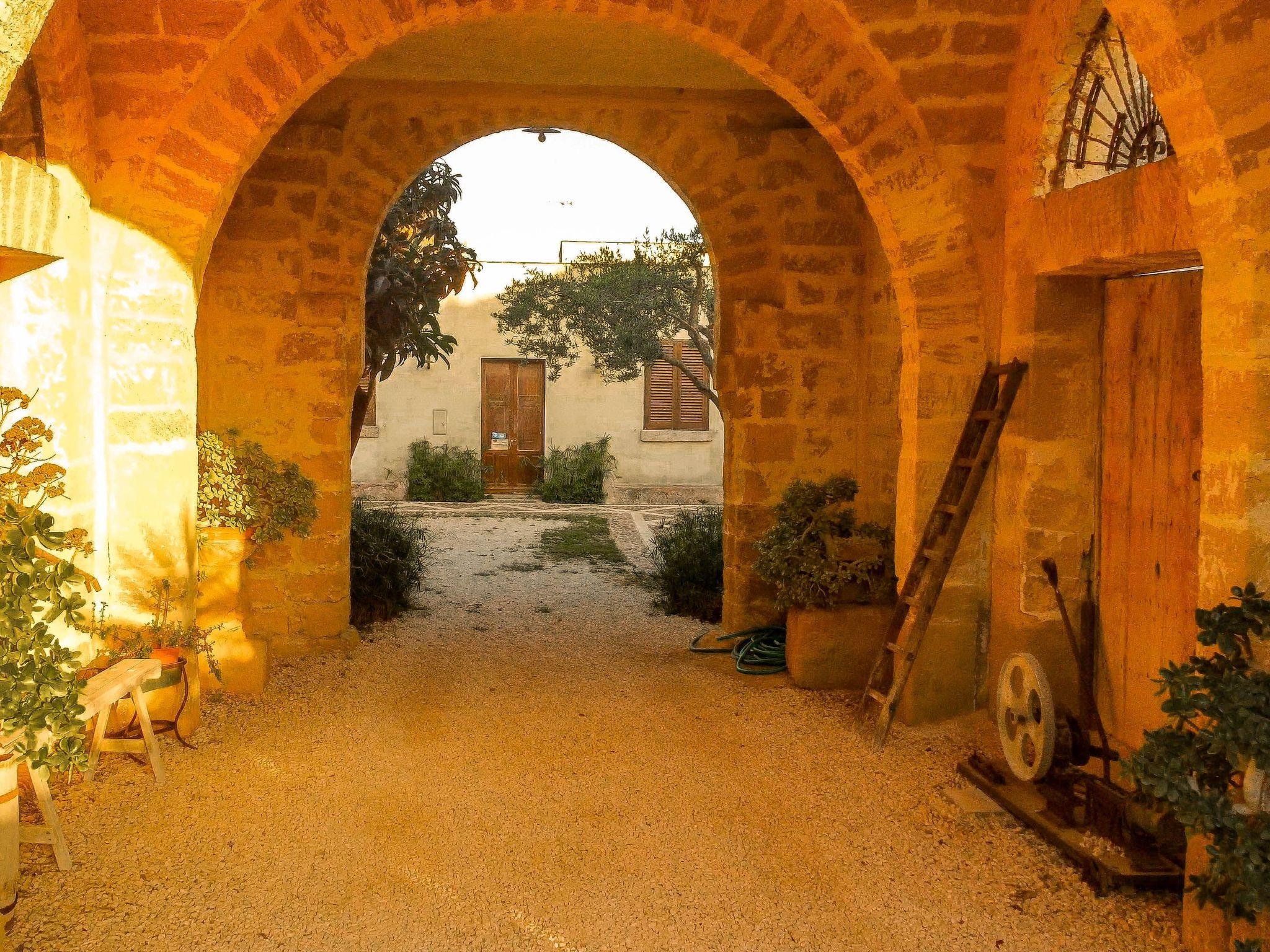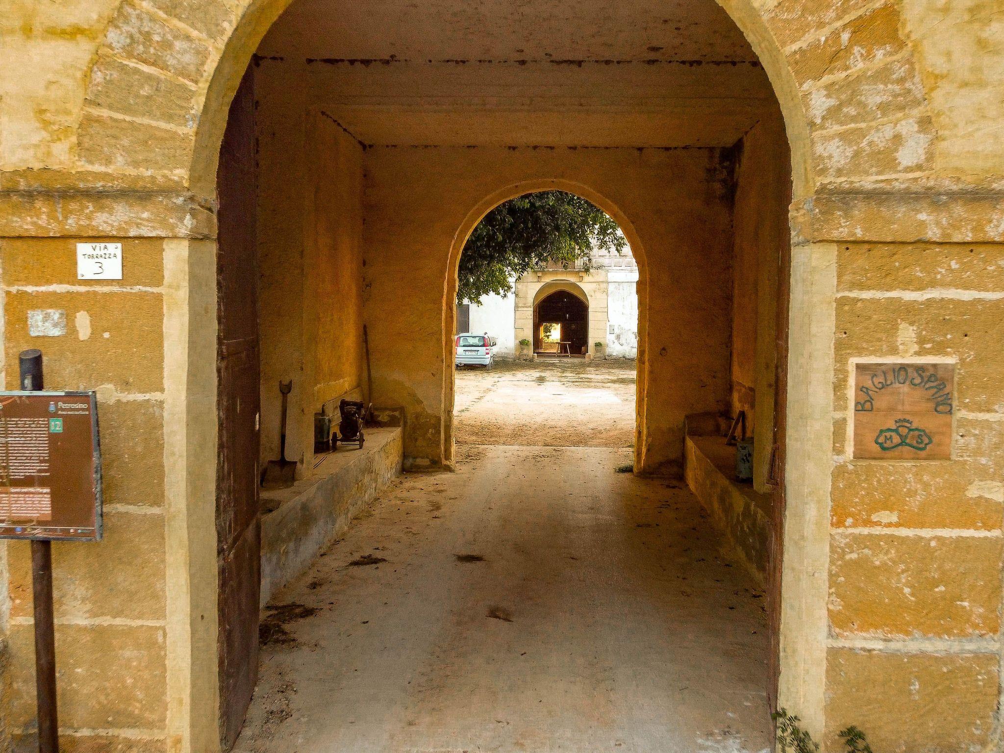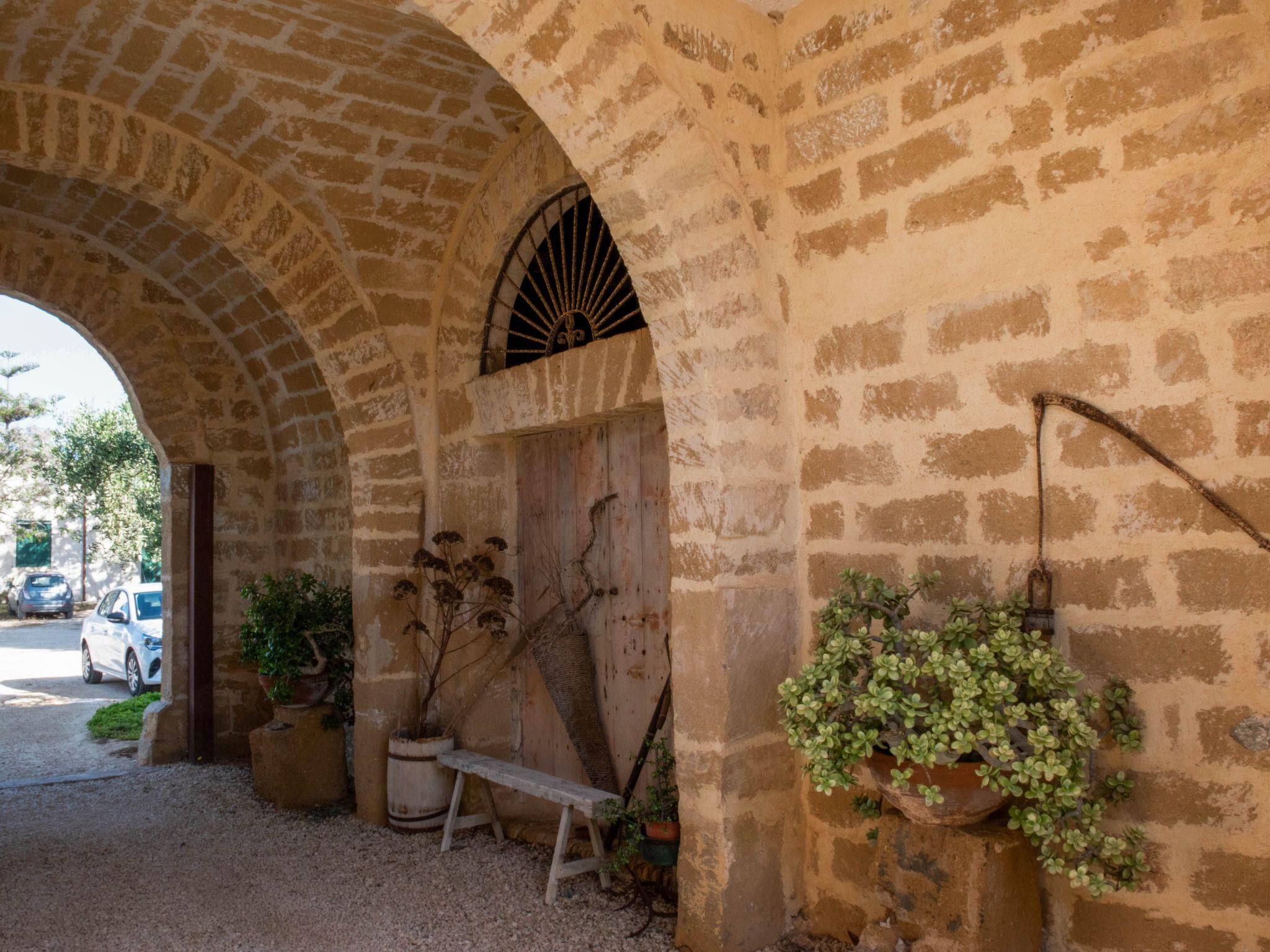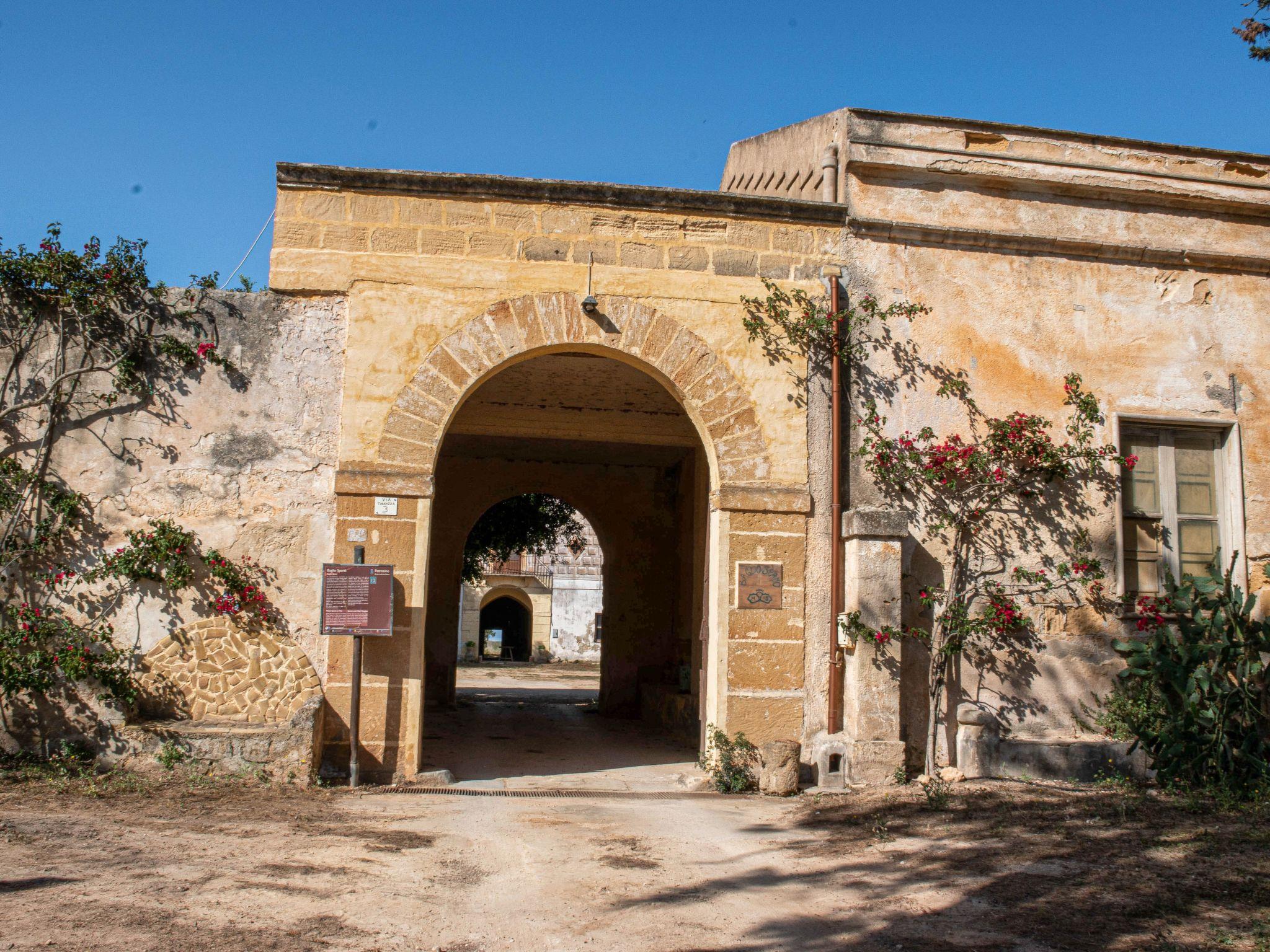Ein landwirtschaftlicher Weg schlängelt sich durch die Weinberge, die die Küste säumen, bis er die imposanten Tuffsteinmauern des Baglio (Bagghiu, in sizilianischem Slang) erreicht, ein befestigtes Bauernhaus mit einem großen Innenhof, der alte Lagerhäuser, das Herrenhaus, Ställe und Keller beherbergt, die jetzt gekonnt restauriert wurden und Teil des Bed & Breakfasts sind