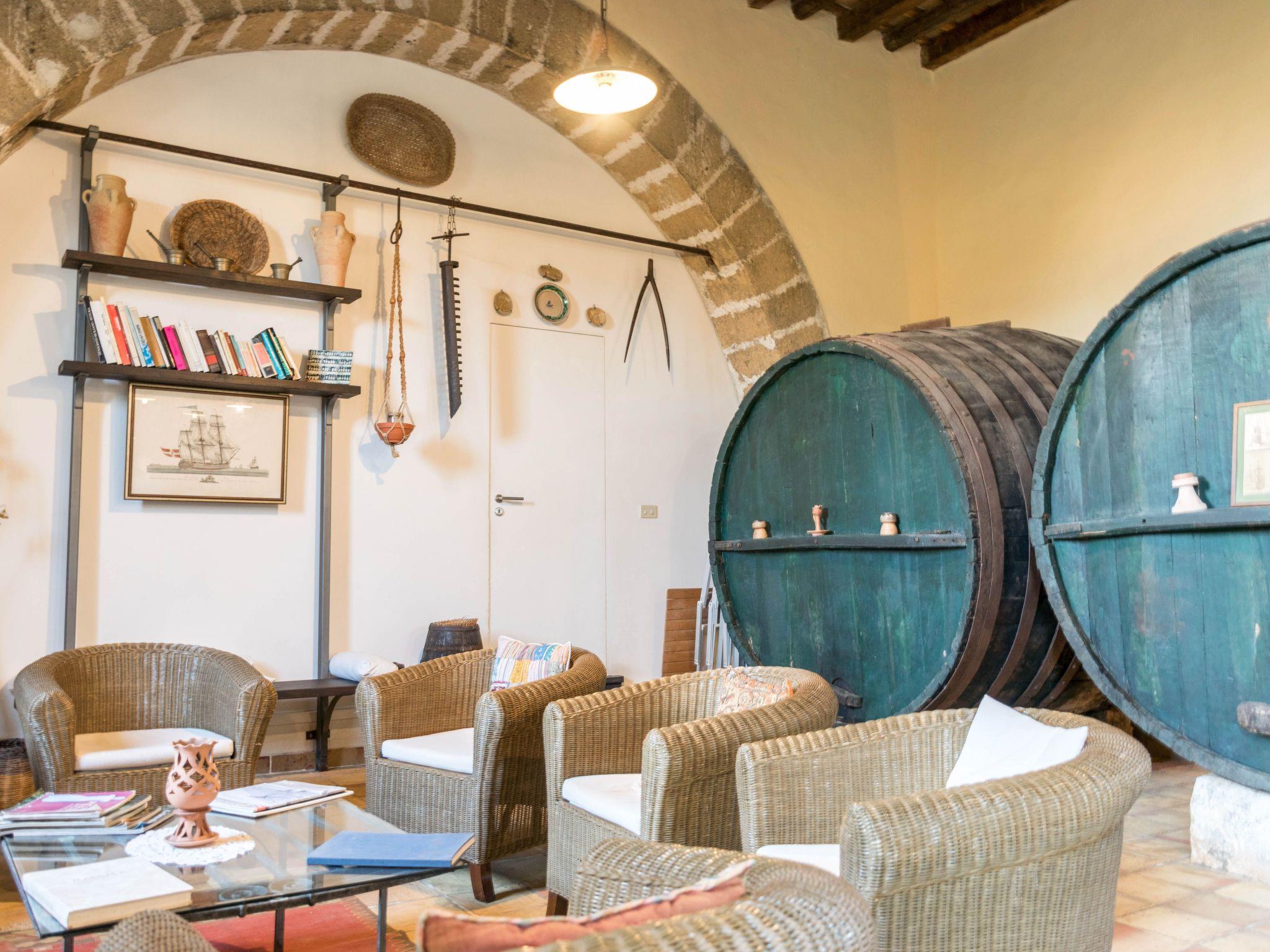 Die Anlage bietet den Komfort einer modernen Struktur, wobei die charakteristischen Elemente des alten sizilianischen Bauernhauses gekonnt bewahrt wurden. Das Frühstück wird in einem prächtigen Weinkeller serviert, in dem die antiken Werkzeuge der Traubenpressung aufbewahrt werden, mit Tuffsteinbögen oder alternativ unter Sonnenschirmen im Zitronenhain, während im ersten Stock die Bibliothek im Jugendstil den Swimmingpool überblickt und das Meer im Hintergrund hat, nur wenige hundert Meter von den Weinbergen und Zitronenhainen entfernt. Auch die Zimmer sind eine Synthese aus der Retro-Eleganz einer historischen Residenz und der spartanischen Einfachheit eines Landhauses, alle mit handdekorierten Böden und authentischen Möbeln aus dem frühen 20. Jahrhundert und alle mit Klimaanlage.